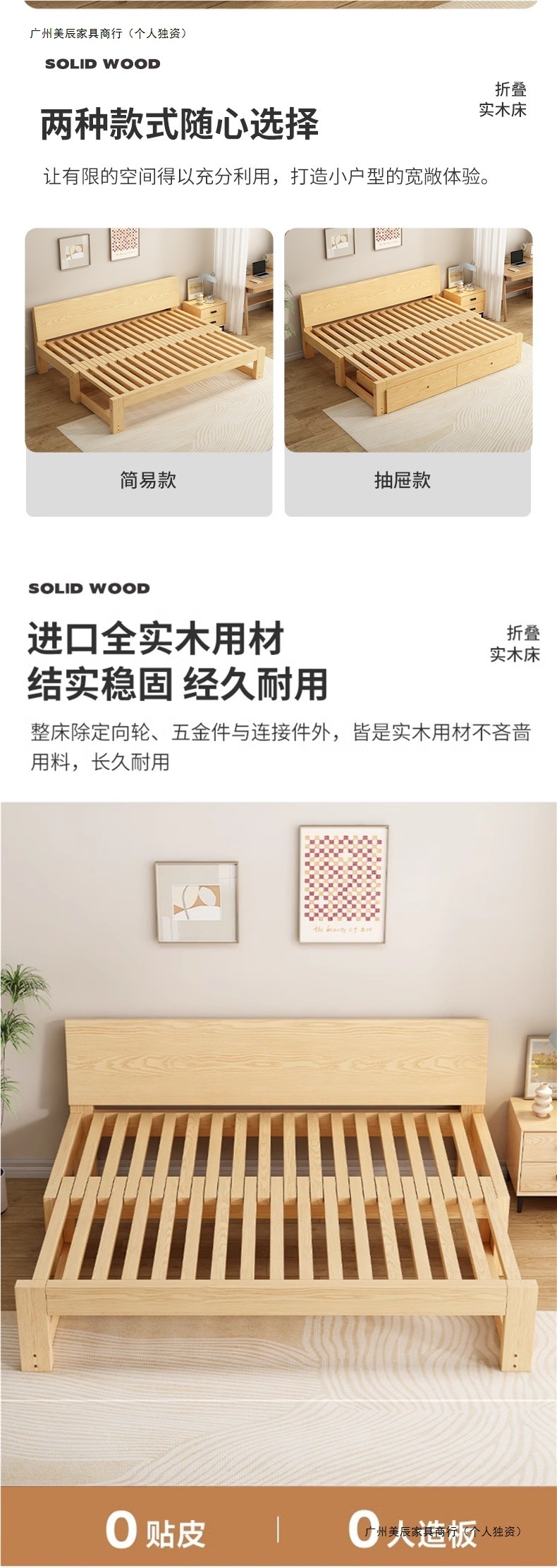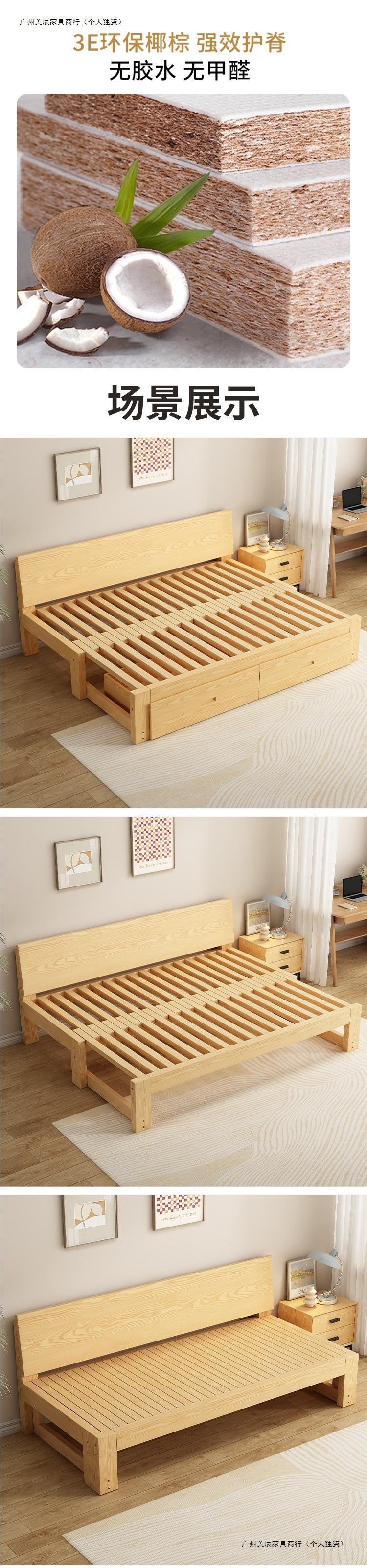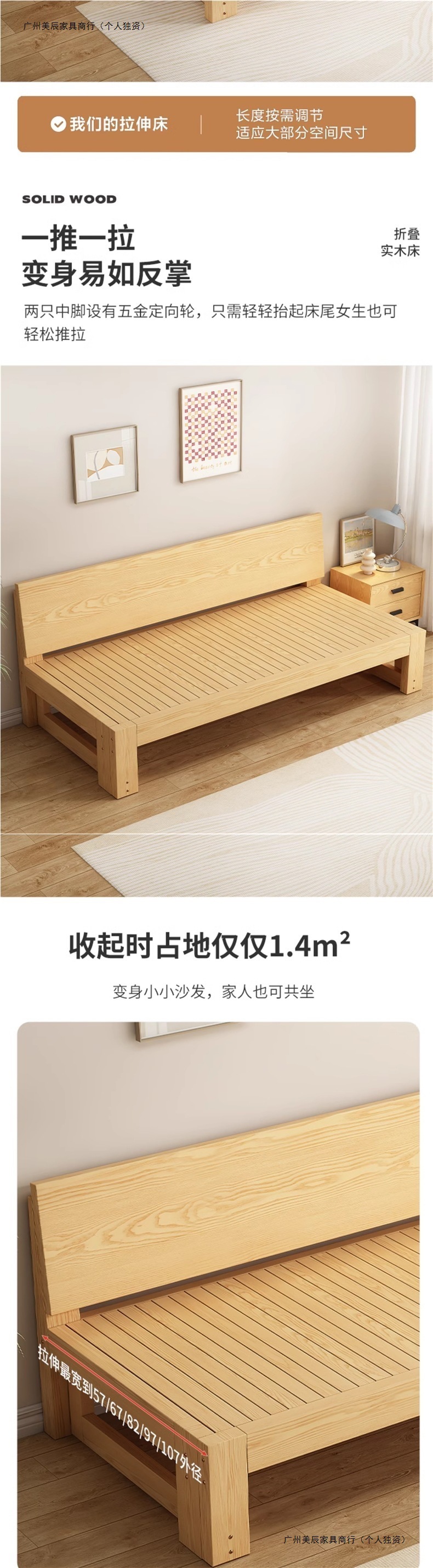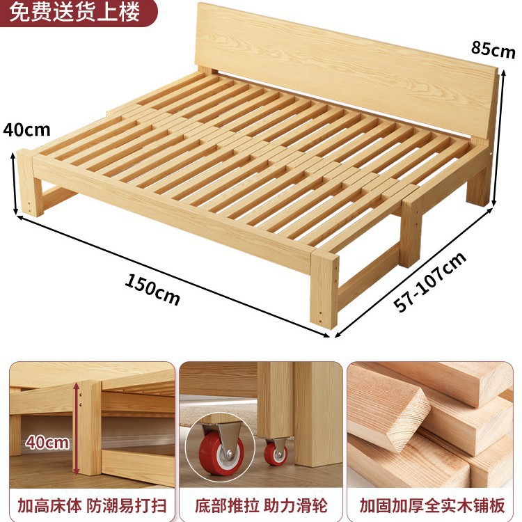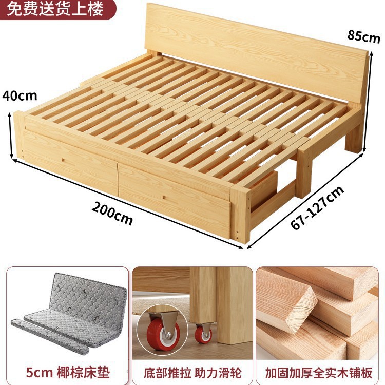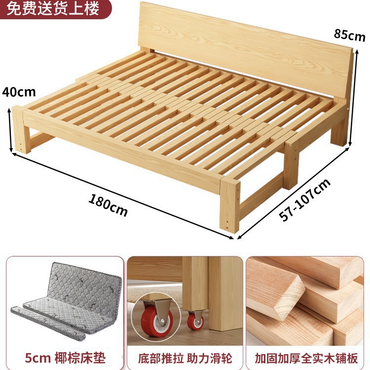 단단한 나무 소파 침대 접이식 이중 목적 다기능 거실 다다미 싱글 및 더블 소형 아파트 풀 아웃 텔레스코픽 슬라이딩 침대스토어 가기
