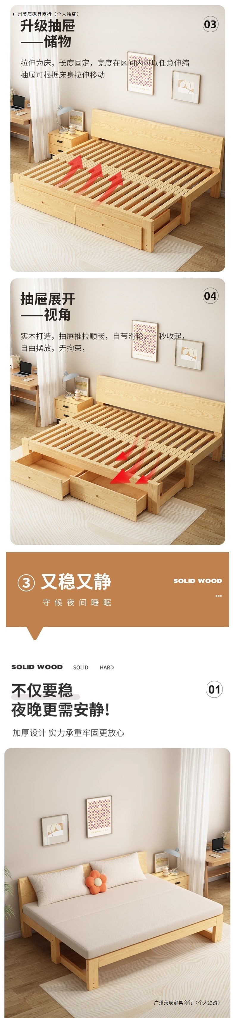 • 크로스보더 원목 길이 200-폭(57-107) 서랍 + 매트리스