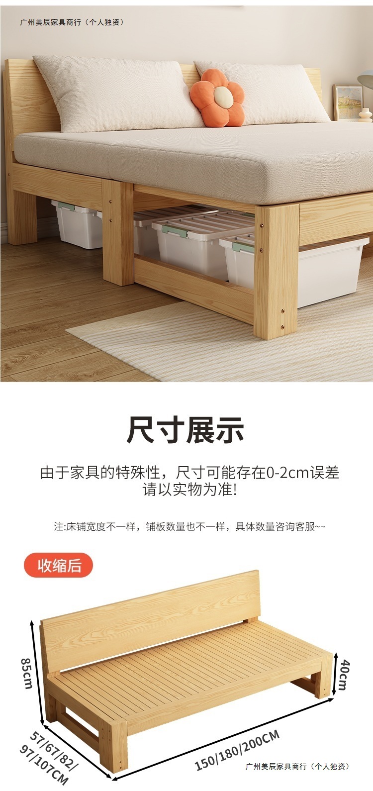 • 크로스보더 원목 길이 150폭(107~207) + 매트리스