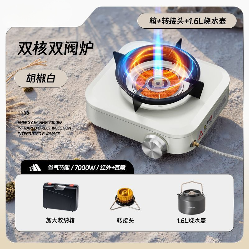 • [페퍼 화이트 스플릿 스토브] + 무료 업그레이드 보관함 + 어댑터 - [듀얼 코어 버너/압력 조절 밸브] + 1.6L 주전자