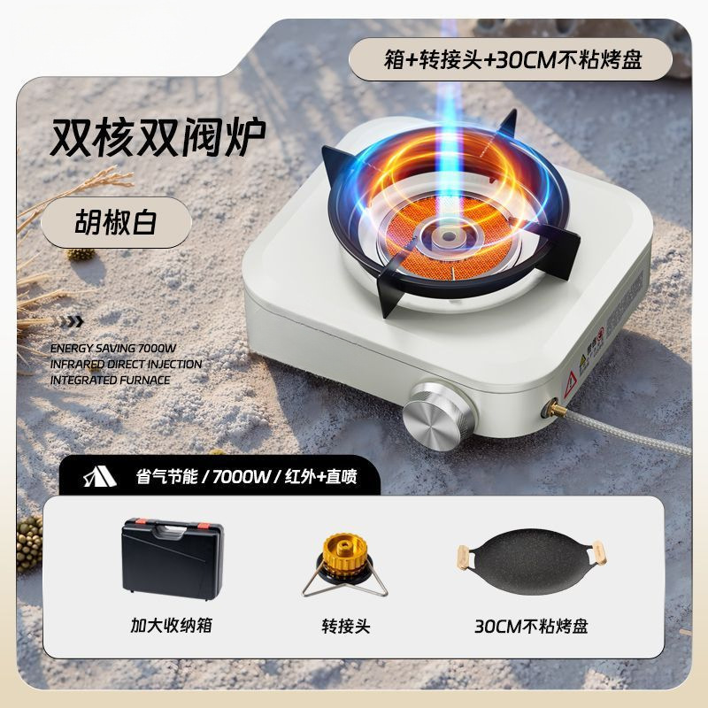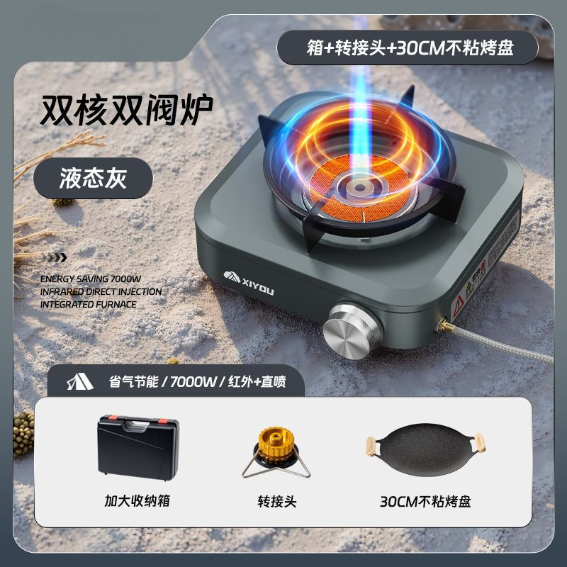 • [액상 티타늄 그레이 분할로] + 무료 업그레이드 보관함 + 어댑터 - [듀얼 코어 버너/압력 조절 밸브] + 30CM 논스틱 베이킹 팬