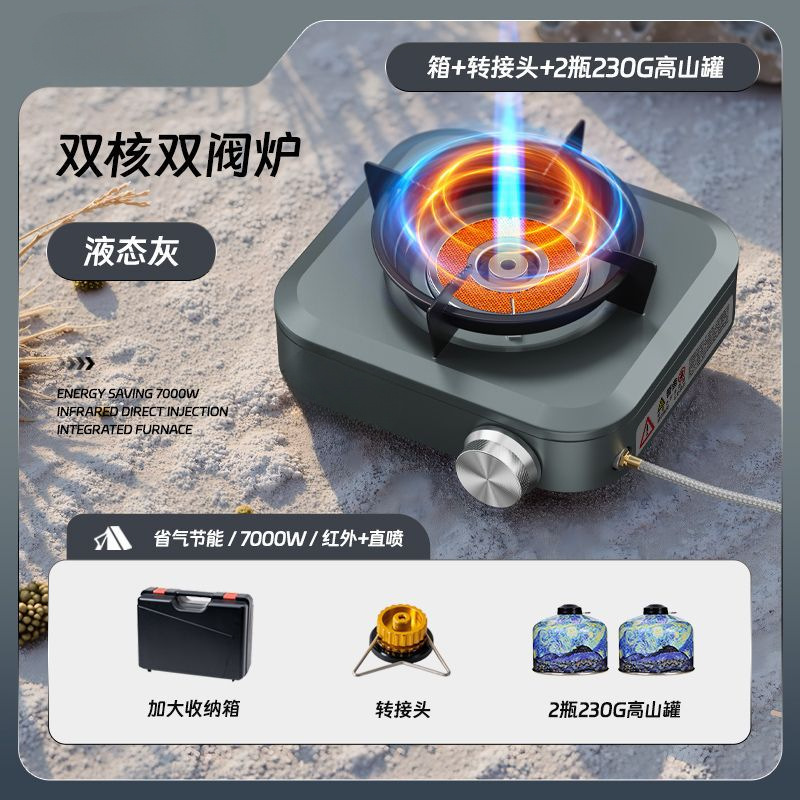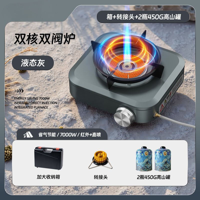 • [액체 티타늄 회색 분할로] + 무료 업그레이드 보관함 + 어댑터 - [듀얼 코어 버너/압력 안정화 밸브] + 230G 알파인 탱크*2