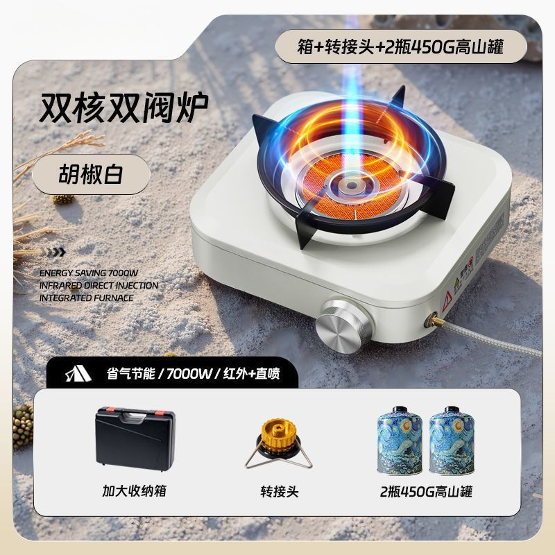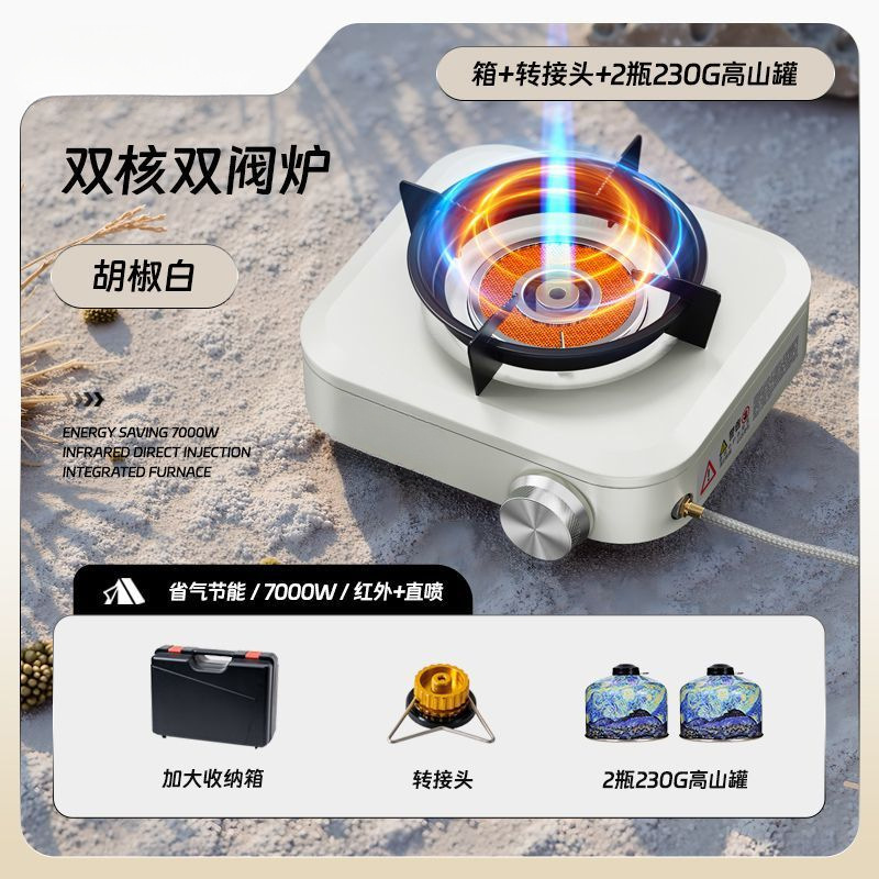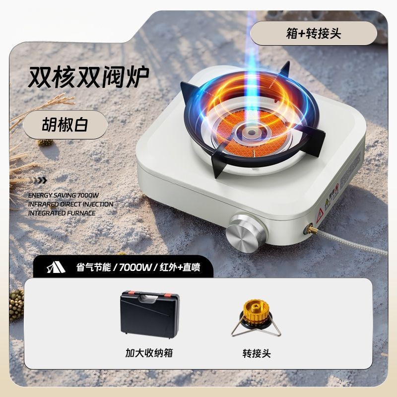 • [페퍼 화이트 스플릿 스토브] + 무료 업그레이드 보관함 + 어댑터 - [듀얼 코어 버너/압력 안정화 밸브] + 보관함 + 어댑터