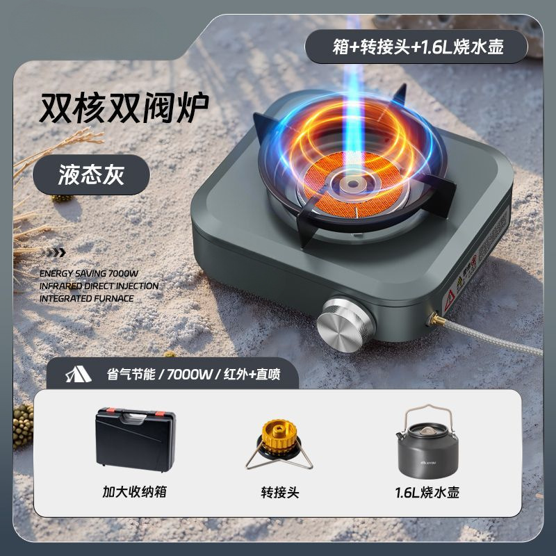 • [액상 티타늄 그레이 분할로] + 무료 업그레이드 보관함 + 어댑터 - [듀얼 코어 버너/압력 조절 밸브] + 1.6L 주전자