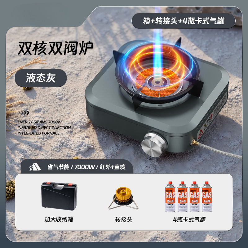 • [액체 티타늄 회색 분할로] + 무료 업그레이드 보관함 + 어댑터 - [듀얼 코어 버너/압력 안정화 밸브] + 220G 가스 실린더 * 4