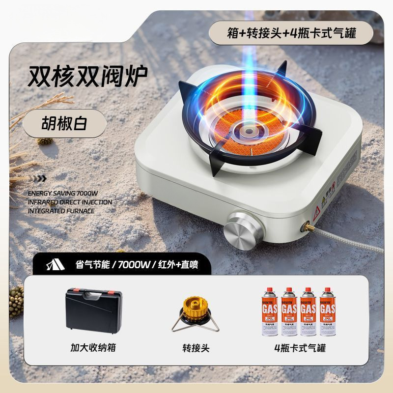 • [페퍼 화이트 스플릿 스토브] + 무료 업그레이드 보관함 + 어댑터 - [듀얼 코어 버너/압력 안정화 밸브] + 220G 가스 실린더*4