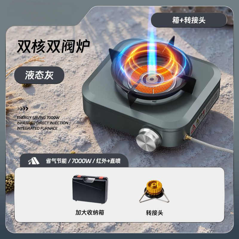 • [액상 티타늄 회색 분할로] + 무료 업그레이드 보관함 + 어댑터 - [듀얼 코어 버너/압력 안정화 밸브] + 보관함 + 어댑터