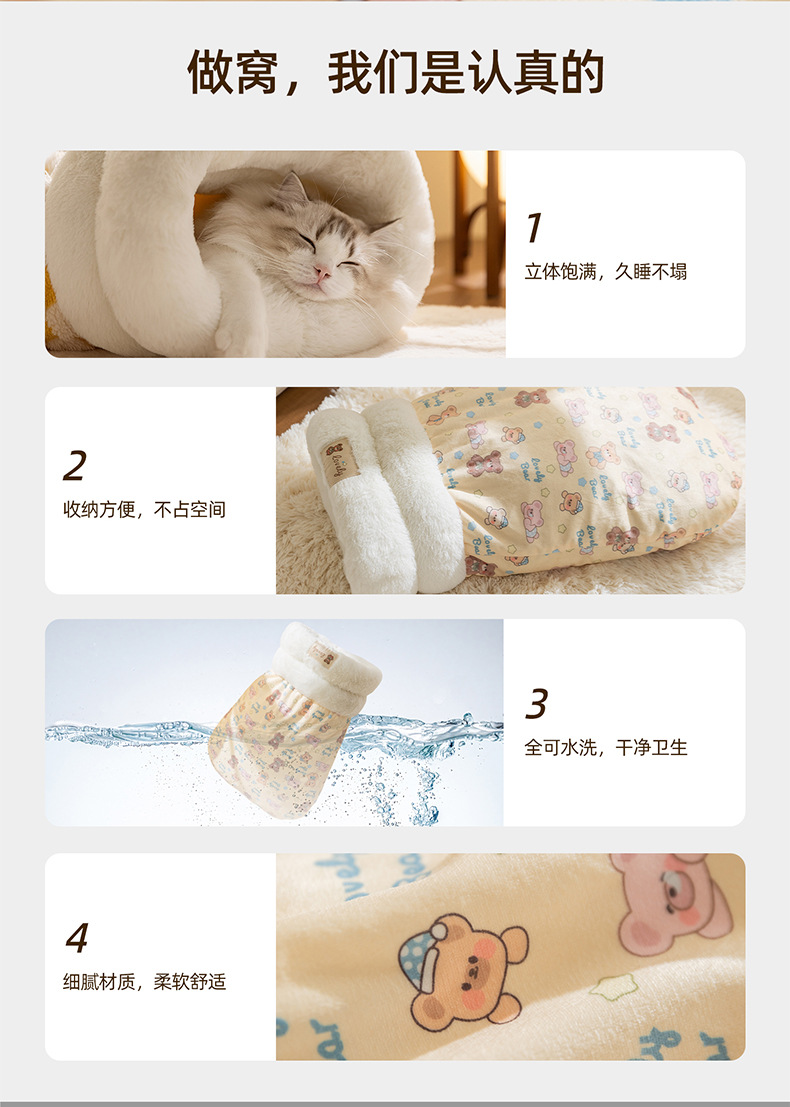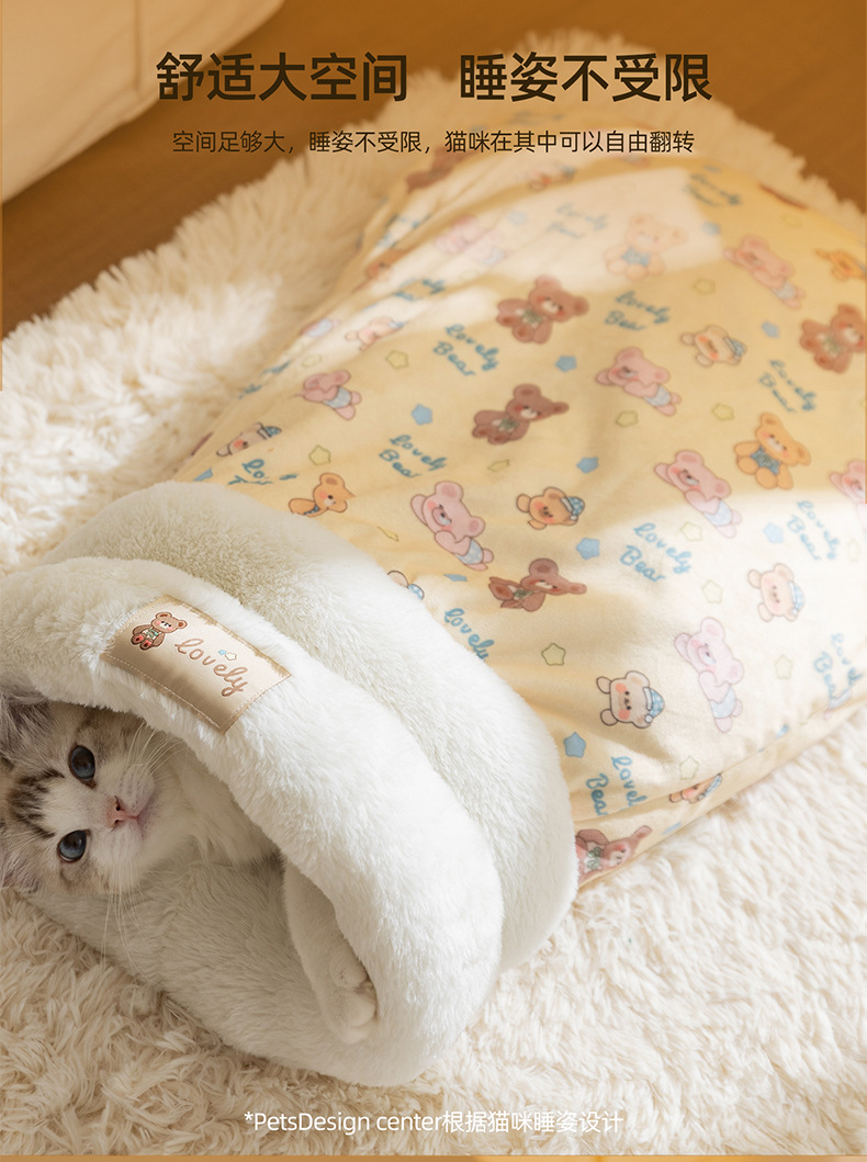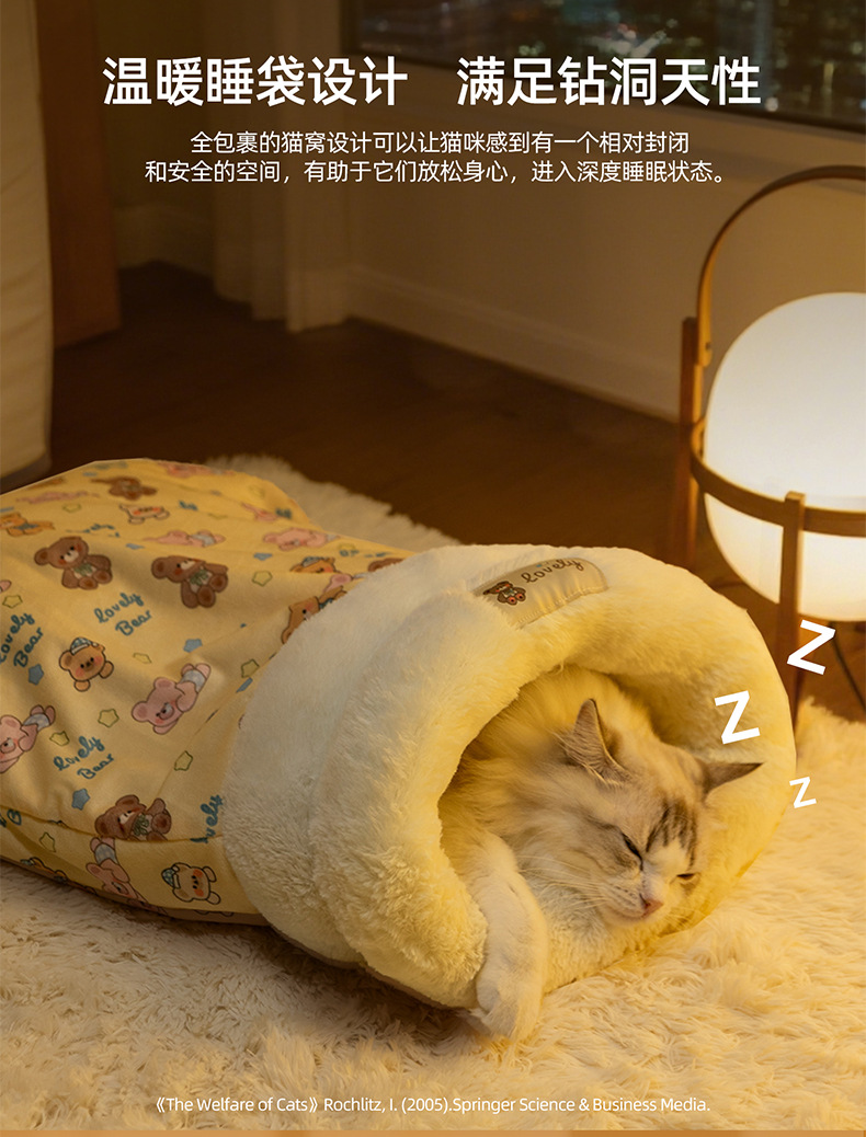 가을 겨울 고양이 침대, 완전 밀폐형 보온 기구, 고양이 침낭, 고양이가 안에 들어가면 안전한 느낌을 주는 애완동물 개집