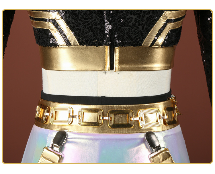 Kpop Hunter 마녀 그룹 Zoe cos 의상 Zoe 블랙 골드 노래 의상 Zoe 코스프레 2차원 애니메이션 의상
