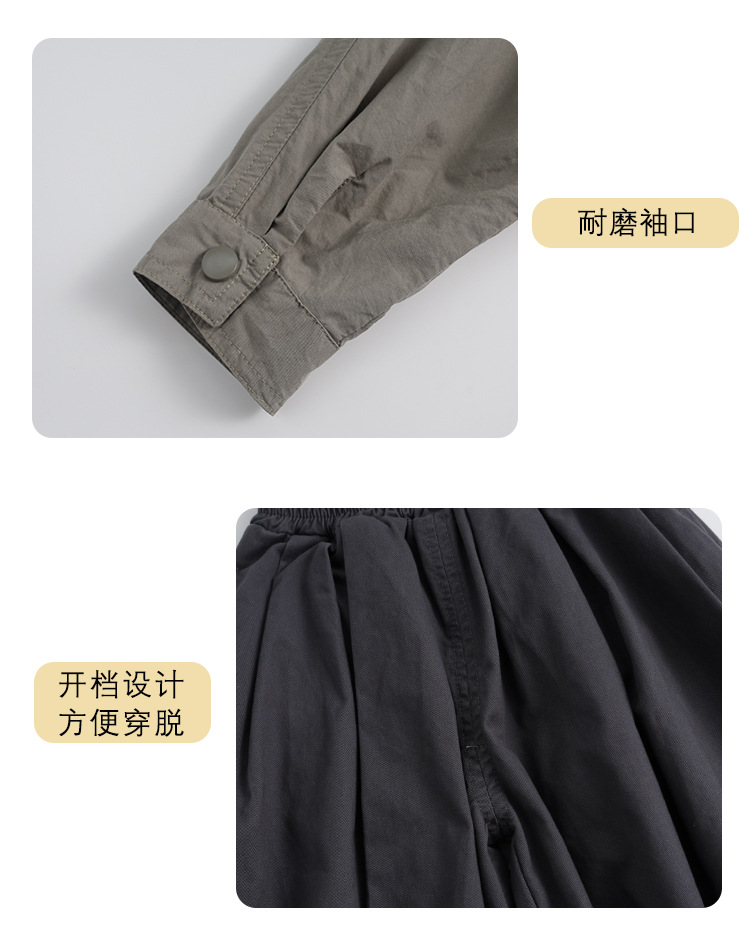 新起点2026春装婴童两件套男女宝工装风背带爬服长袖新生儿连体衣