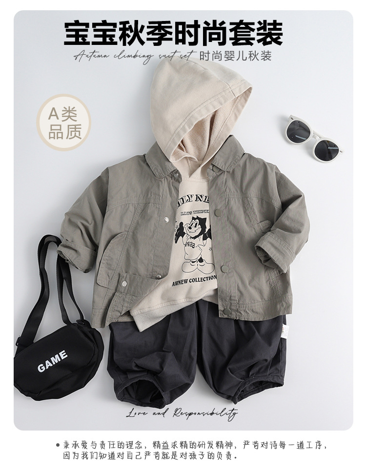 소년 가을 의류 세트 2025 새로운 잘 생긴 어린이 봄, 가을 재킷 3 피스 세트 아기 소년 한국 스타일 의류 유행스토어 가기