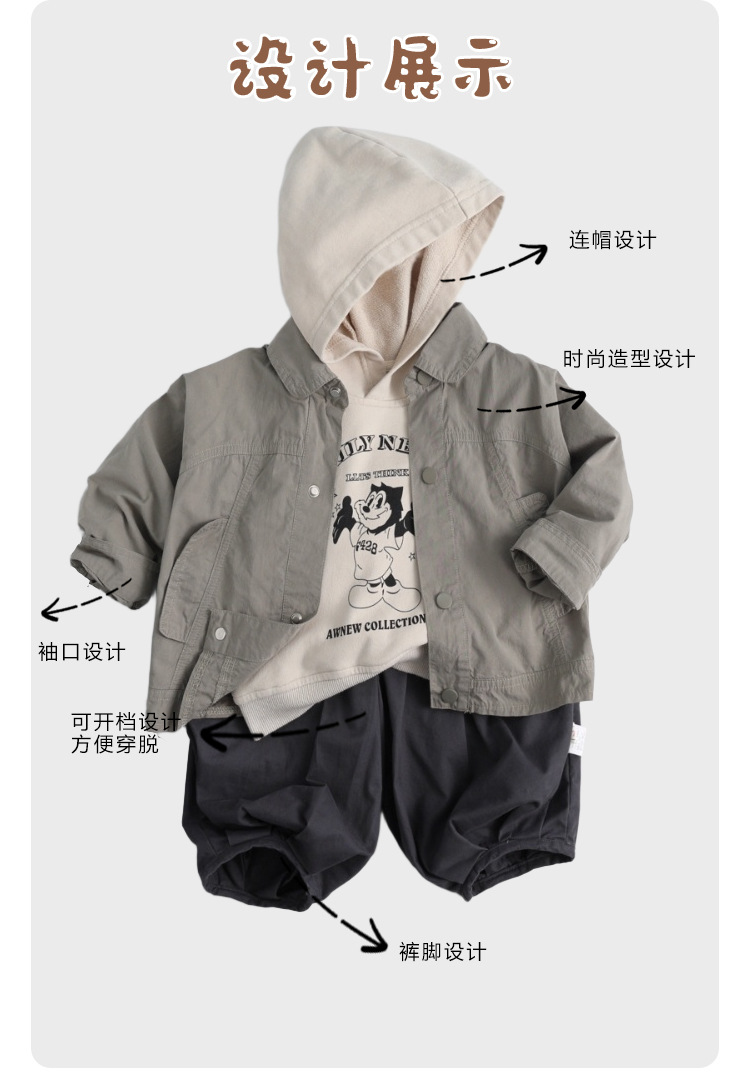 2026春款婴儿冲锋衣ins风尖尖帽连体衣男女宝宝外出服星星装哈衣
