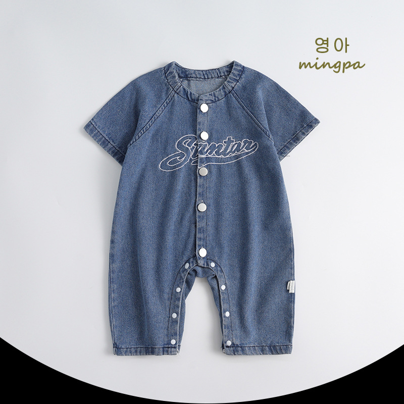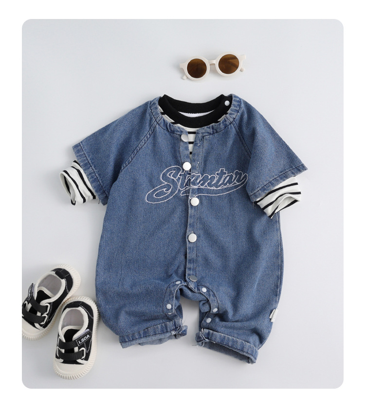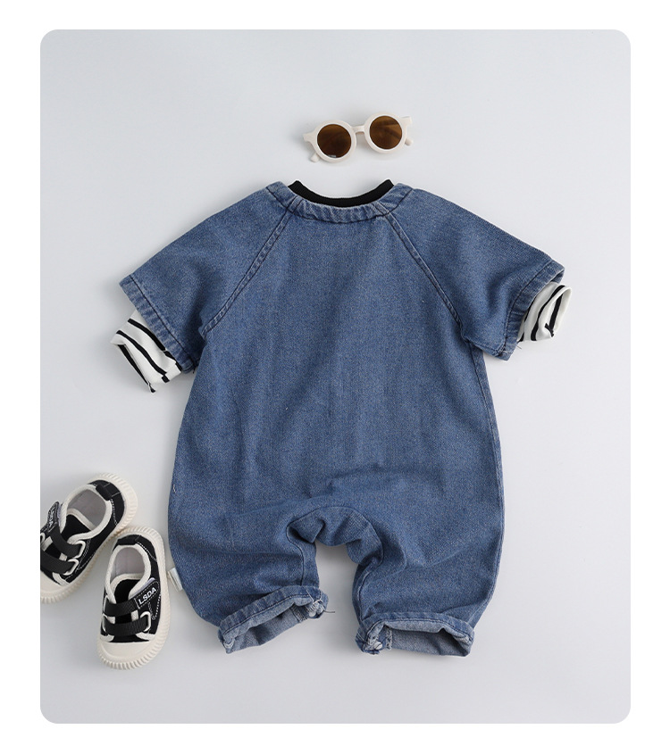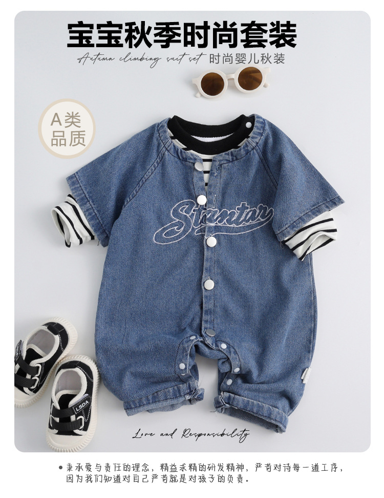 아기 작업복, 패셔너블한 가을 아기 정장 점프수트, 남아 및 여아용 트렌디한 외출용 데님 점프수트, 롱 크롤러