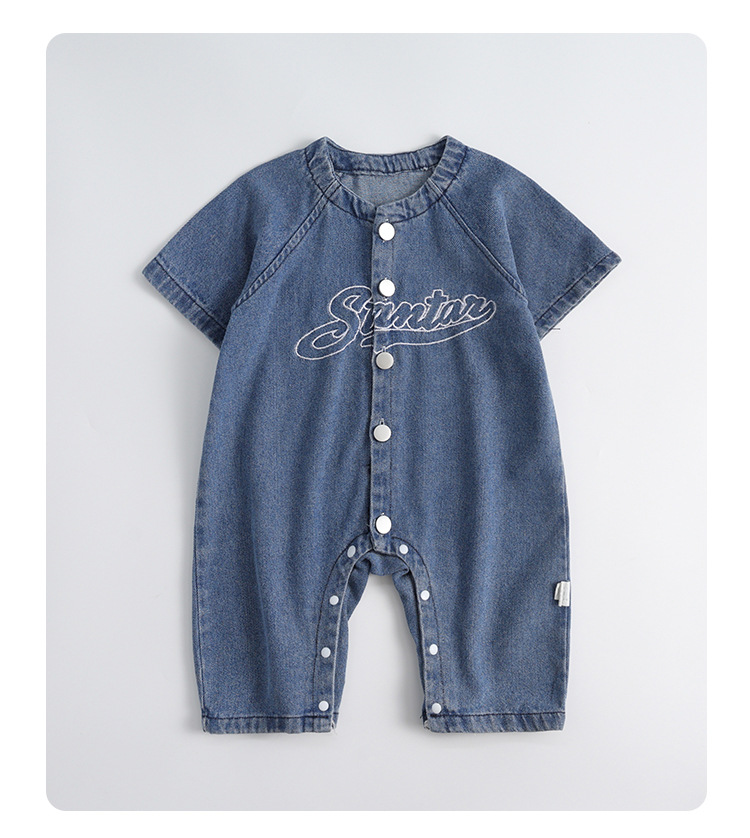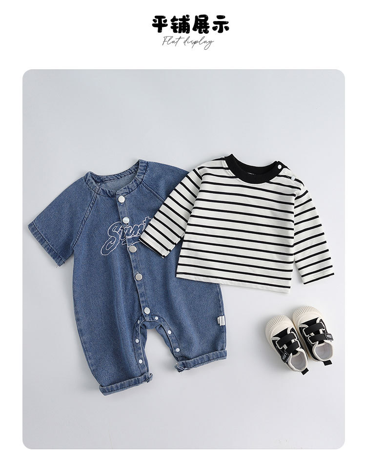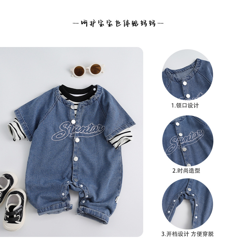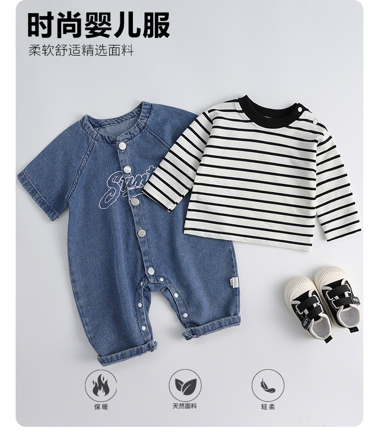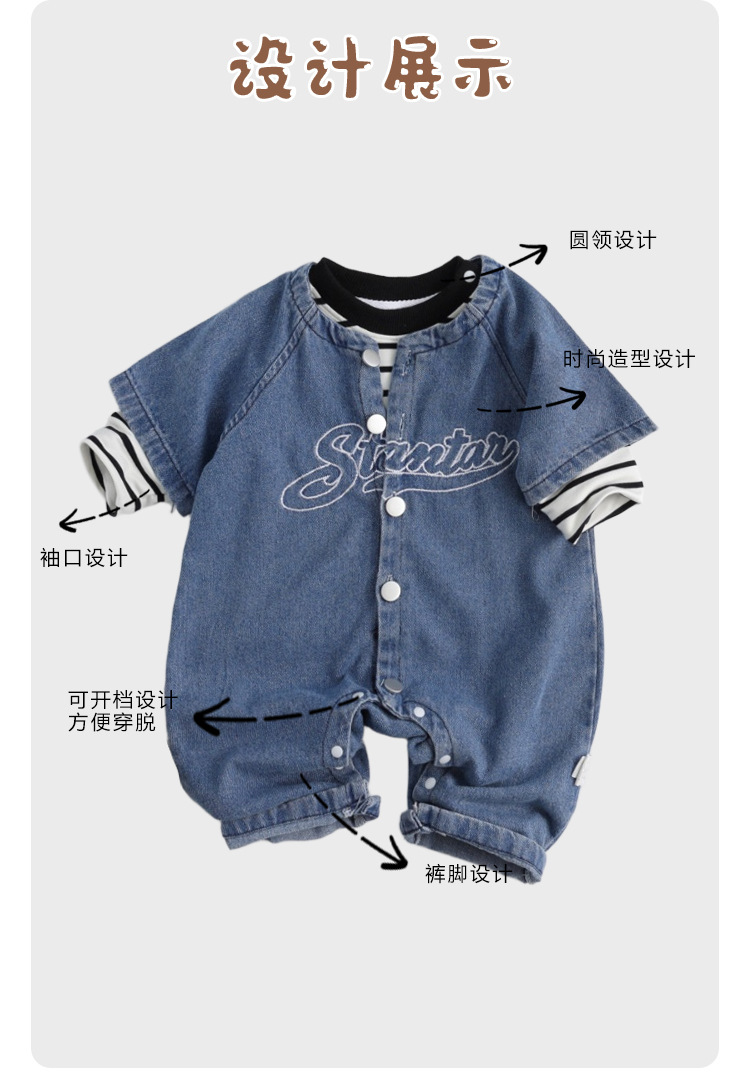 新起点婴儿衣服春装新生儿牛仔连体衣男宝宝衣服春秋款外出爬爬服