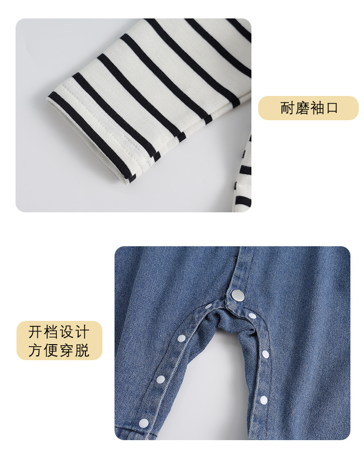 新起点2026春款牛仔背带裤套装ins风撞色男女宝宝爬服新生外出服