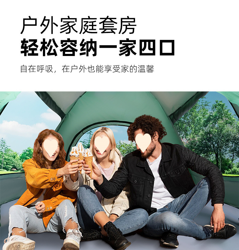 3-4인용 야외 텐트, 완전 자동 두꺼운 자외선 차단 텐트, 싱글 및 더블 접이식 야외 캠핑 휴대용 공장 2개스토어 가기