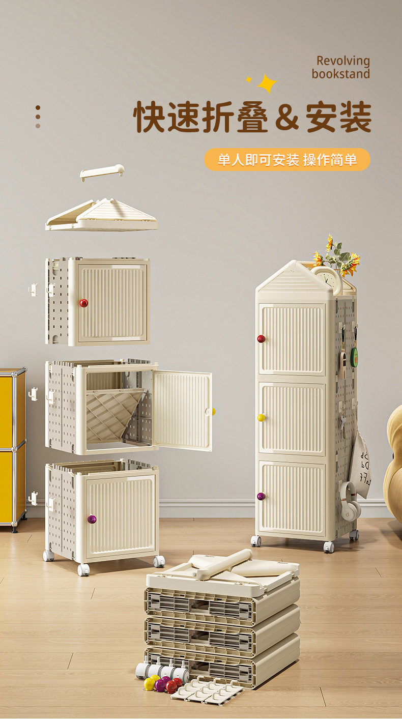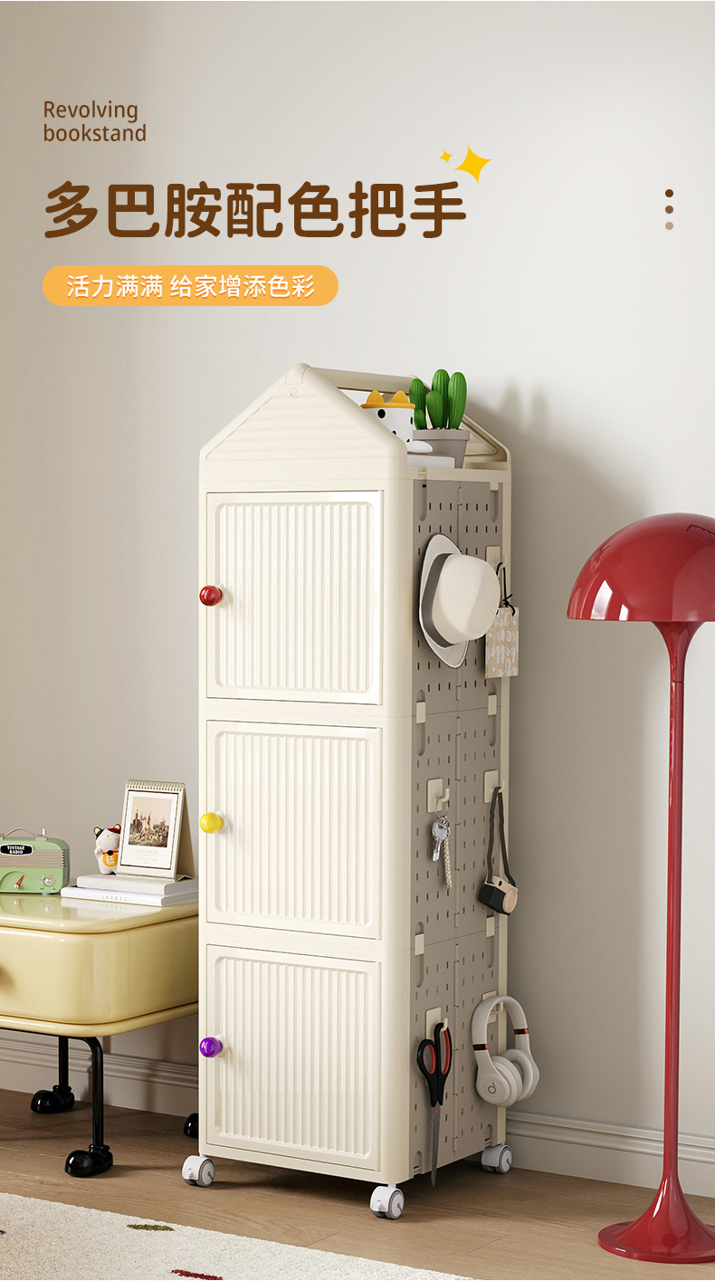 회전 책장 가정용 조합 책 보관 캐비닛 바퀴가 달린 어린이 학습 정리 캐비닛 이동식 두꺼운 보관 캐비닛스토어 가기