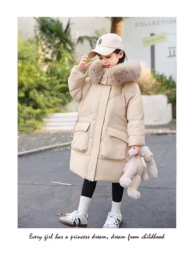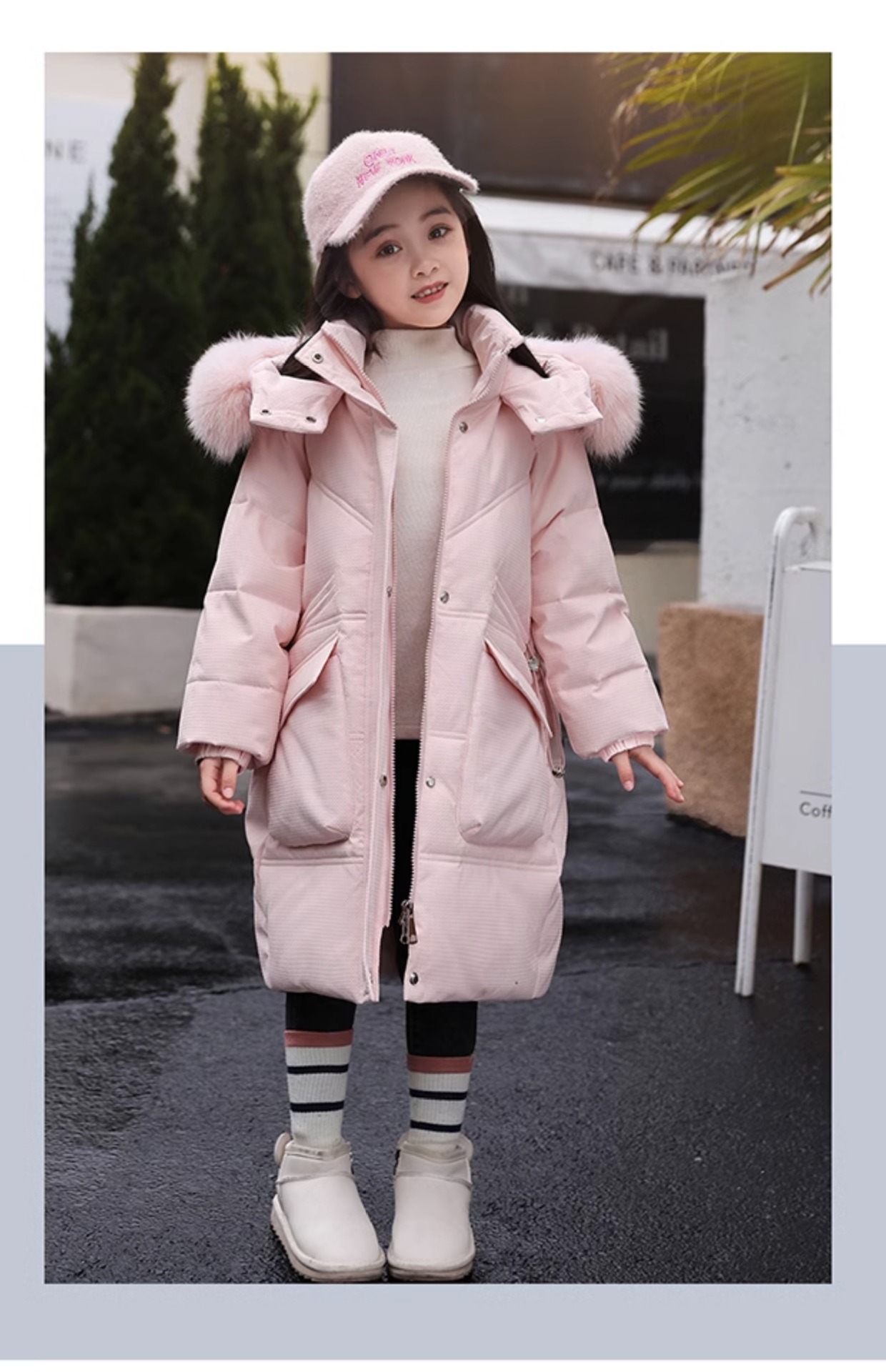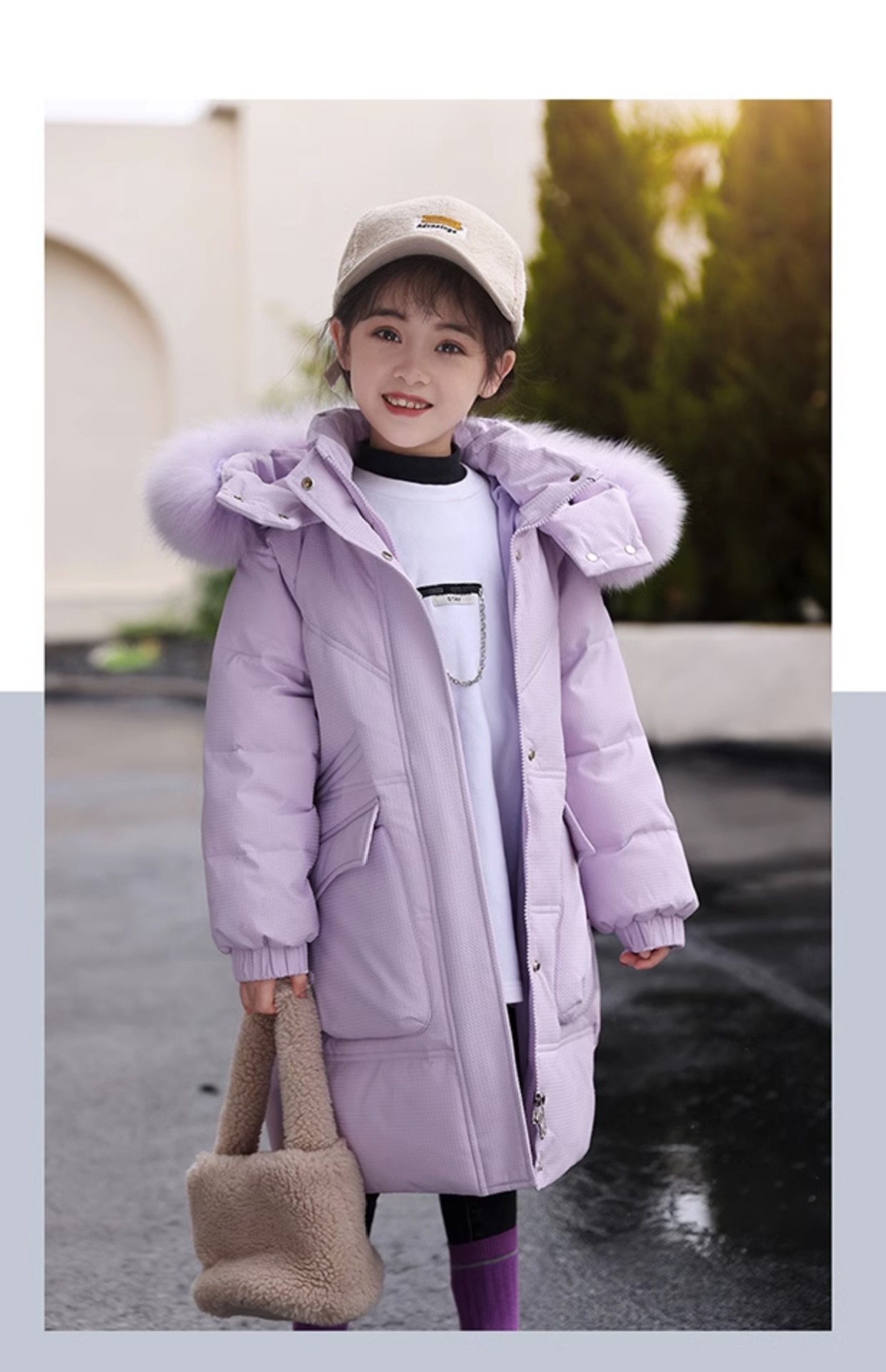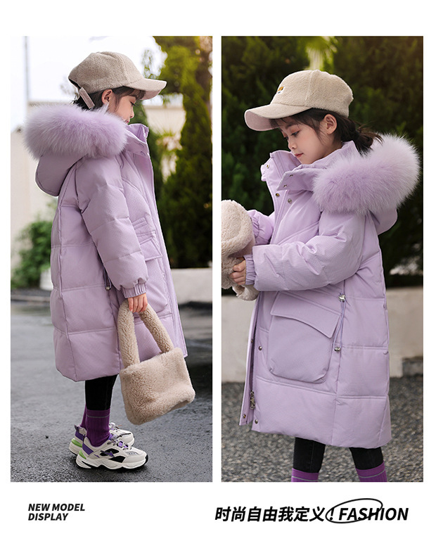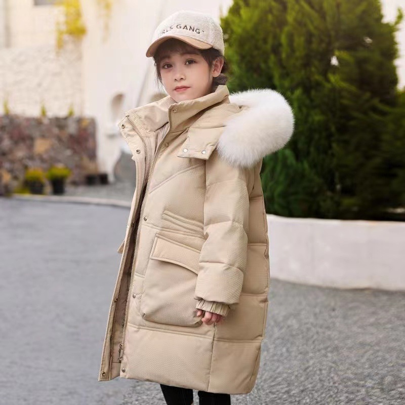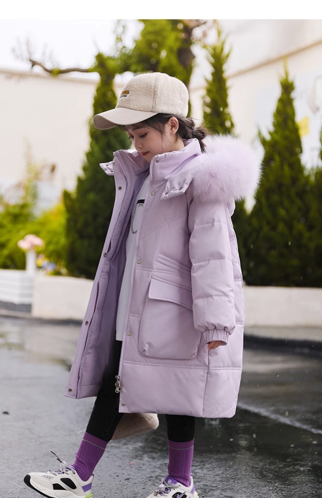 2024 새로운 어린이 중간 길이 소녀 다운 재킷 두꺼운 흰색 오리 다운 한국 스타일 따뜻한 학생 재킷 겨울스토어 가기