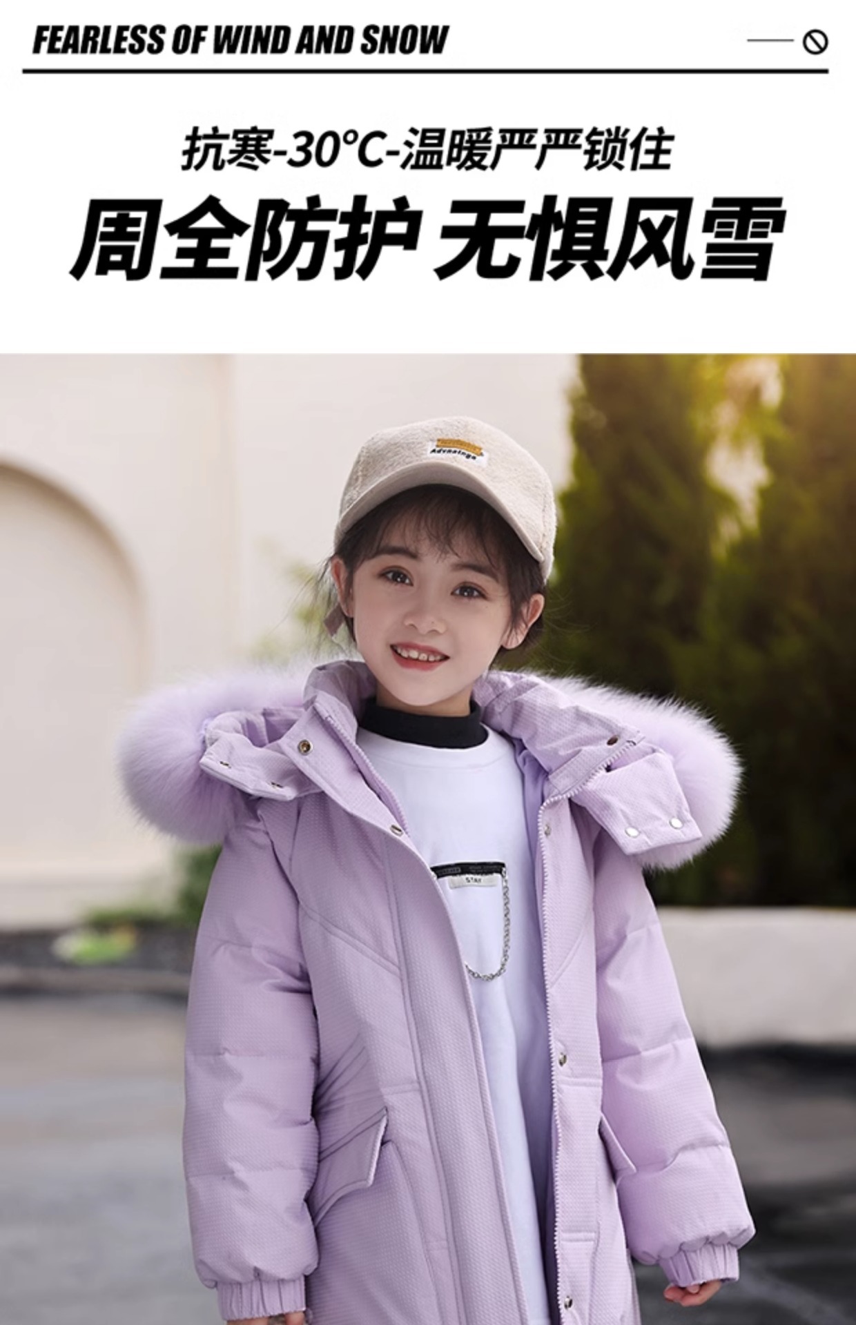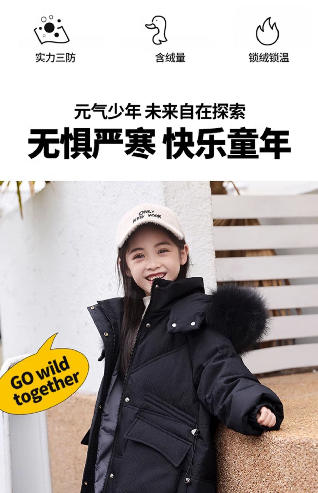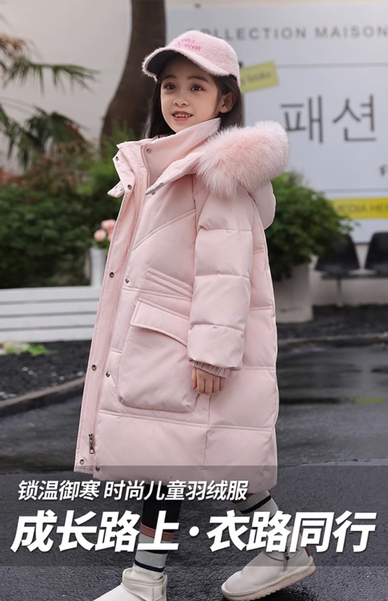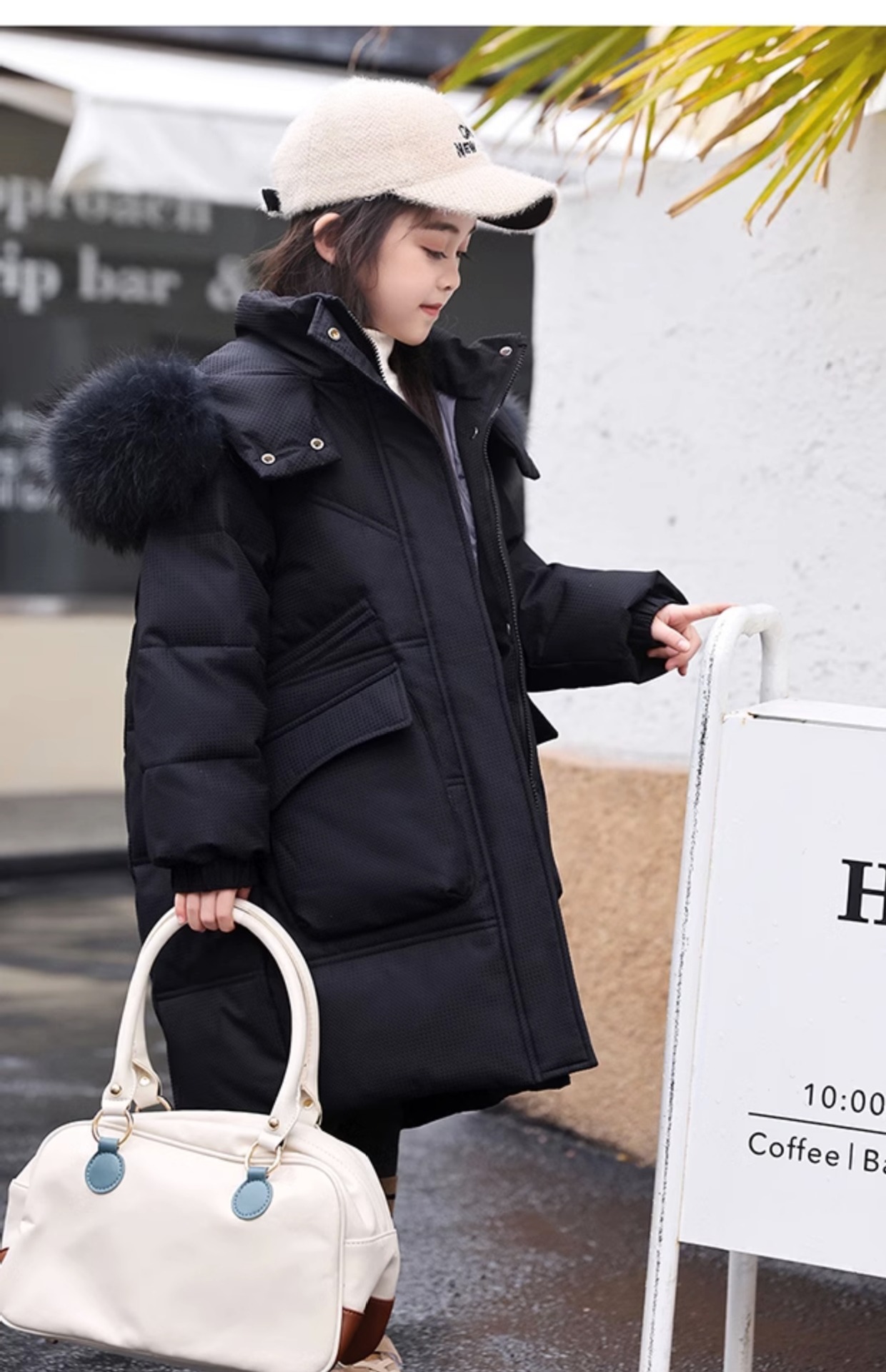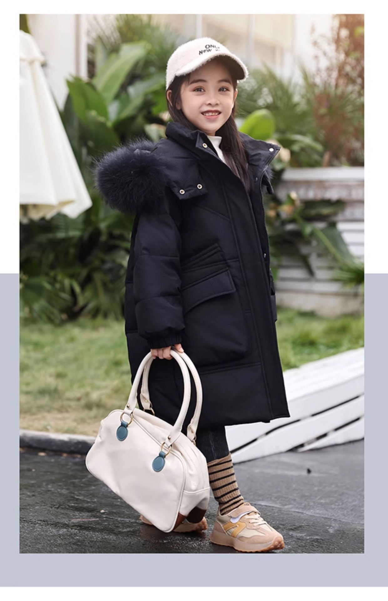 2024 새로운 어린이 중간 길이 소녀 다운 재킷 두꺼운 흰색 오리 다운 한국 스타일 따뜻한 학생 재킷 겨울스토어 가기