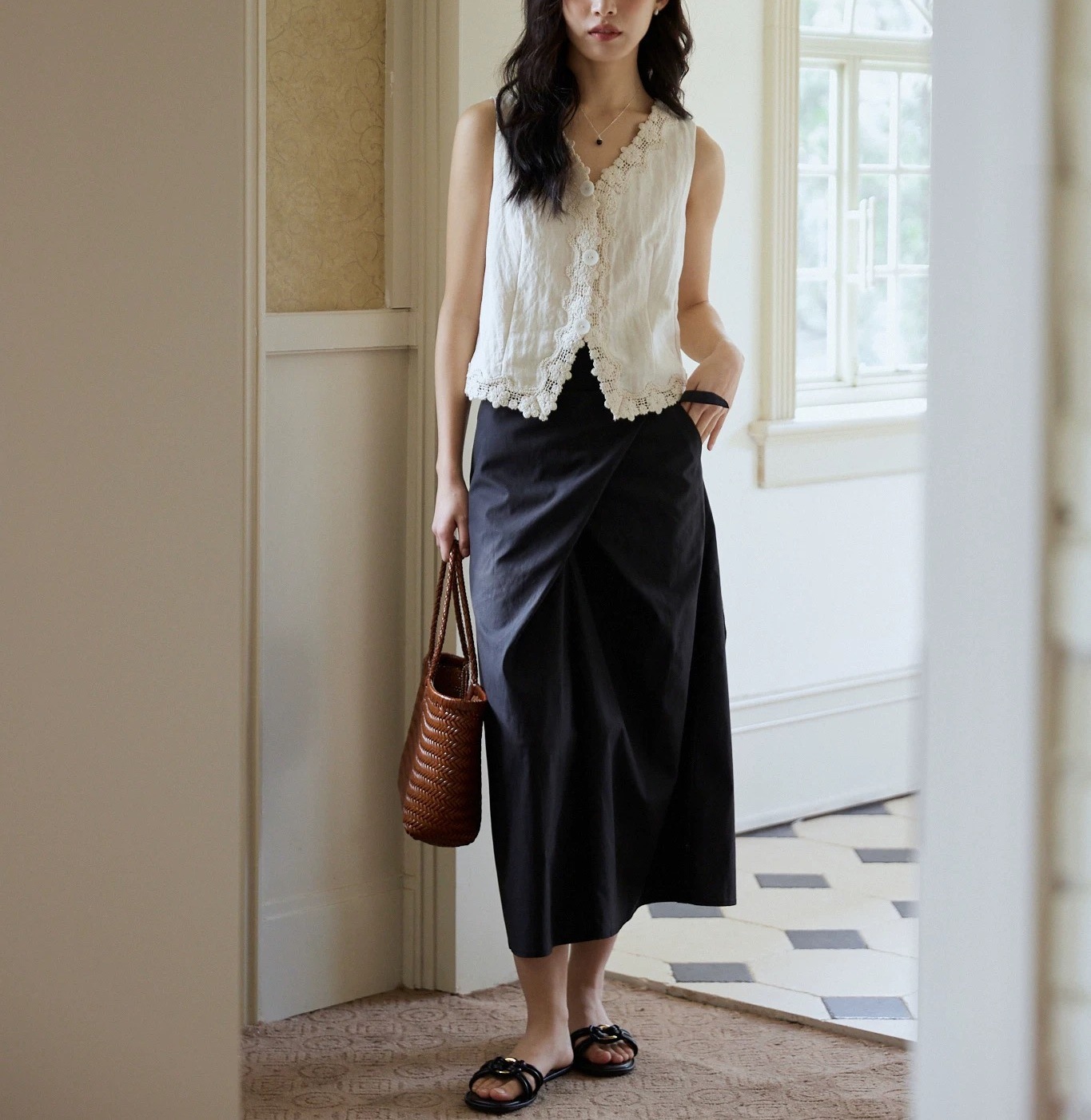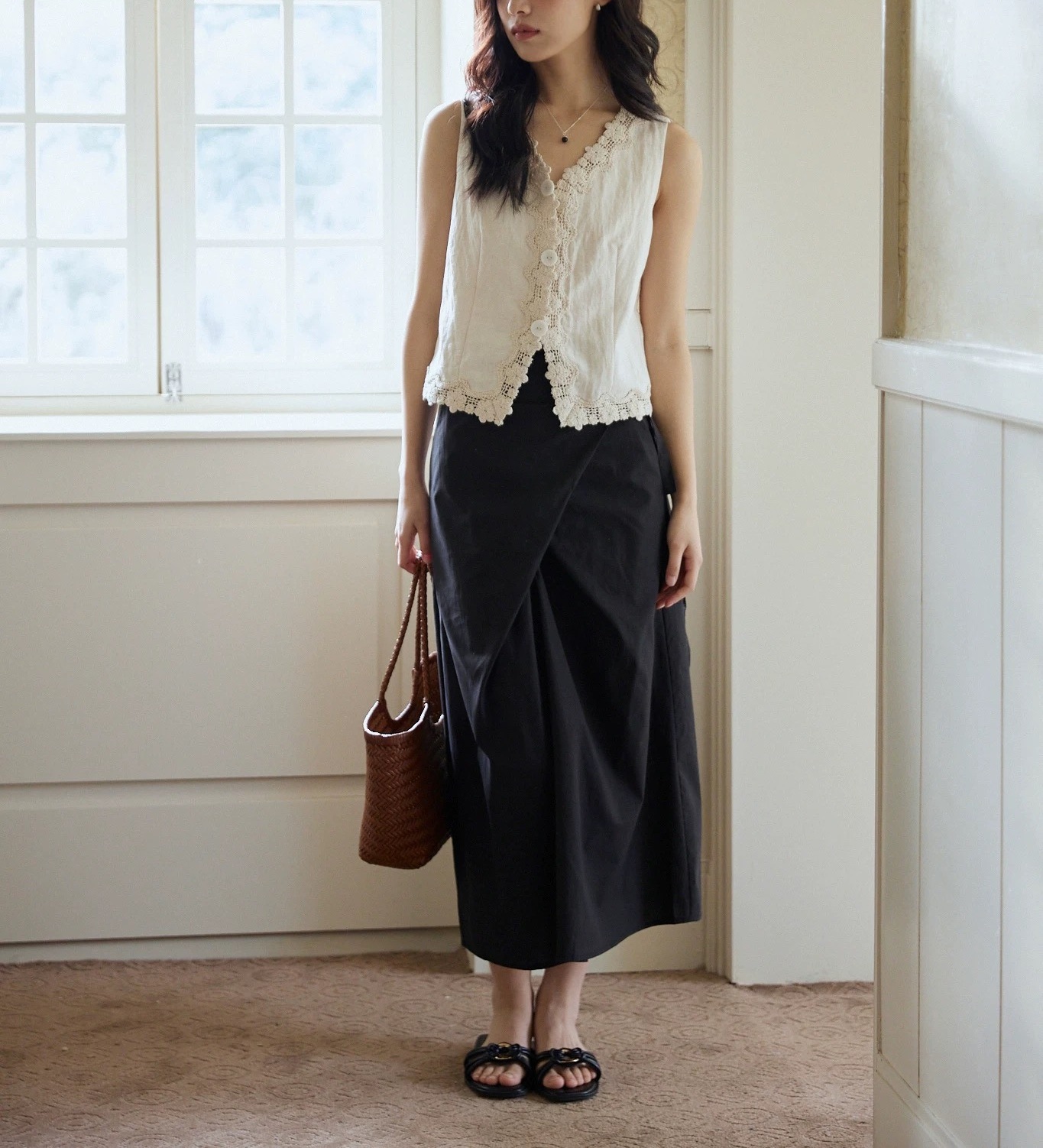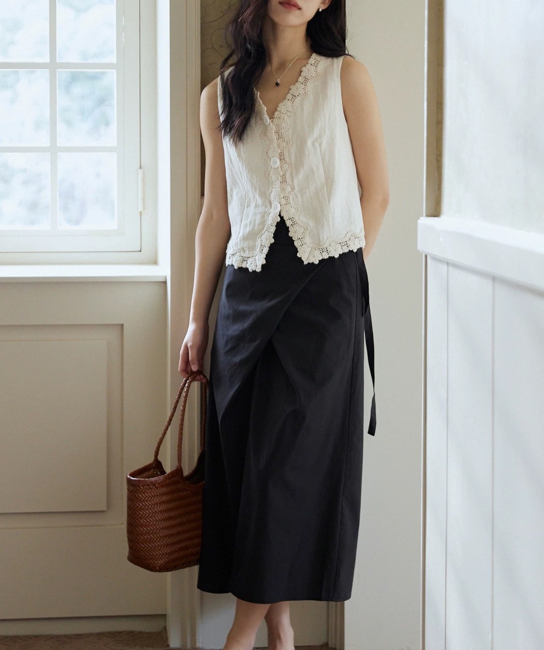 MIXBAO 프렌치 살구 레이스 v 넥 조끼 여성 여름 디자인 조끼 민소매 주름 질감 탑스토어 가기