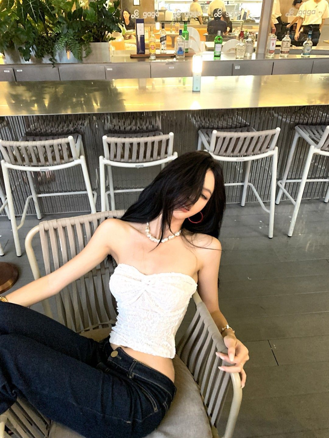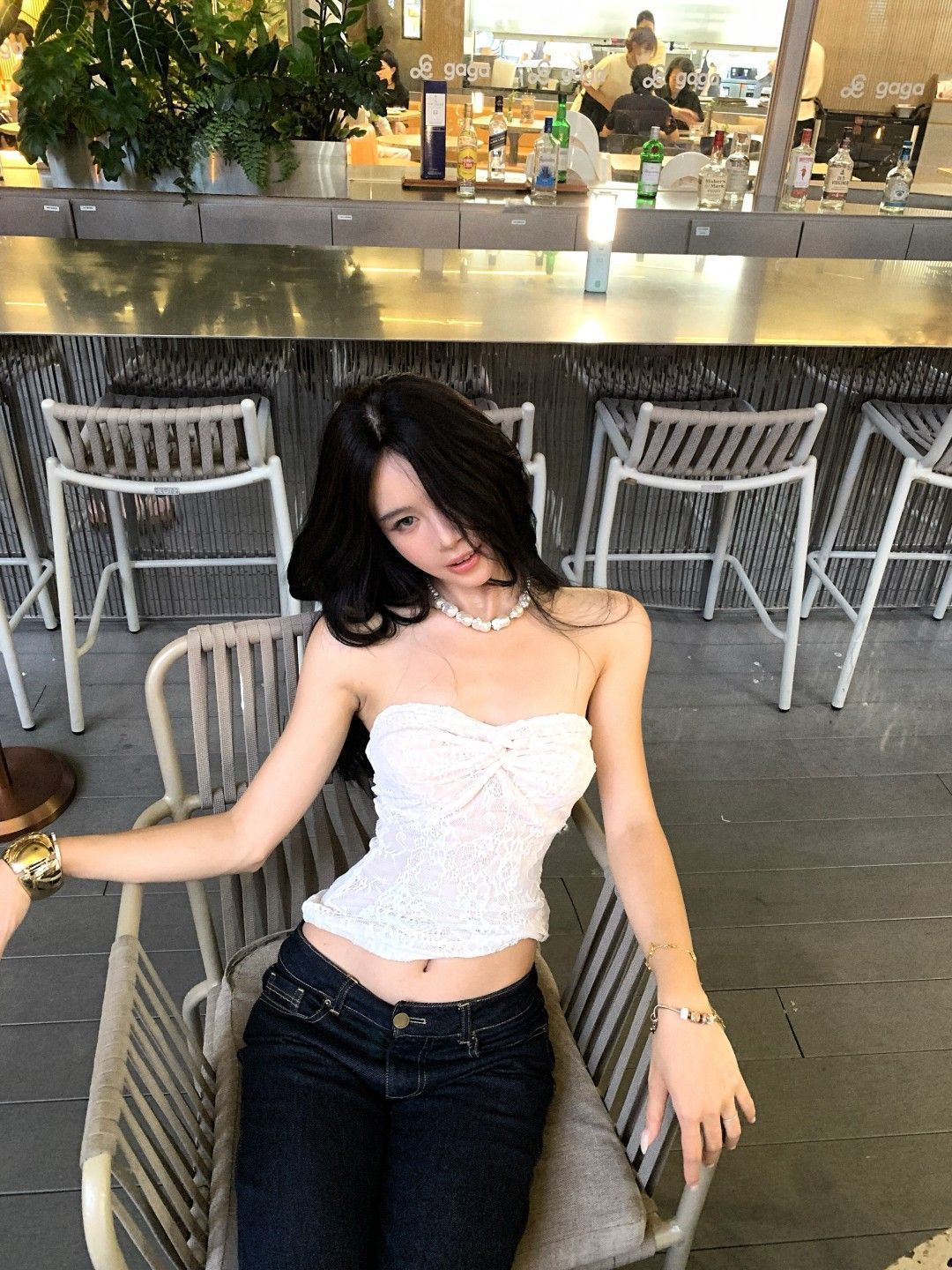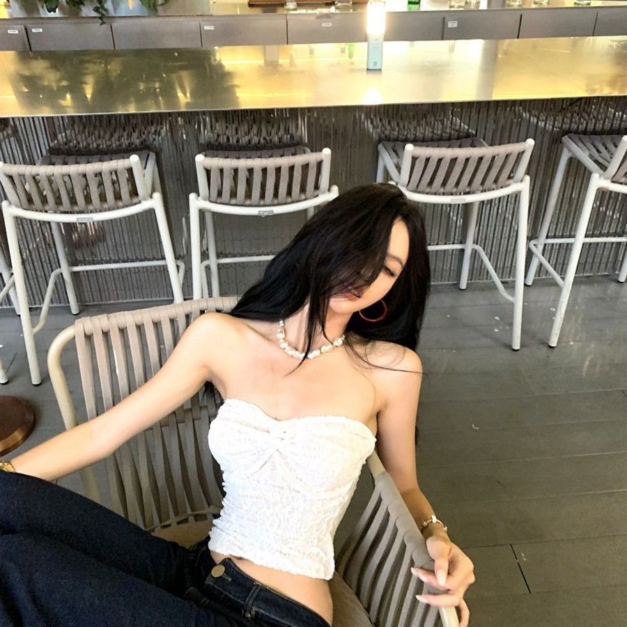 여성을 위한 레이스 트위스트 튜브 탑 여름 새로운 디자인 세련된 연령 감소 시크 랩 백리스 쇼트 탑스토어 가기