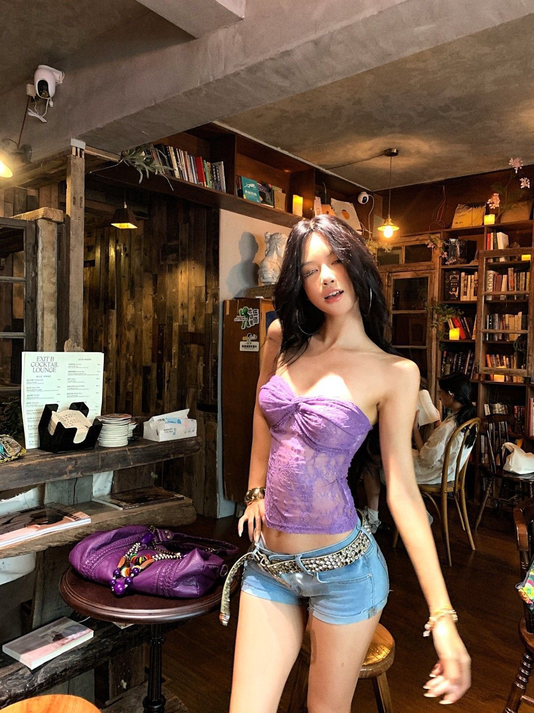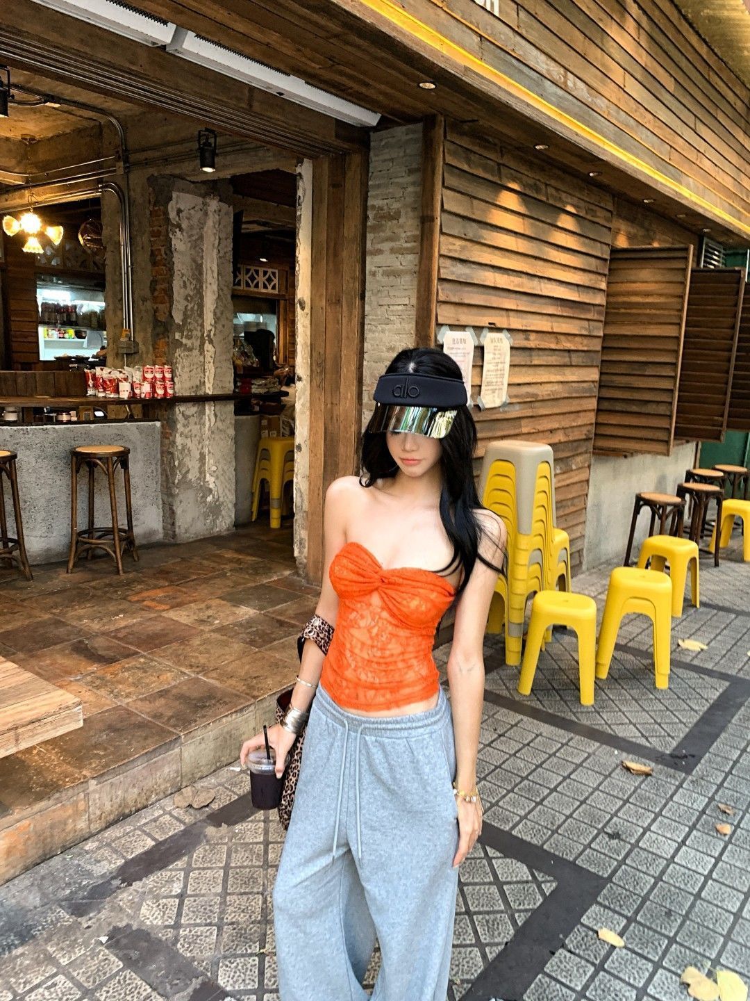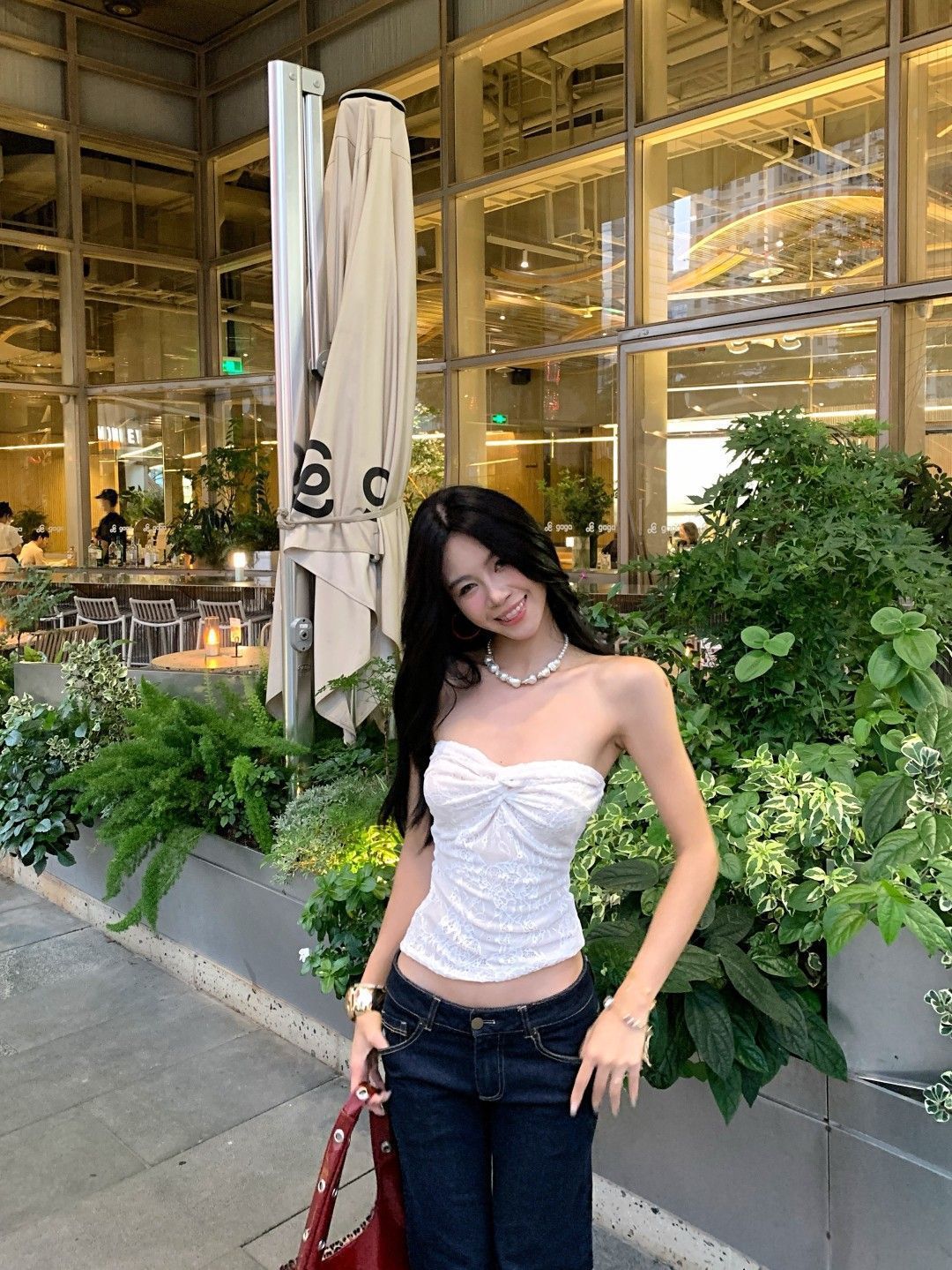 여성을 위한 레이스 트위스트 튜브 탑 여름 새로운 디자인 세련된 연령 감소 시크 랩 백리스 쇼트 탑스토어 가기