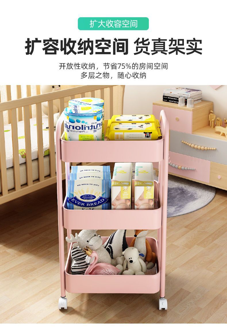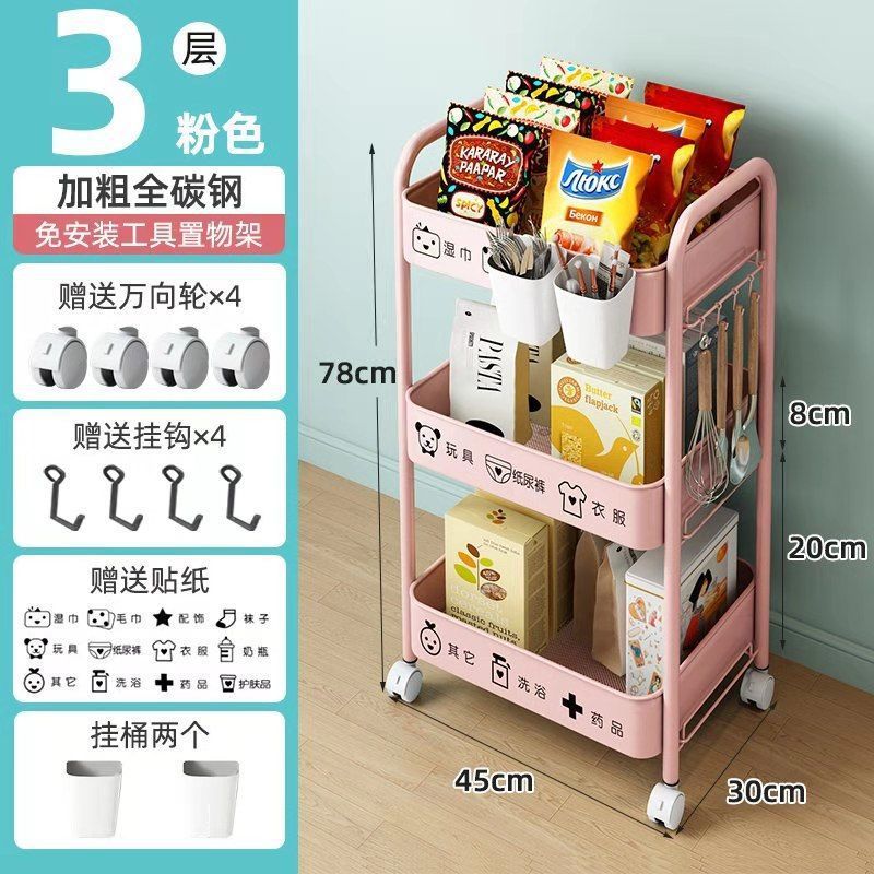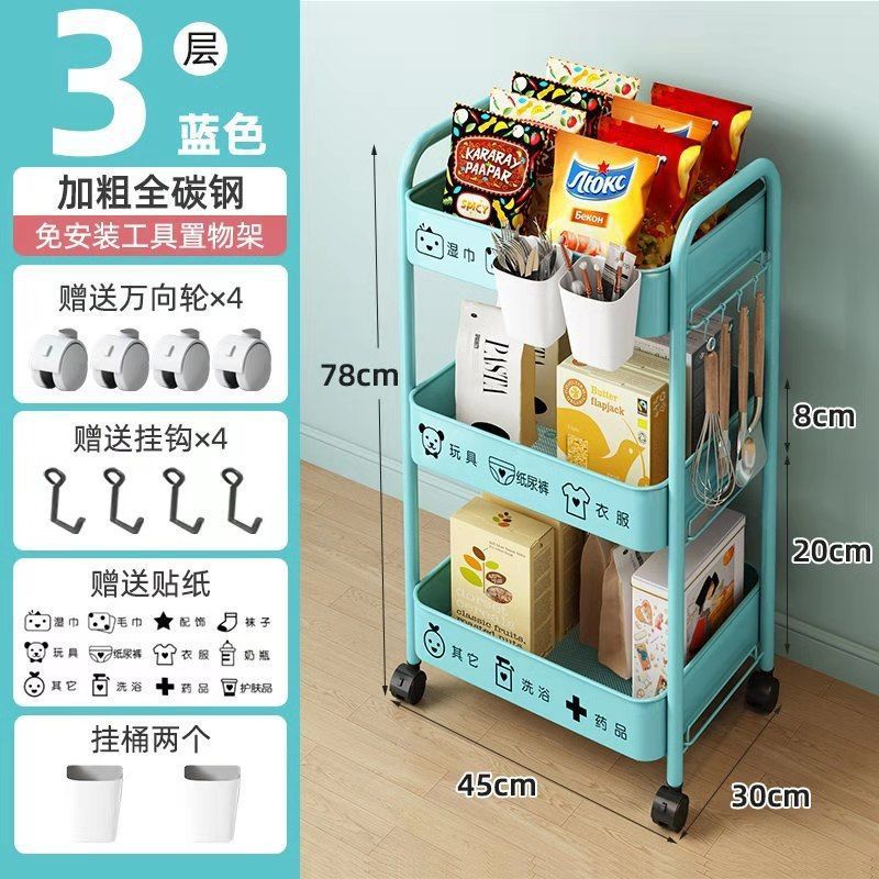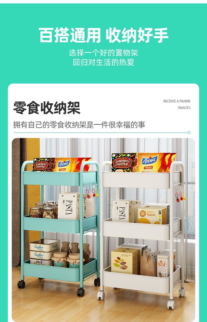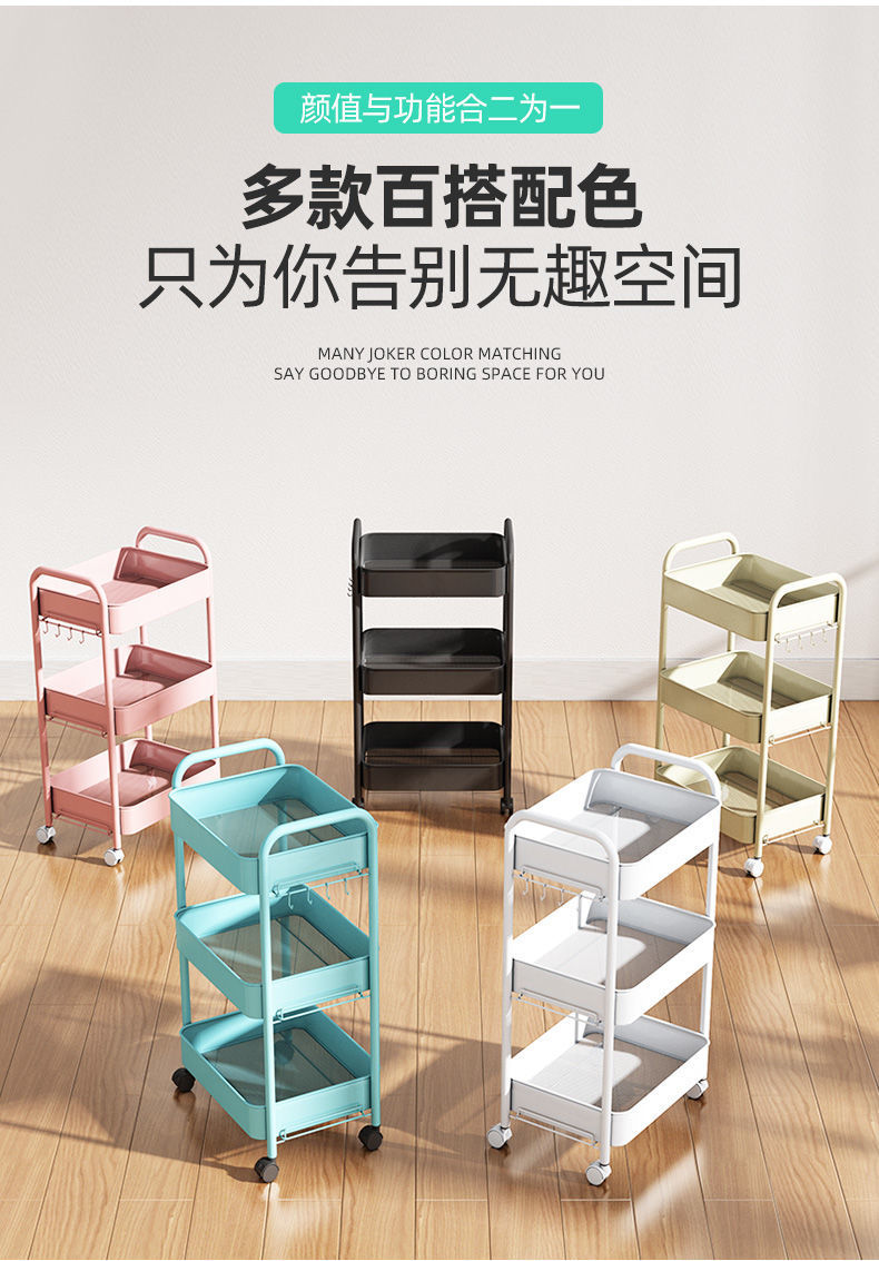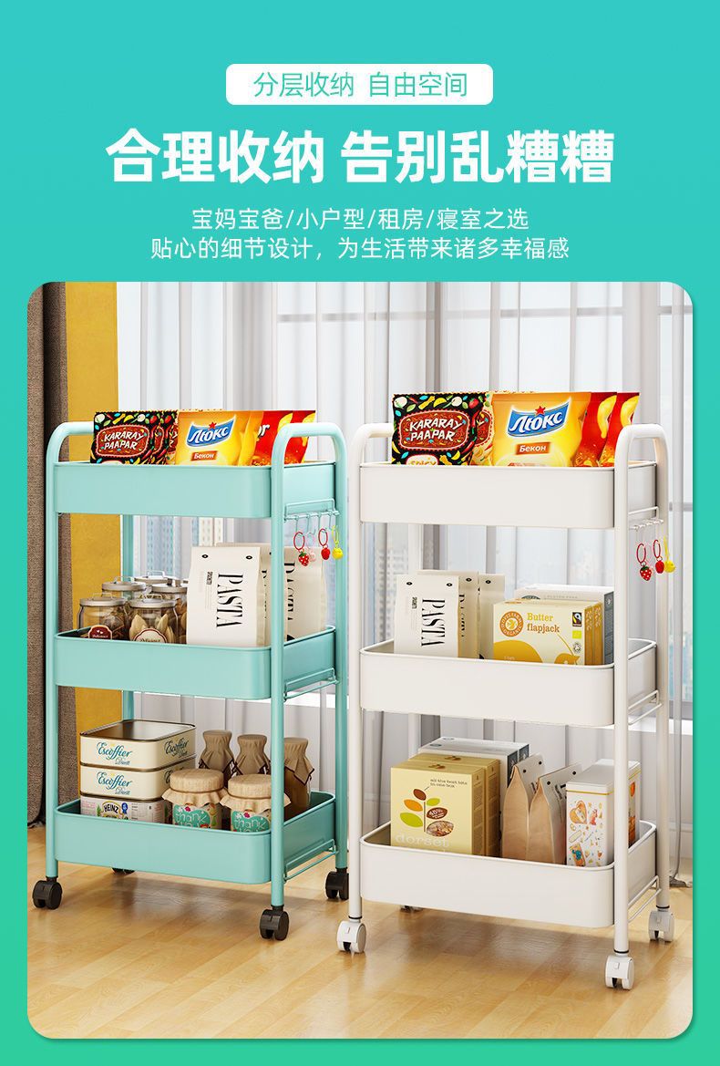 보관 트롤리 가정용 보관 랙 이동식 보관 랙 스낵 거실 침실 풀리가있는 탄소강 공장스토어 가기