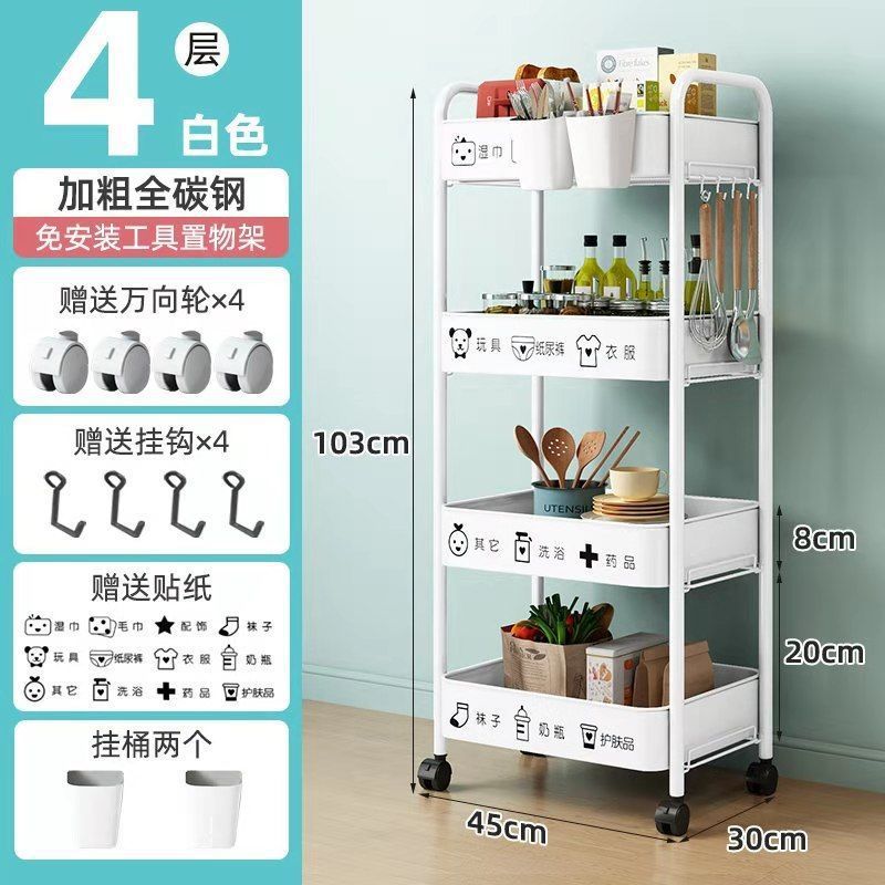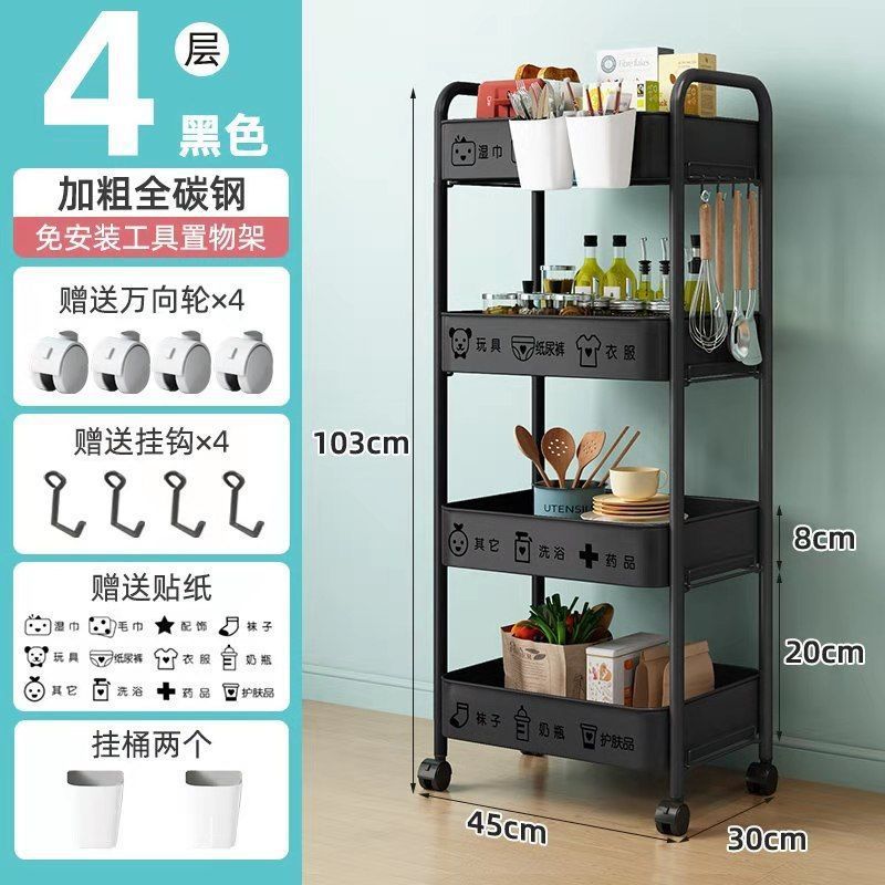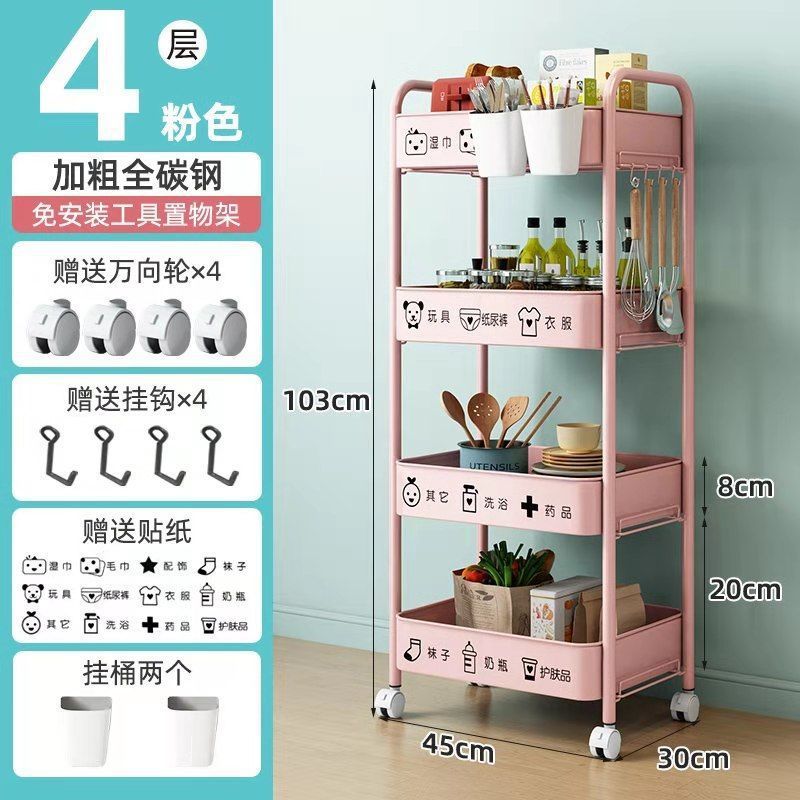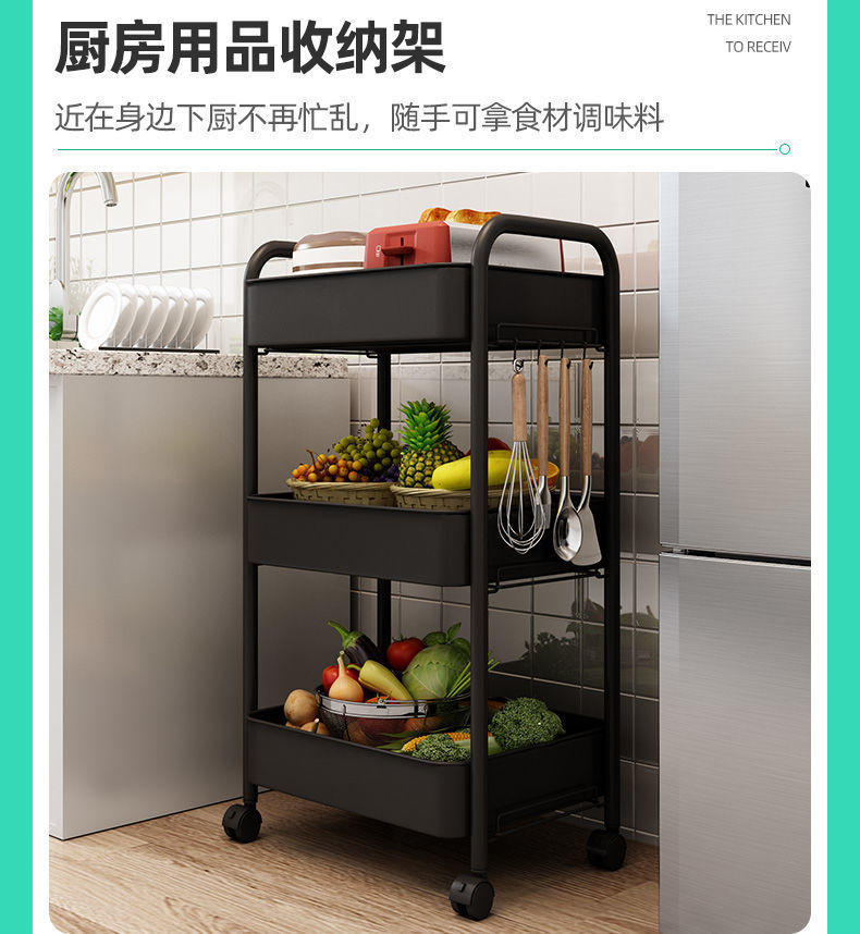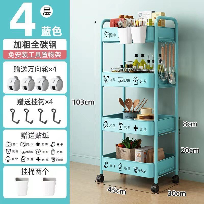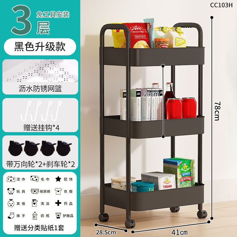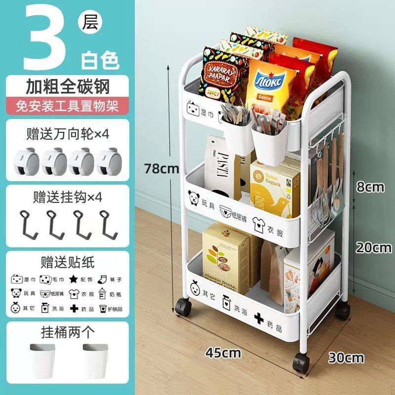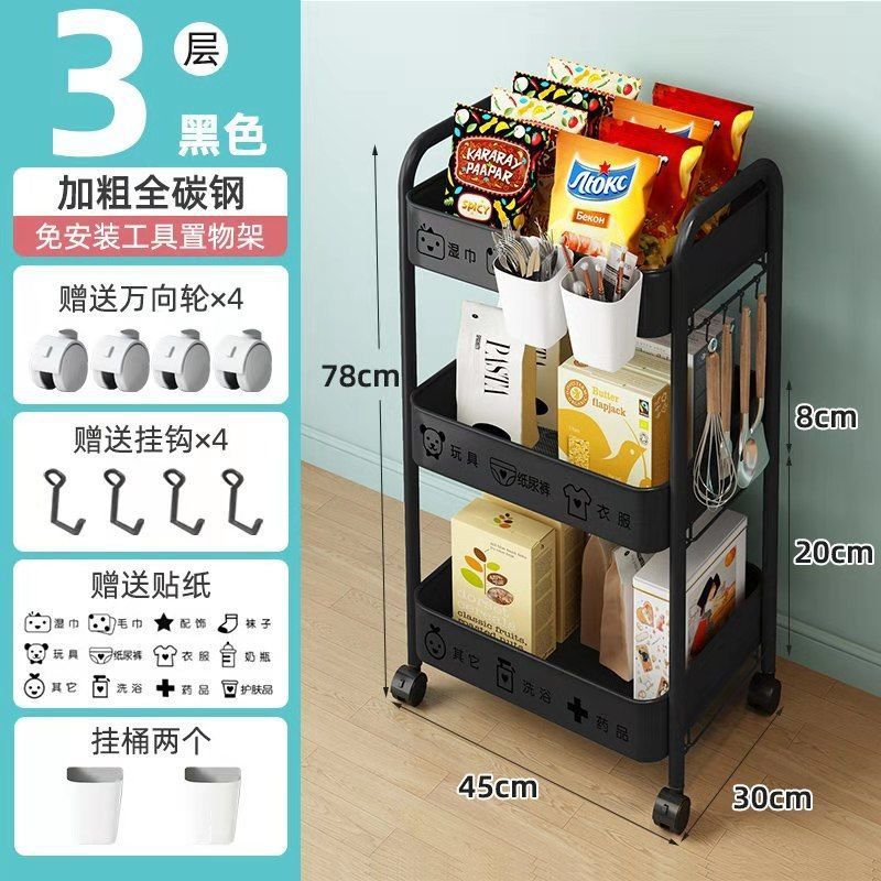 보관 트롤리 가정용 보관 랙 이동식 보관 랙 스낵 거실 침실 풀리가있는 탄소강 공장스토어 가기
