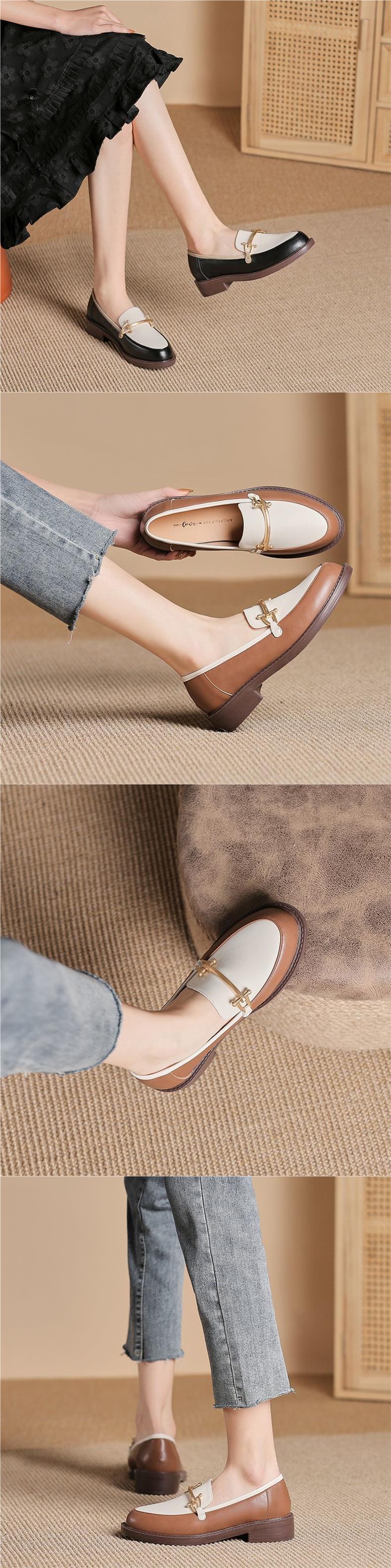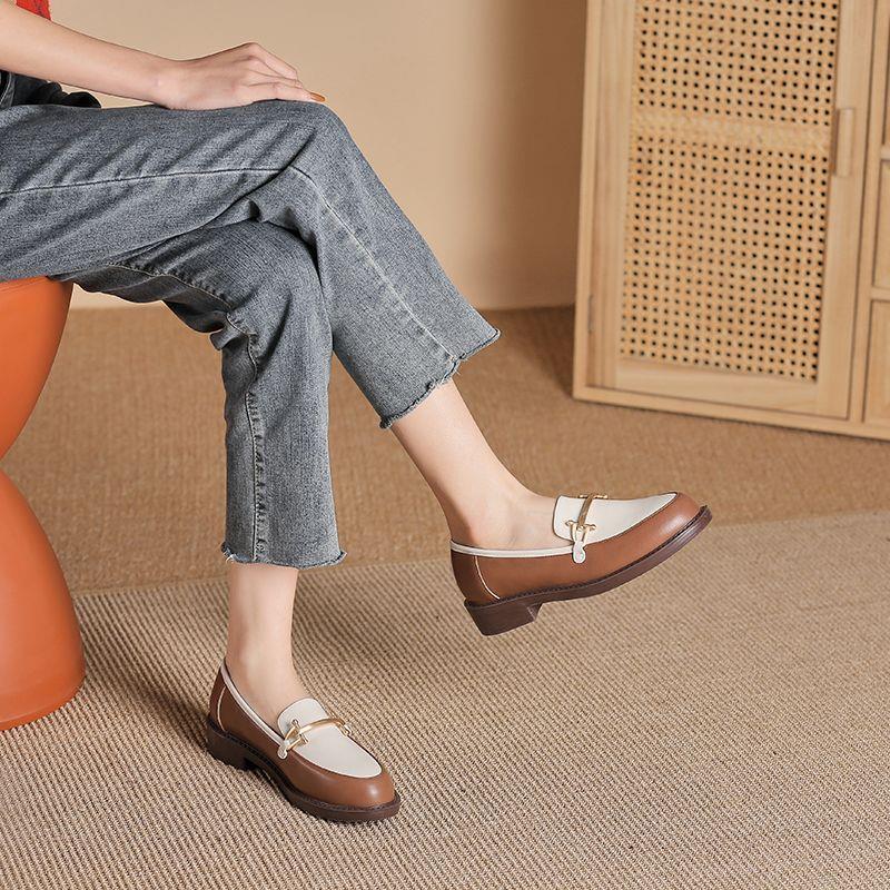 부드러운 가죽 영국 스타일 여성용 작은 가죽 신발 2025 새로운 다목적 로퍼 여성 플랫 슈즈 비니 신발스토어 가기