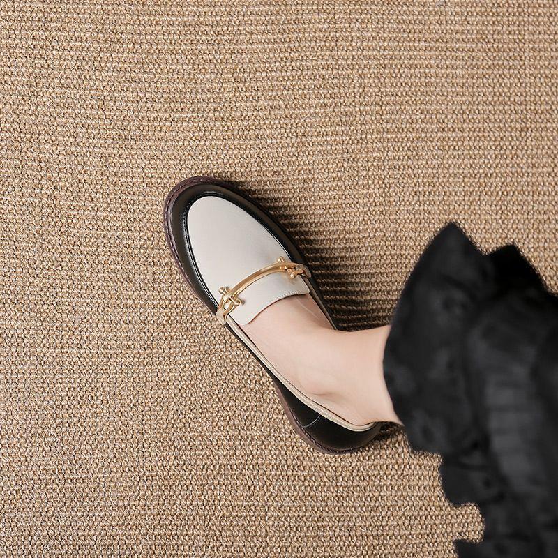 부드러운 가죽 영국 스타일 여성용 작은 가죽 신발 2025 새로운 다목적 로퍼 여성 플랫 슈즈 비니 신발