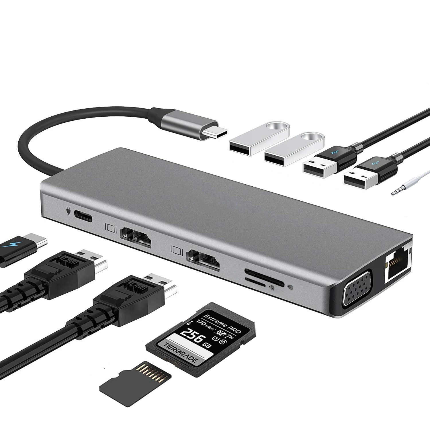 공장 도매 Type-c 확장 도크 12-in-one 도킹 스테이션 듀얼 hdmiMTS 멀티 스크린 기가비트 네트워크 포트 크로스보더