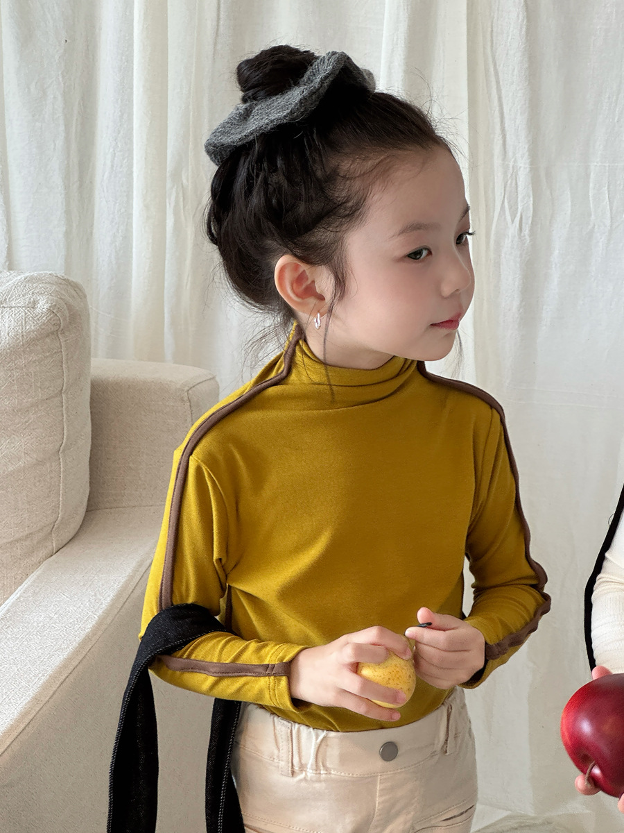 Yuyu Princess Girls 가을, 겨울 프렌치 콘트라스트 하프 터틀넥 셔츠 아동용 디자인 틈새 이너 탑