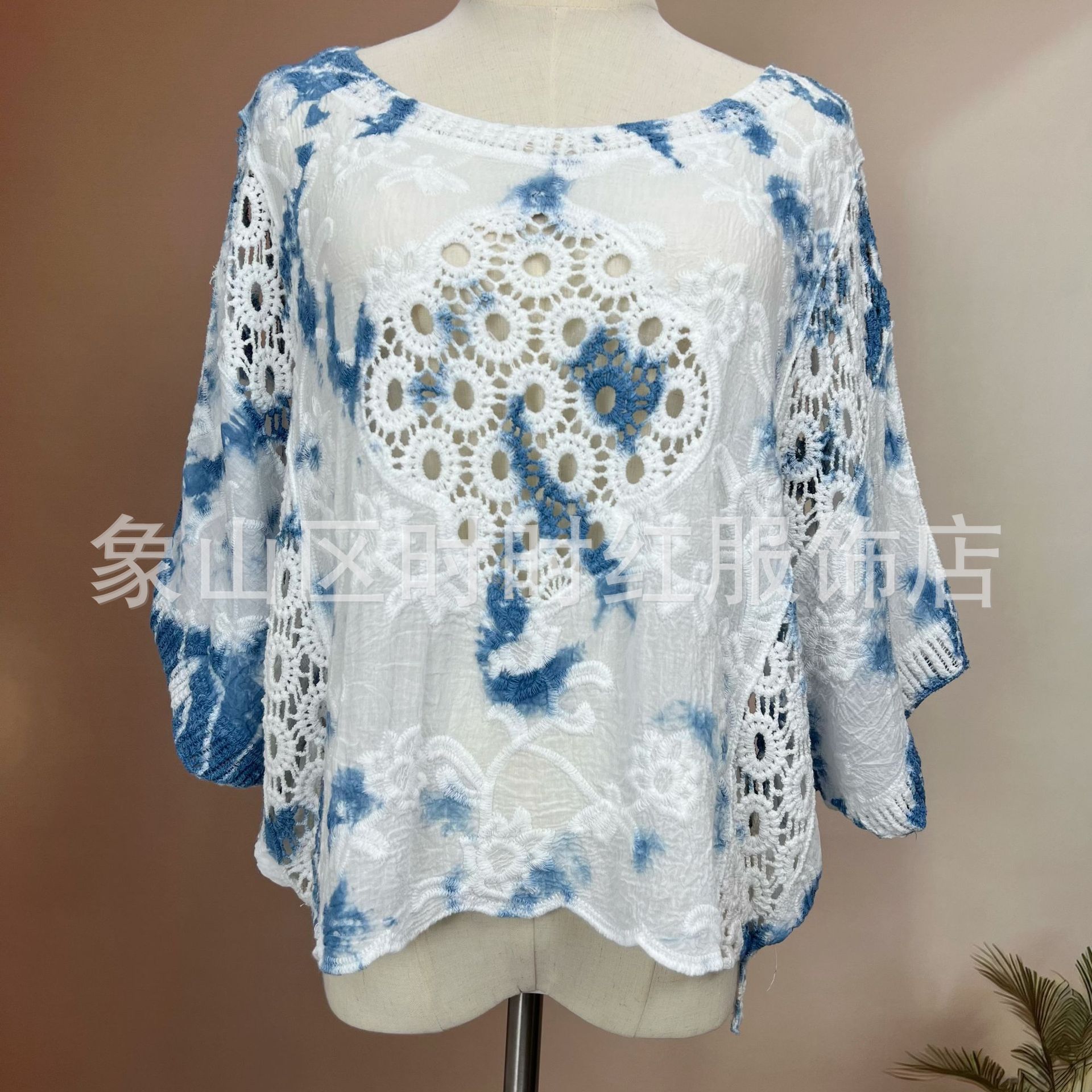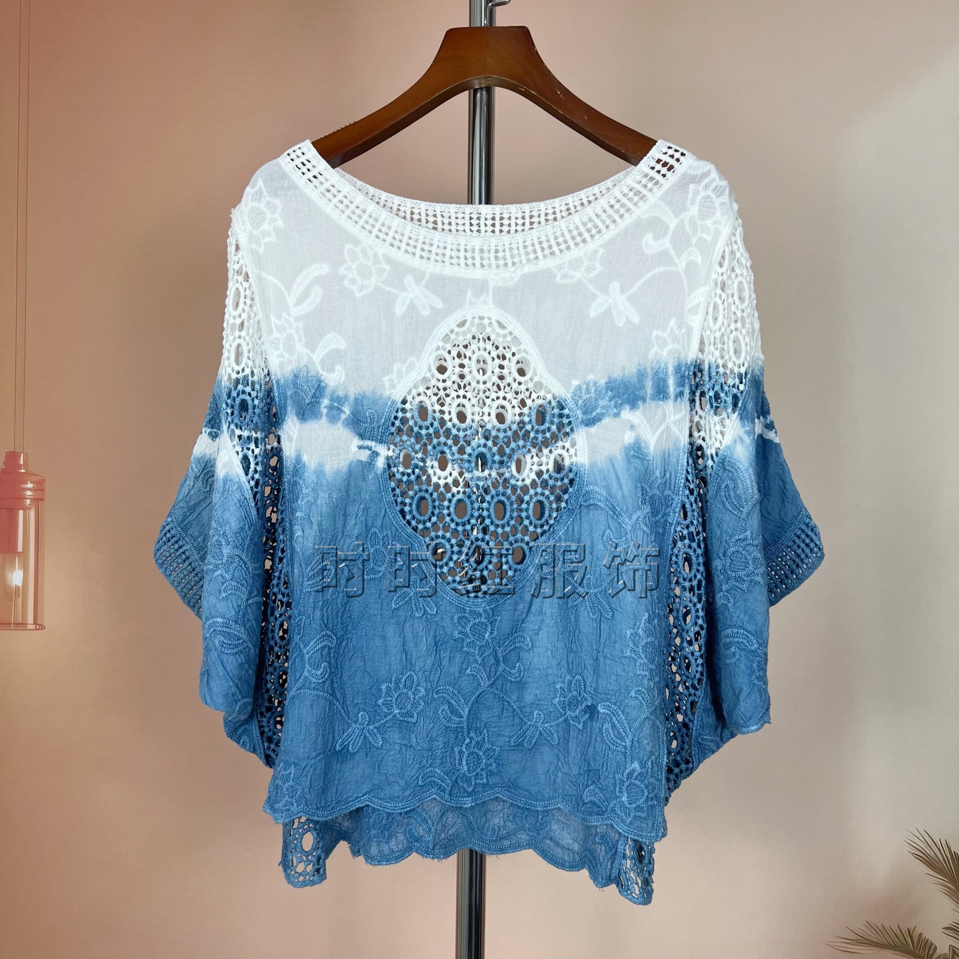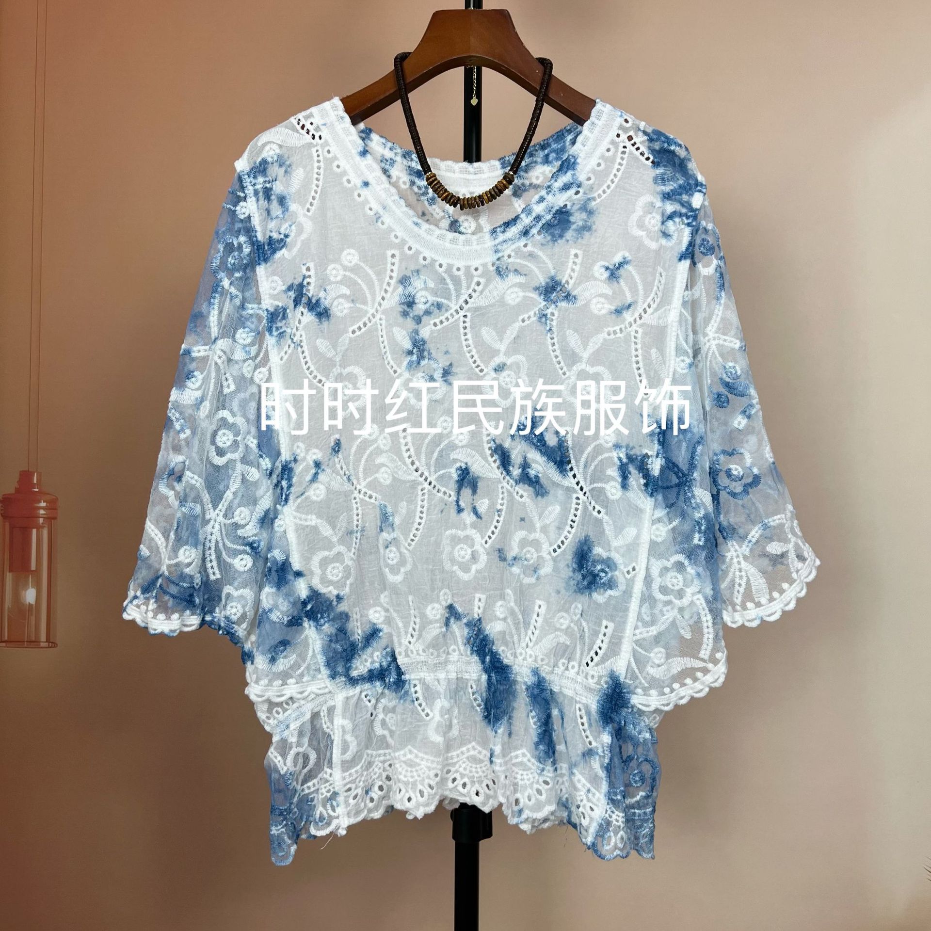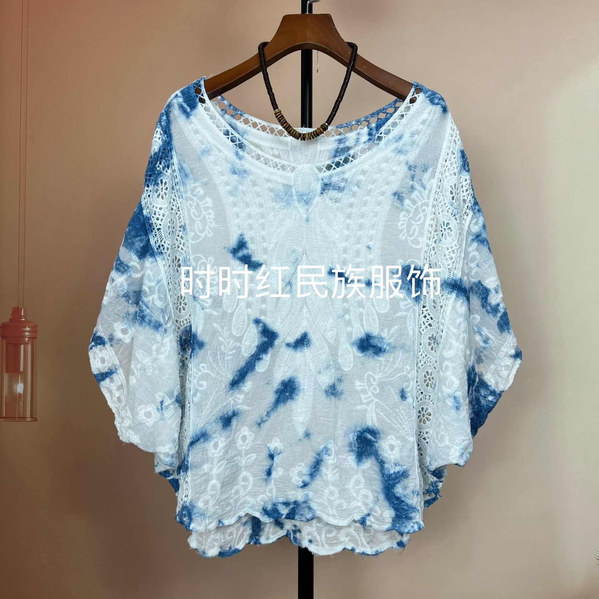 타이다이 배트 슬리브 자수 탑, 자수 숄, 해변 휴가 자외선 차단 의류, 에어컨 셔츠, 새로운 스타일의 레이스 셔츠스토어 가기