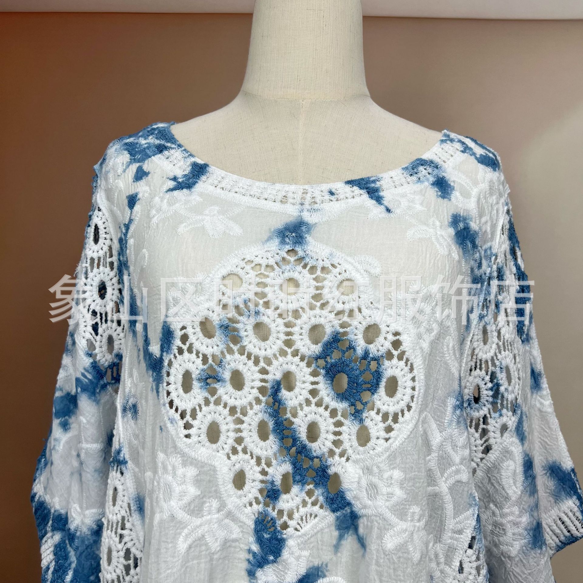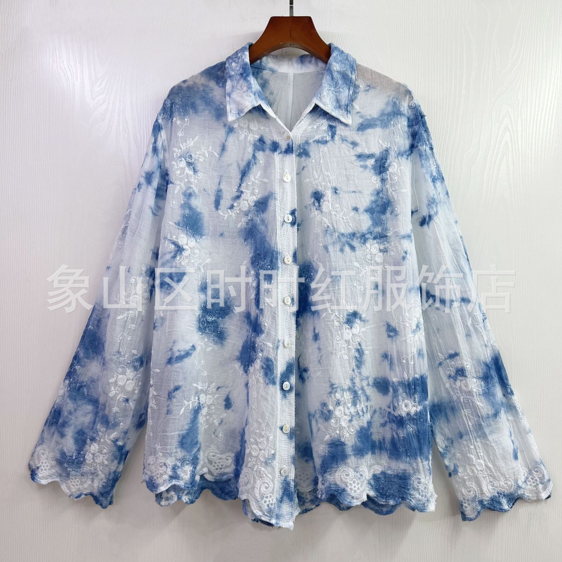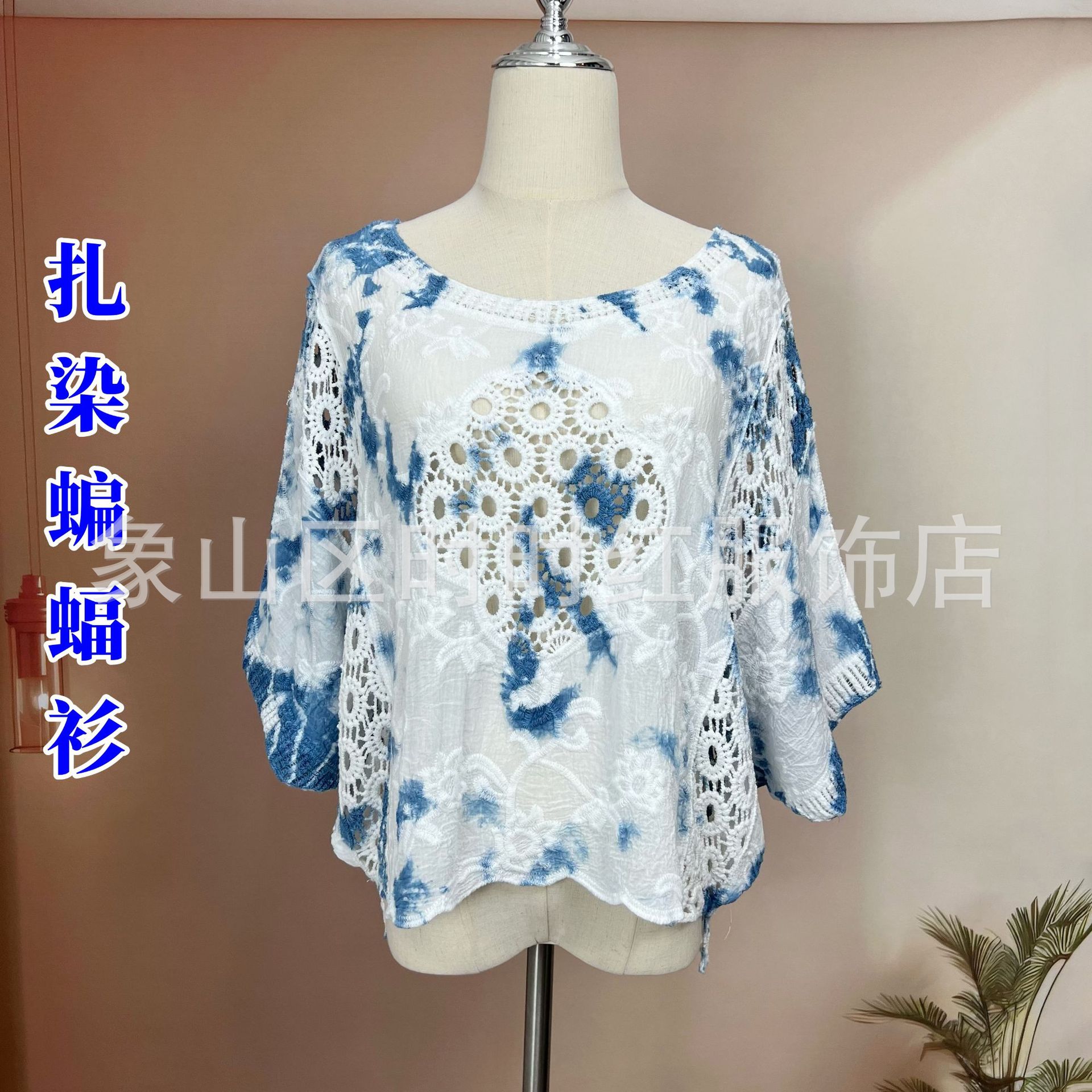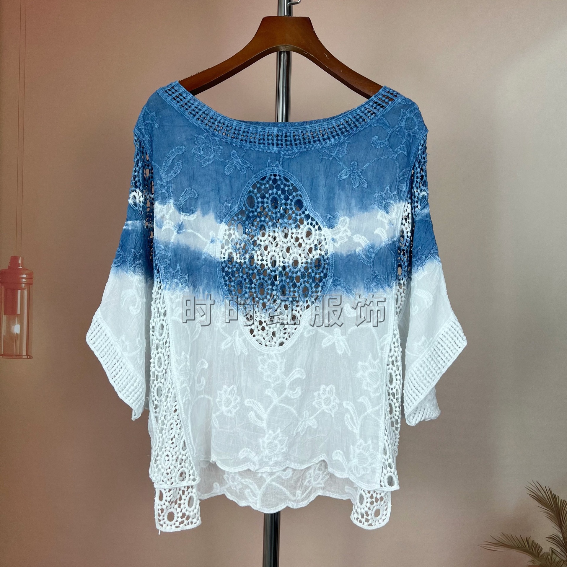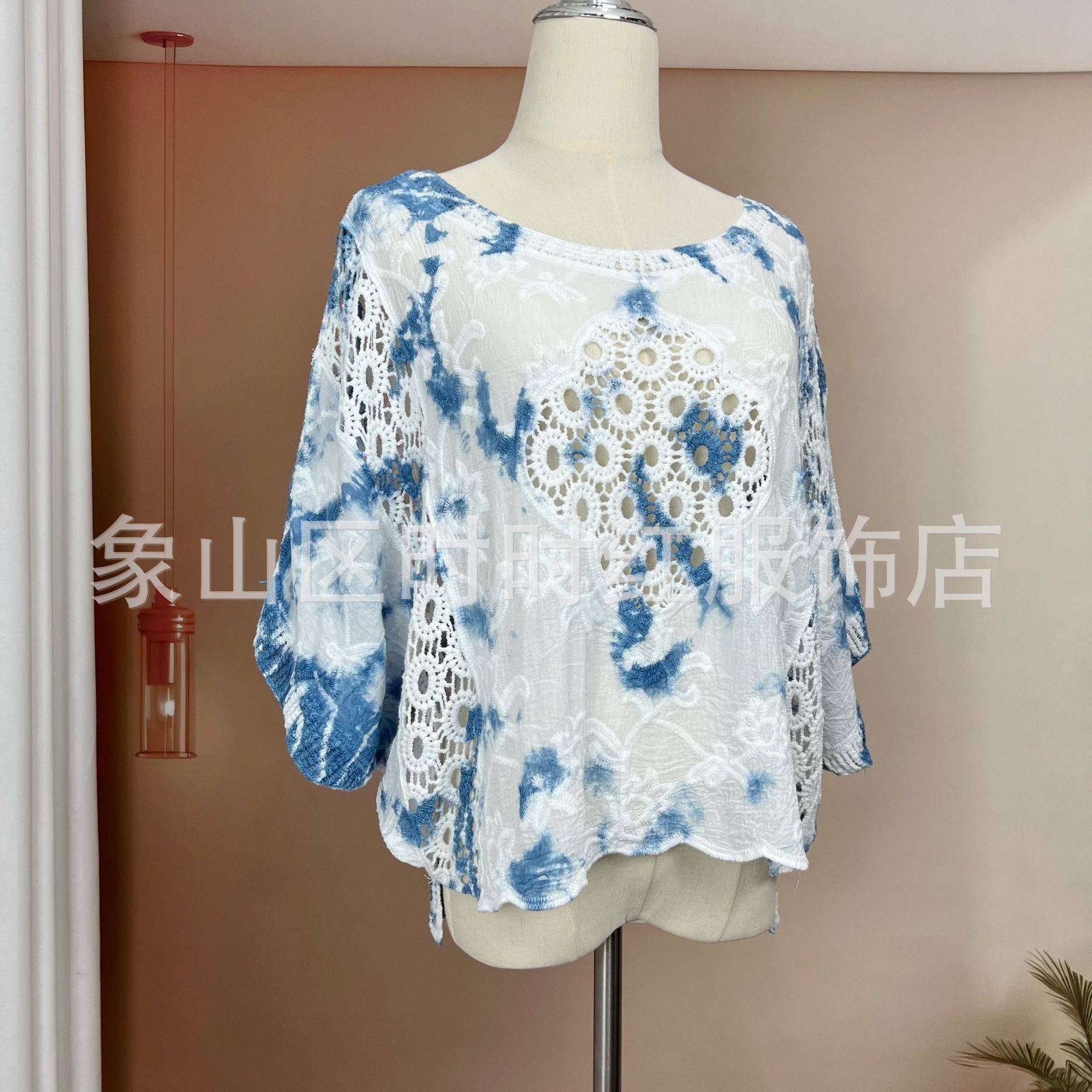 타이다이 배트 슬리브 자수 탑, 자수 숄, 해변 휴가 자외선 차단 의류, 에어컨 셔츠, 새로운 스타일의 레이스 셔츠스토어 가기