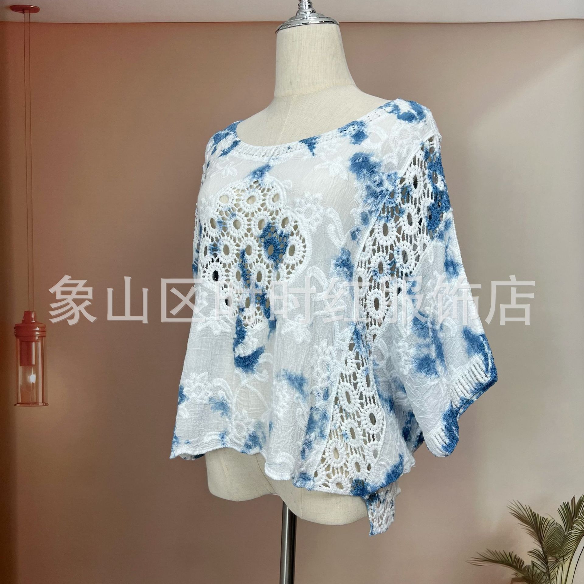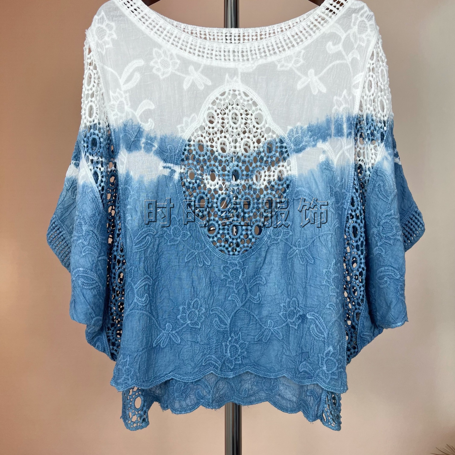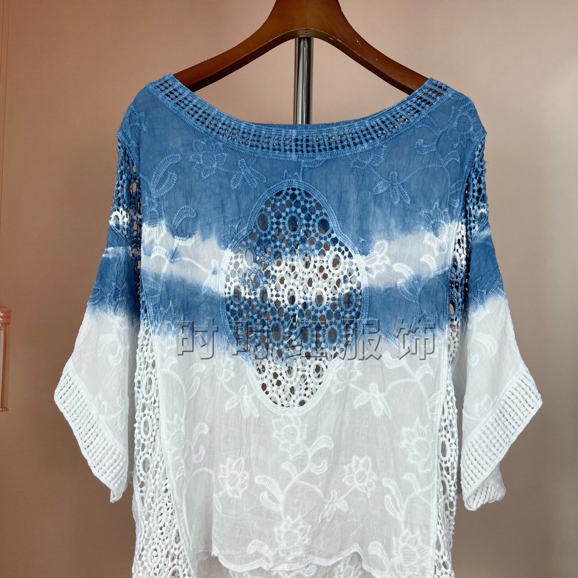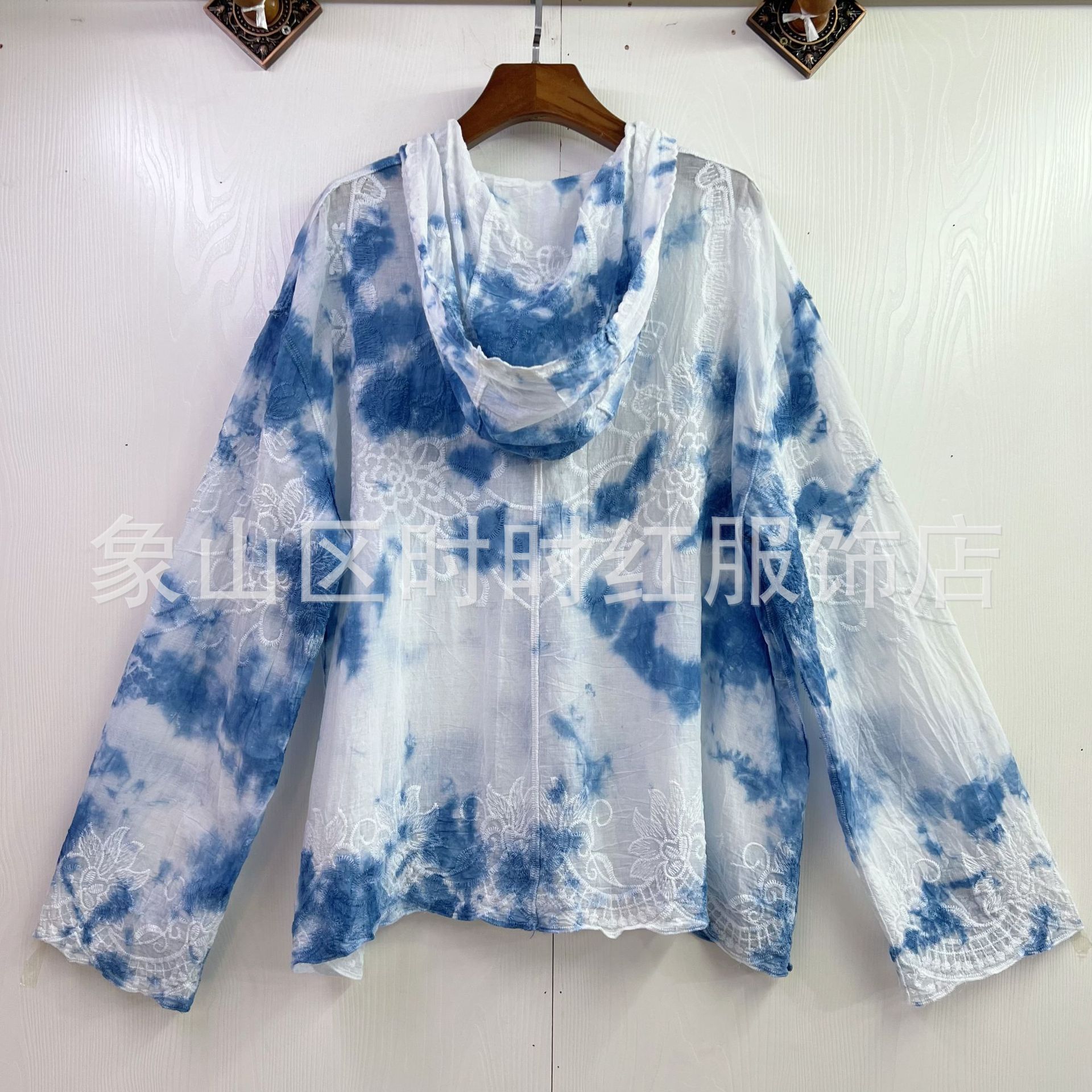 타이다이 배트 슬리브 자수 탑, 자수 숄, 해변 휴가 자외선 차단 의류, 에어컨 셔츠, 새로운 스타일의 레이스 셔츠스토어 가기