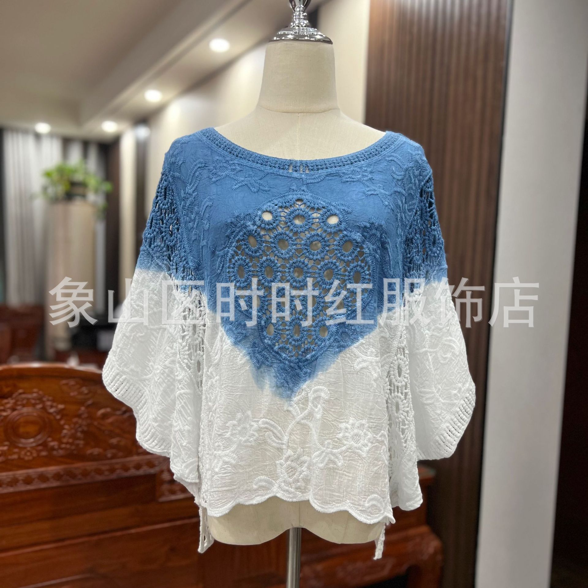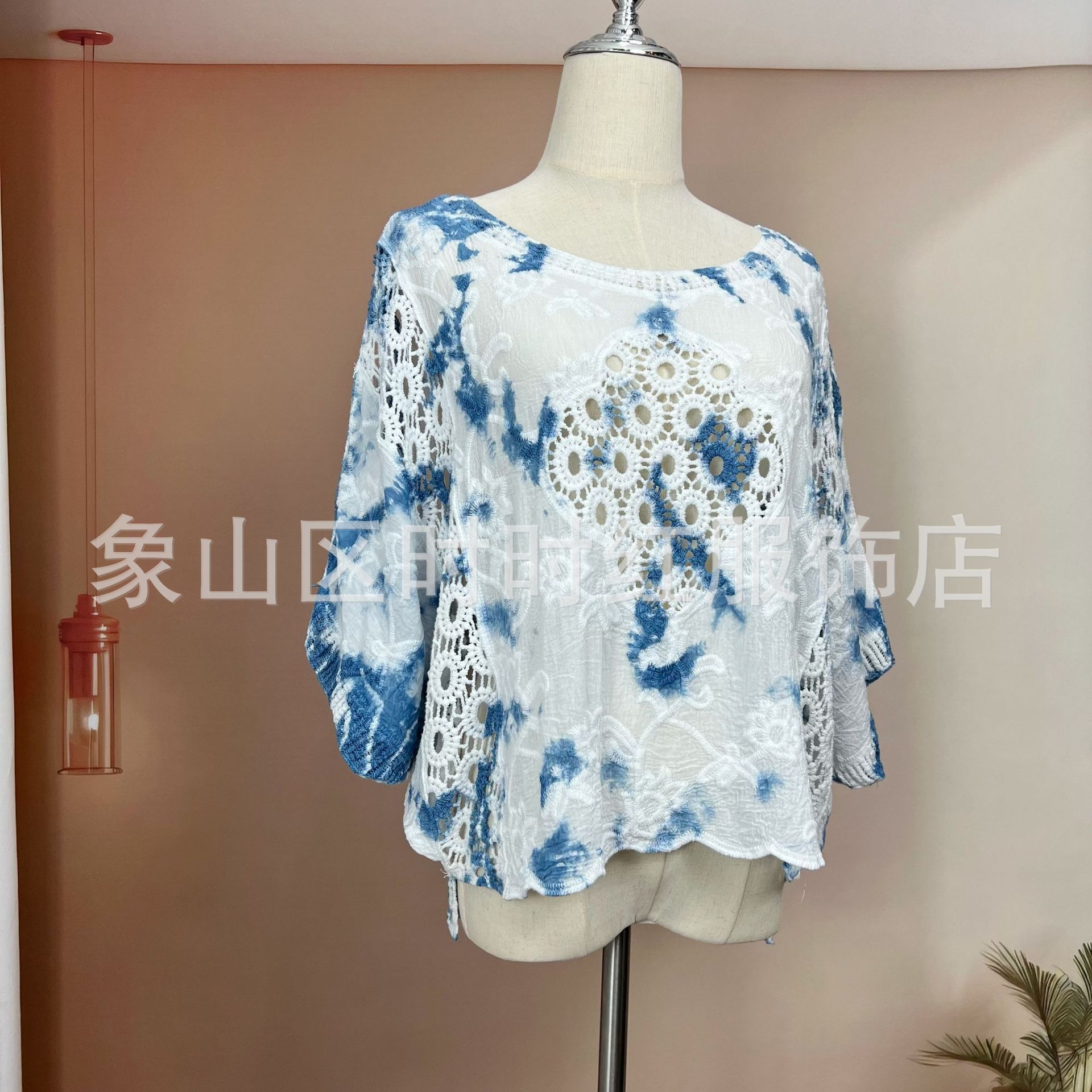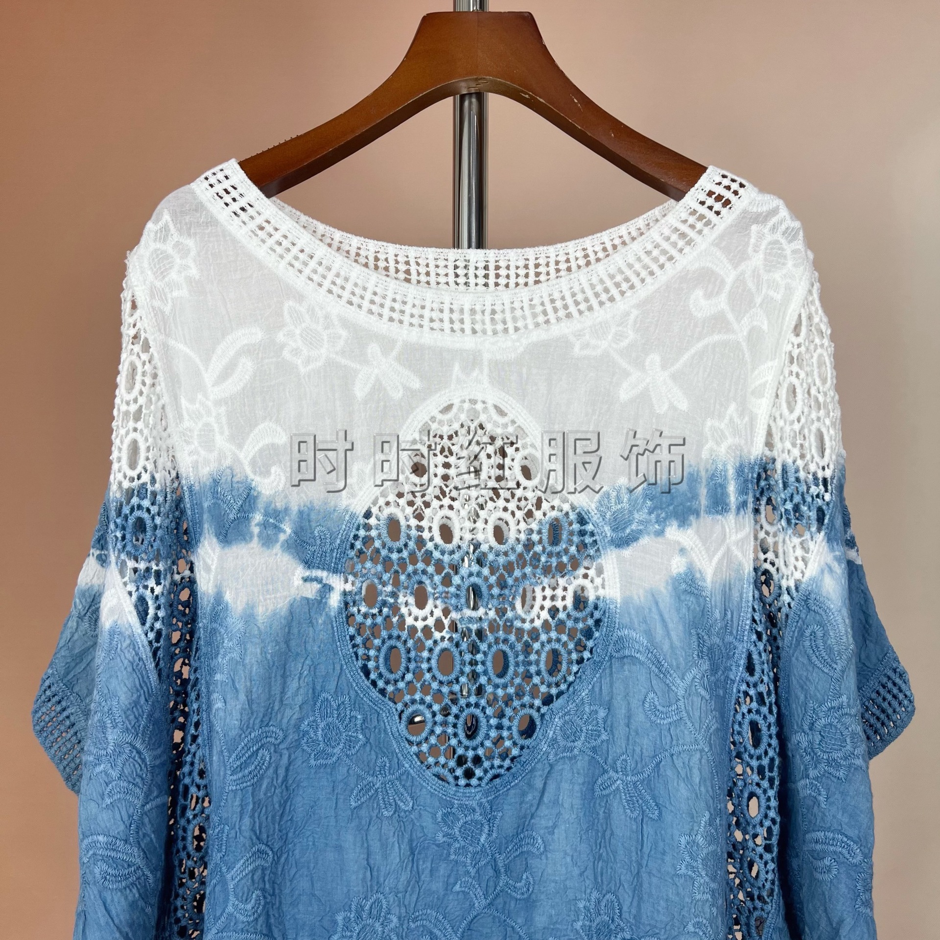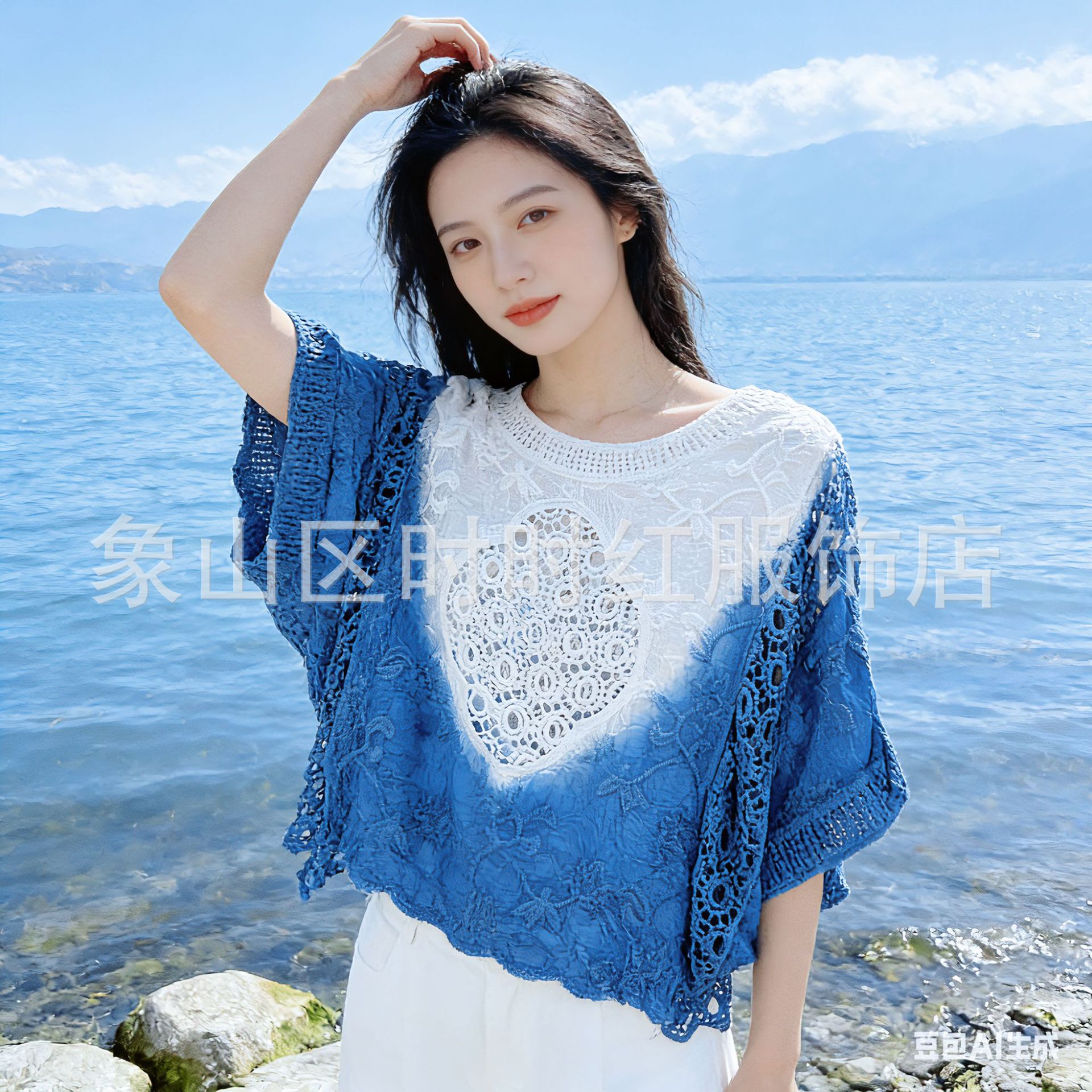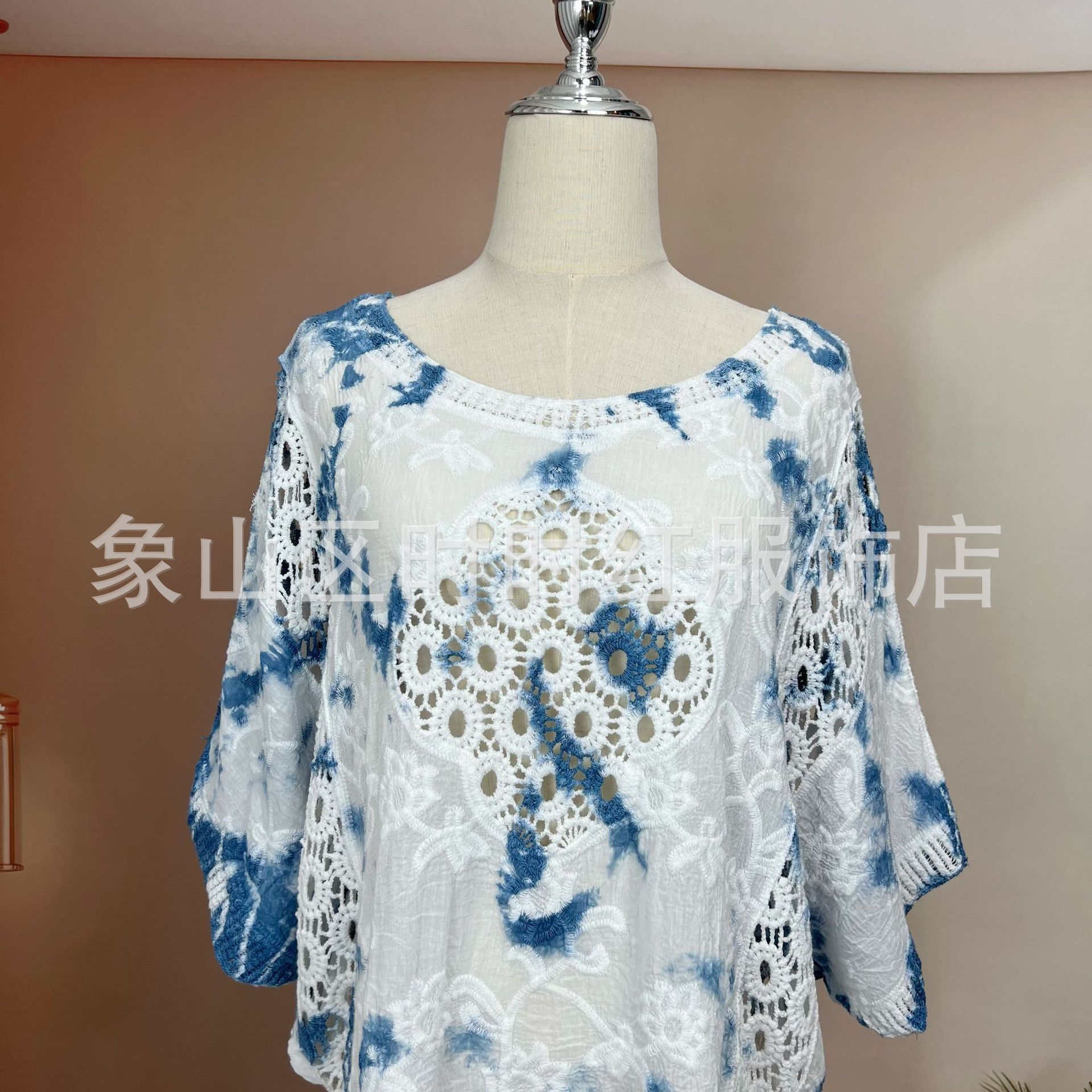 타이다이 배트 슬리브 자수 탑, 자수 숄, 해변 휴가 자외선 차단 의류, 에어컨 셔츠, 새로운 스타일의 레이스 셔츠스토어 가기