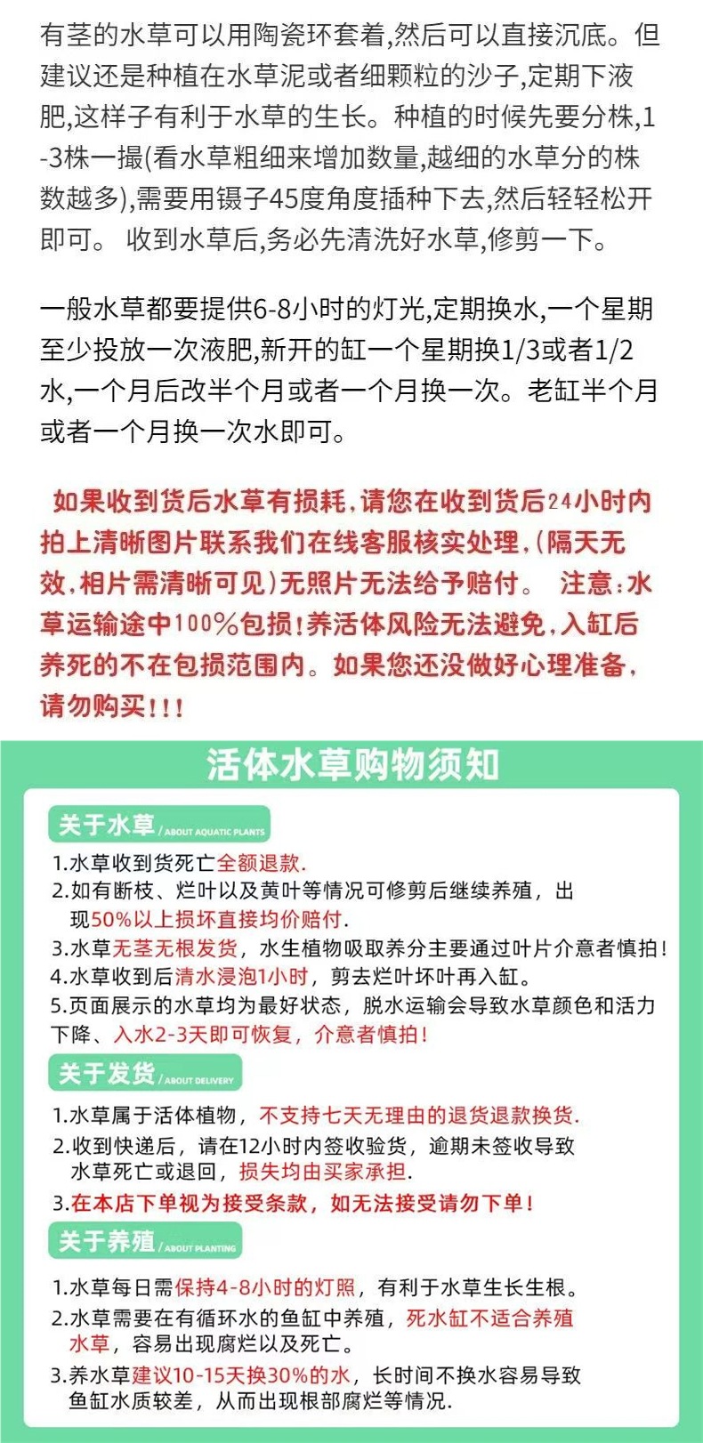 • 다양한 종류의 수생식물 3컵과 싱킹링 3개