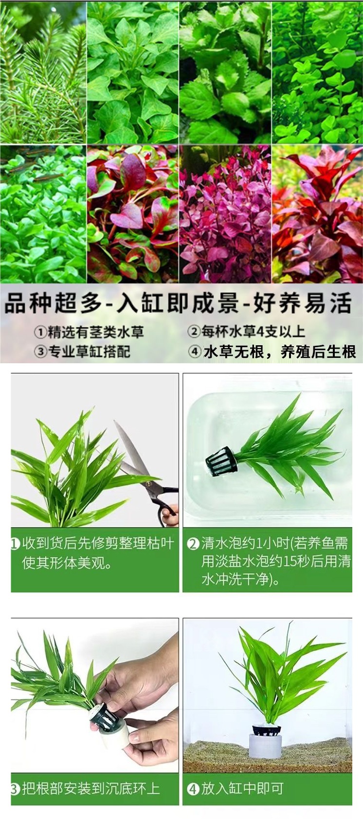 • 다양한 종류의 수생 식물 4컵과 싱킹 링 4개