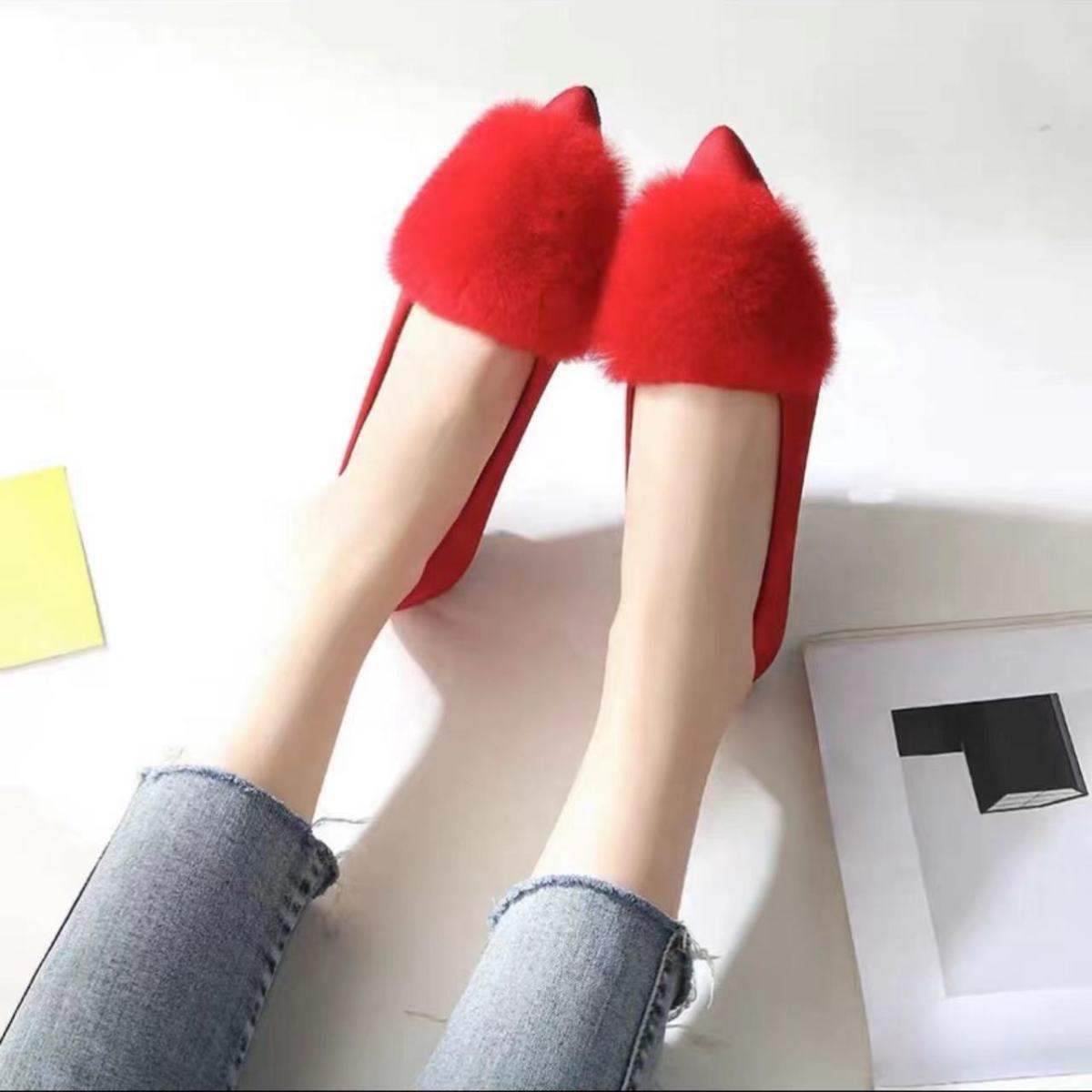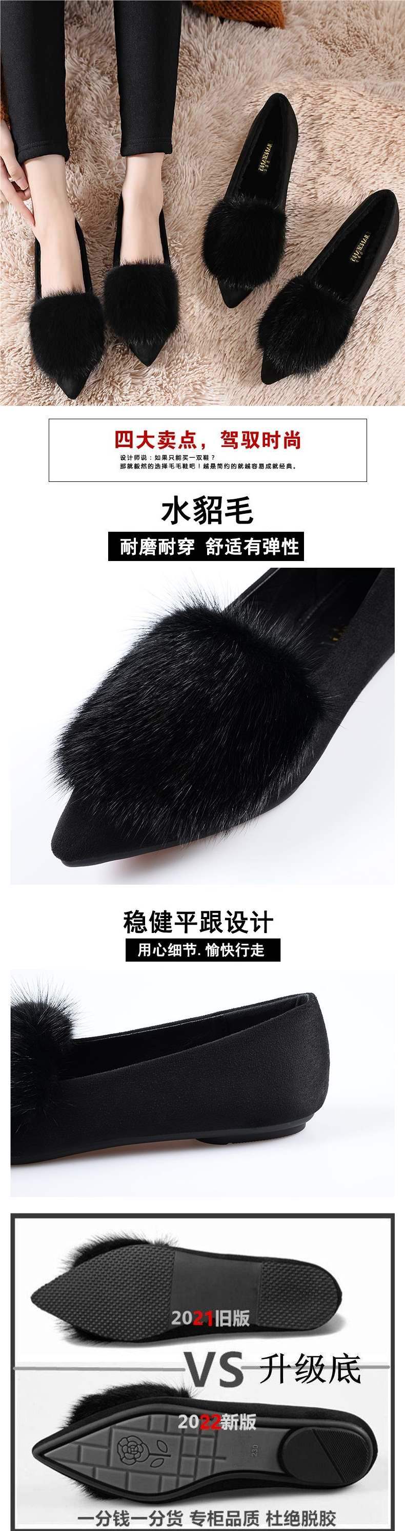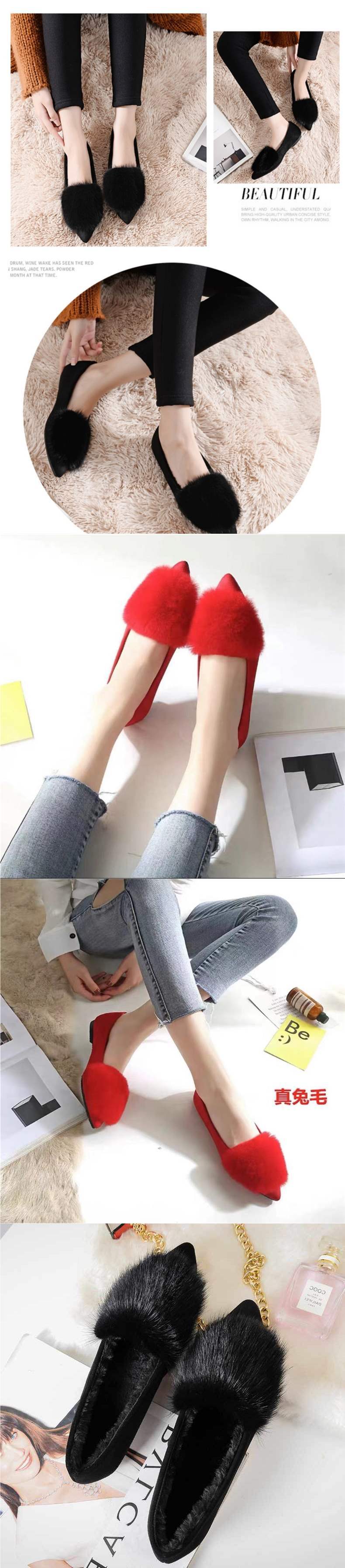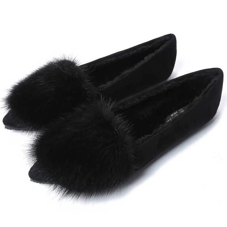 2025 신상 밍크 모피 슈즈, 여성 겨울 벨벳 싱글 슈즈, 뾰족한 앞코, 플랫 바닥, 얕은 입구 슈즈스토어 가기