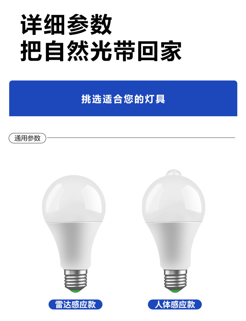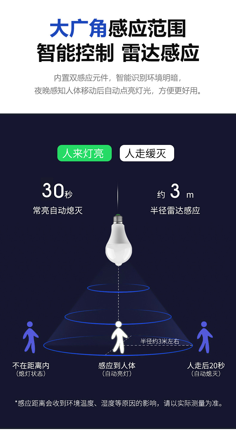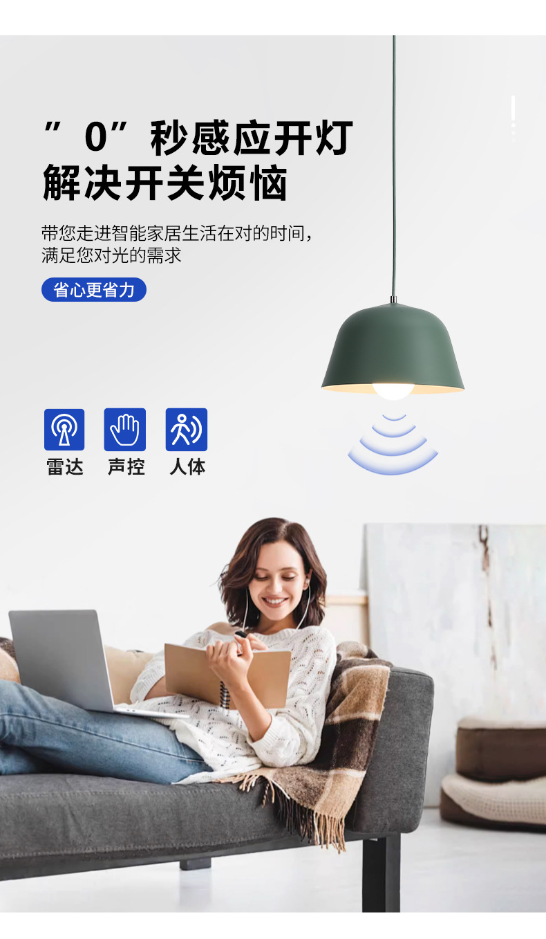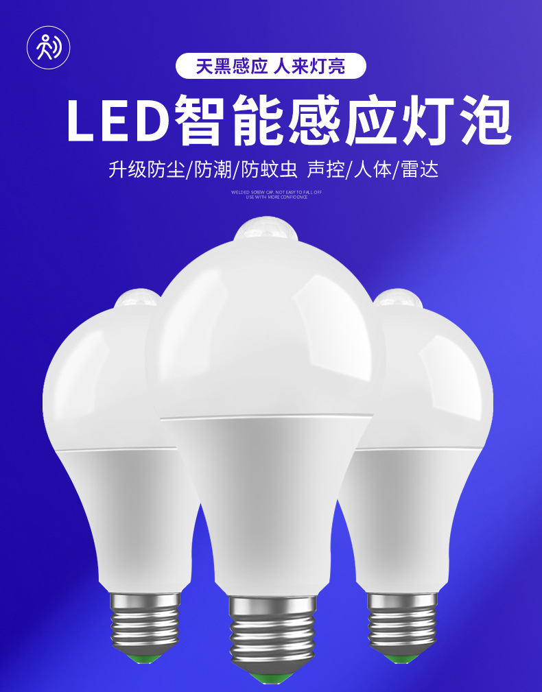 소리 및 조명 제어 삼중 감지 전구 레이더 복도 조명 자동 인체 적외선 복도 조명 에너지 절약형 LED 조명 제어
