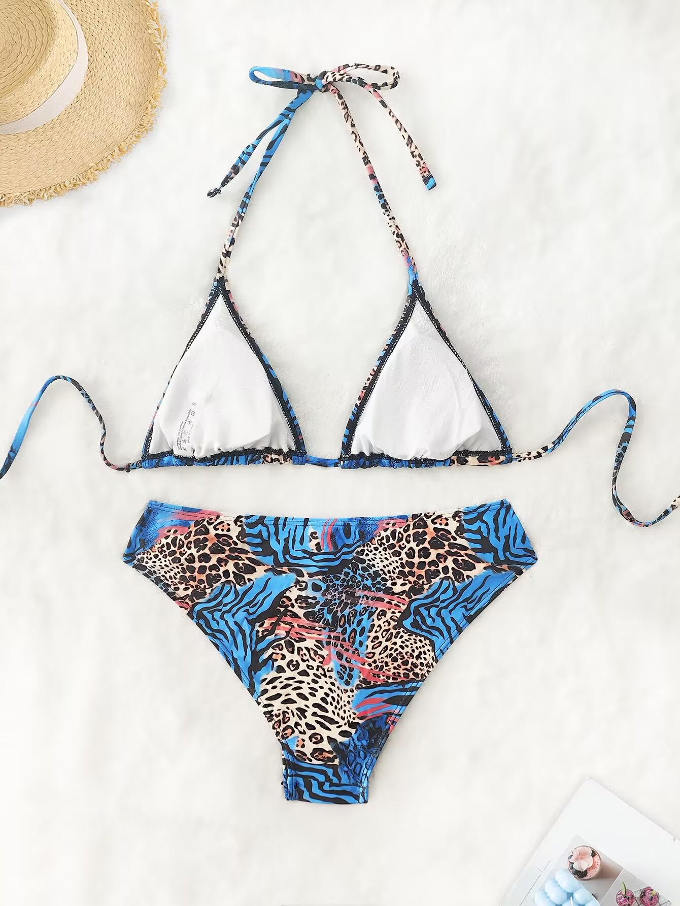 유럽과 미국의 대외 무역 새로운 스타일 스플릿 수영복 프린트 비키니 3피스 커버업 긴팔 자외선 차단제 홀터넥 비키니스토어 가기