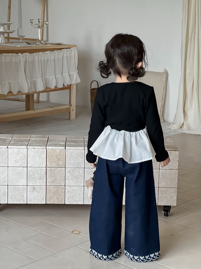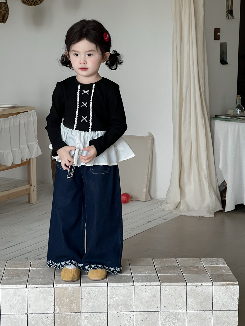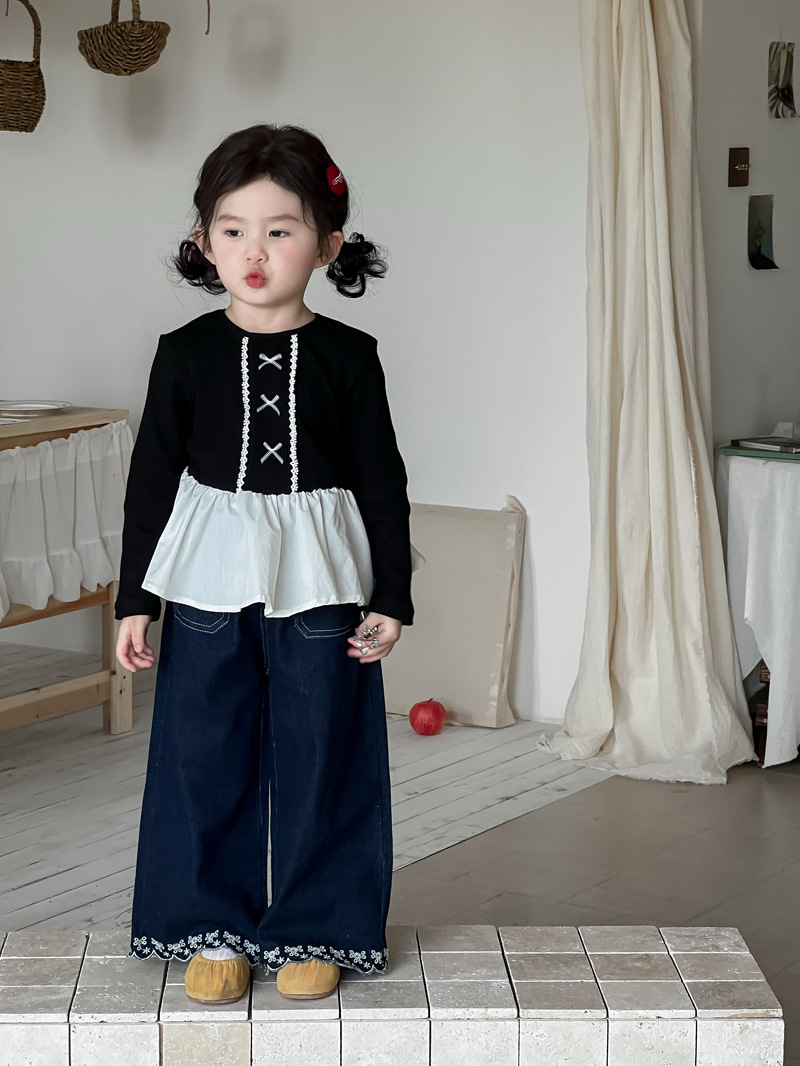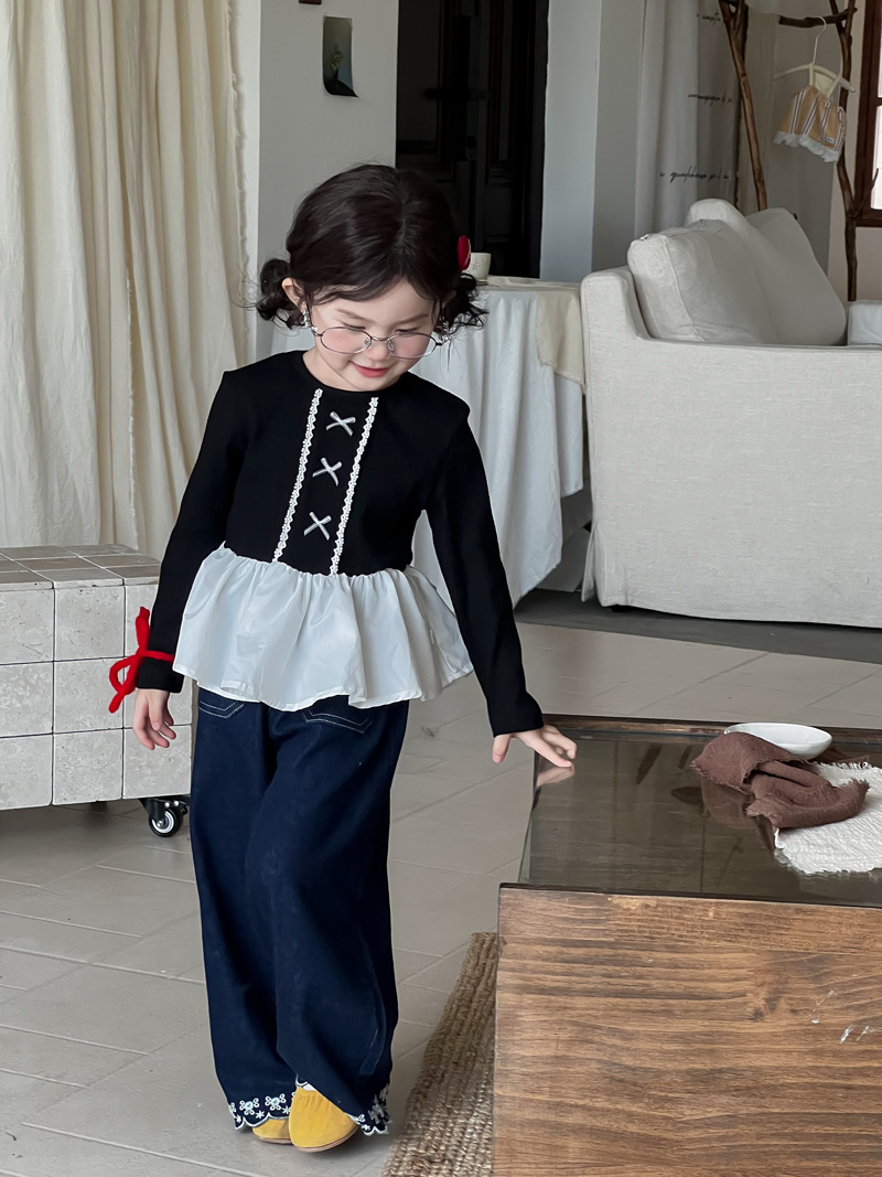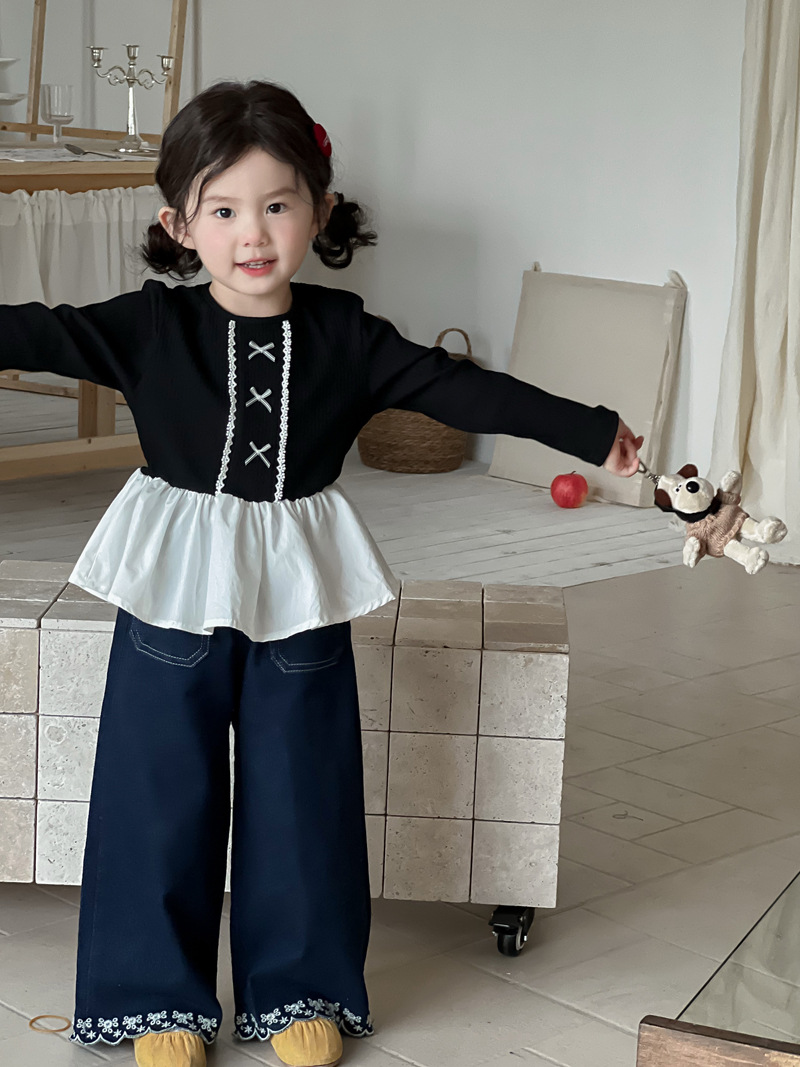 Wheatfield 시즌 가을, 겨울 새로운 아동 의류 한국 스타일 소녀 프릴 공주 바닥 셔츠 아동 보우 레이스 탑