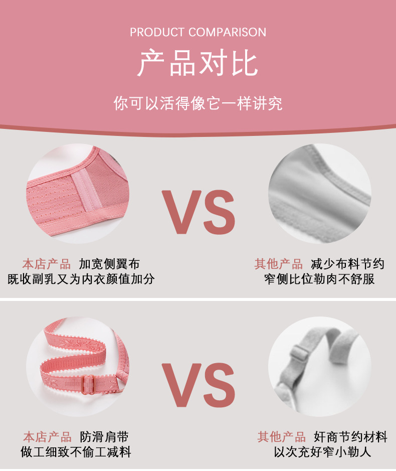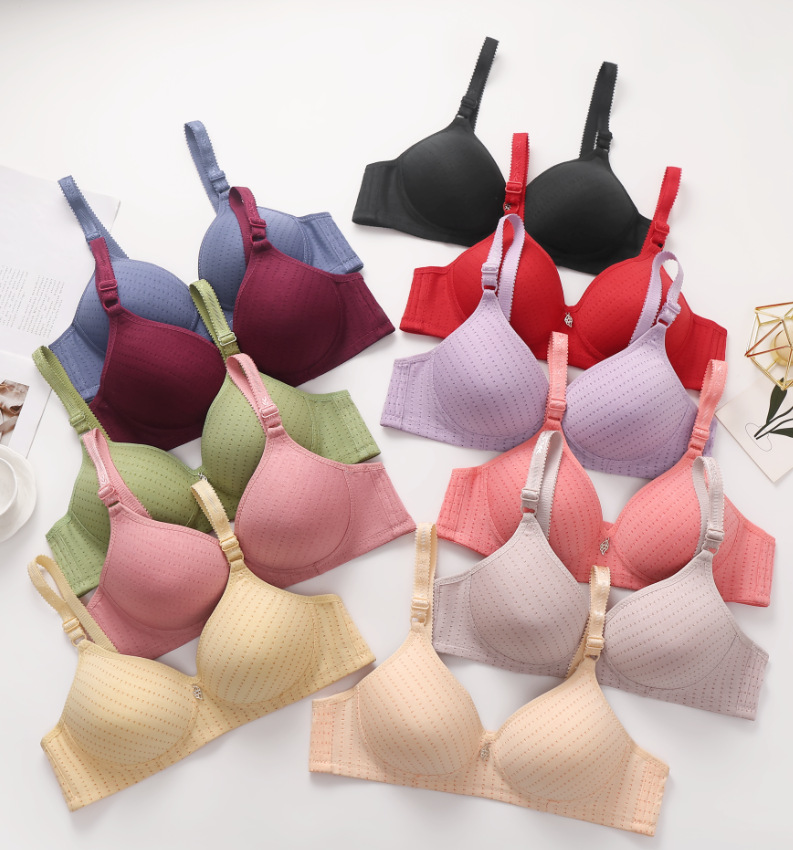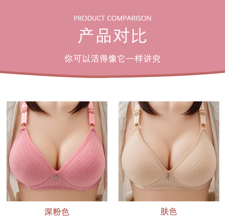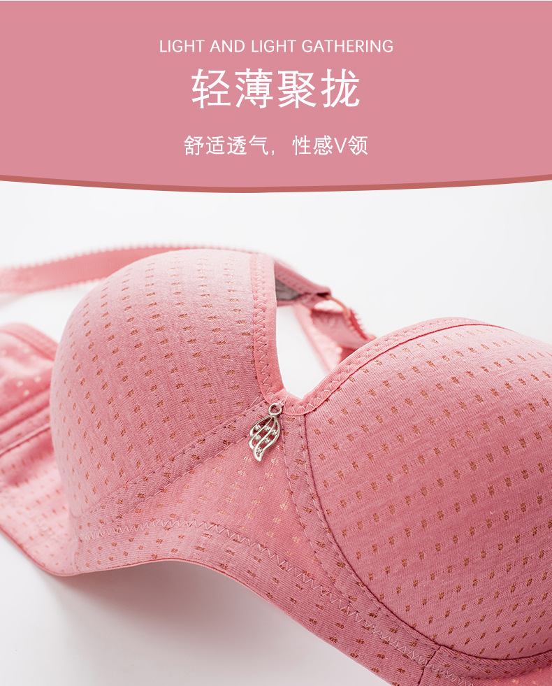 크로스보더 와이어 프리 푸쉬업 브이넥 브라, 여성용 사이드 서포트 속옷, 얇은 면 광택 중년 및 노년층 엄마 브라스토어 가기