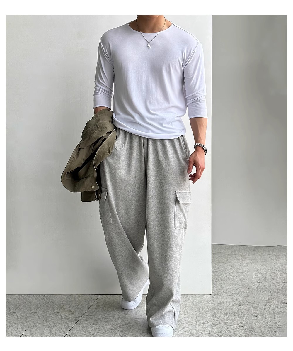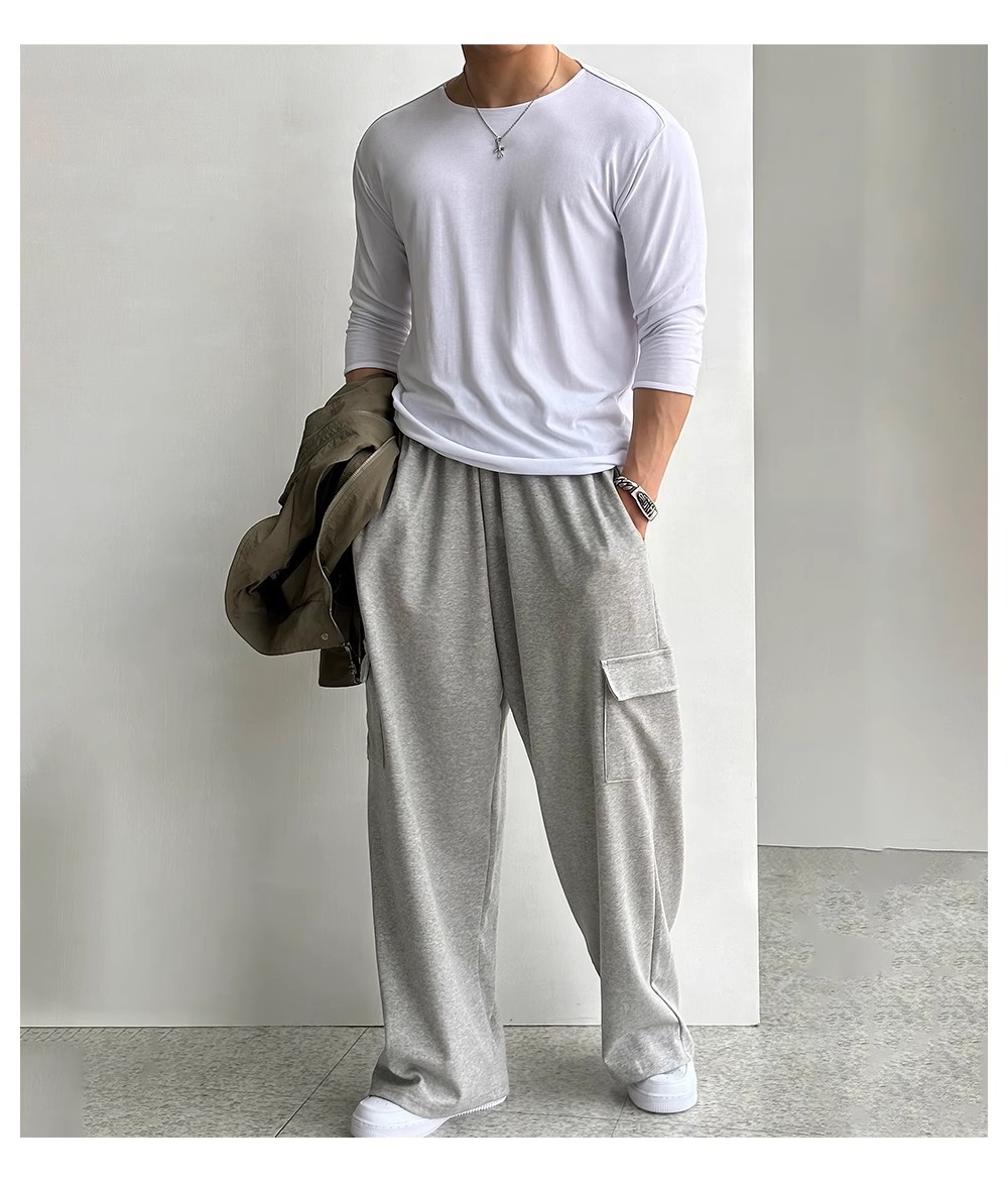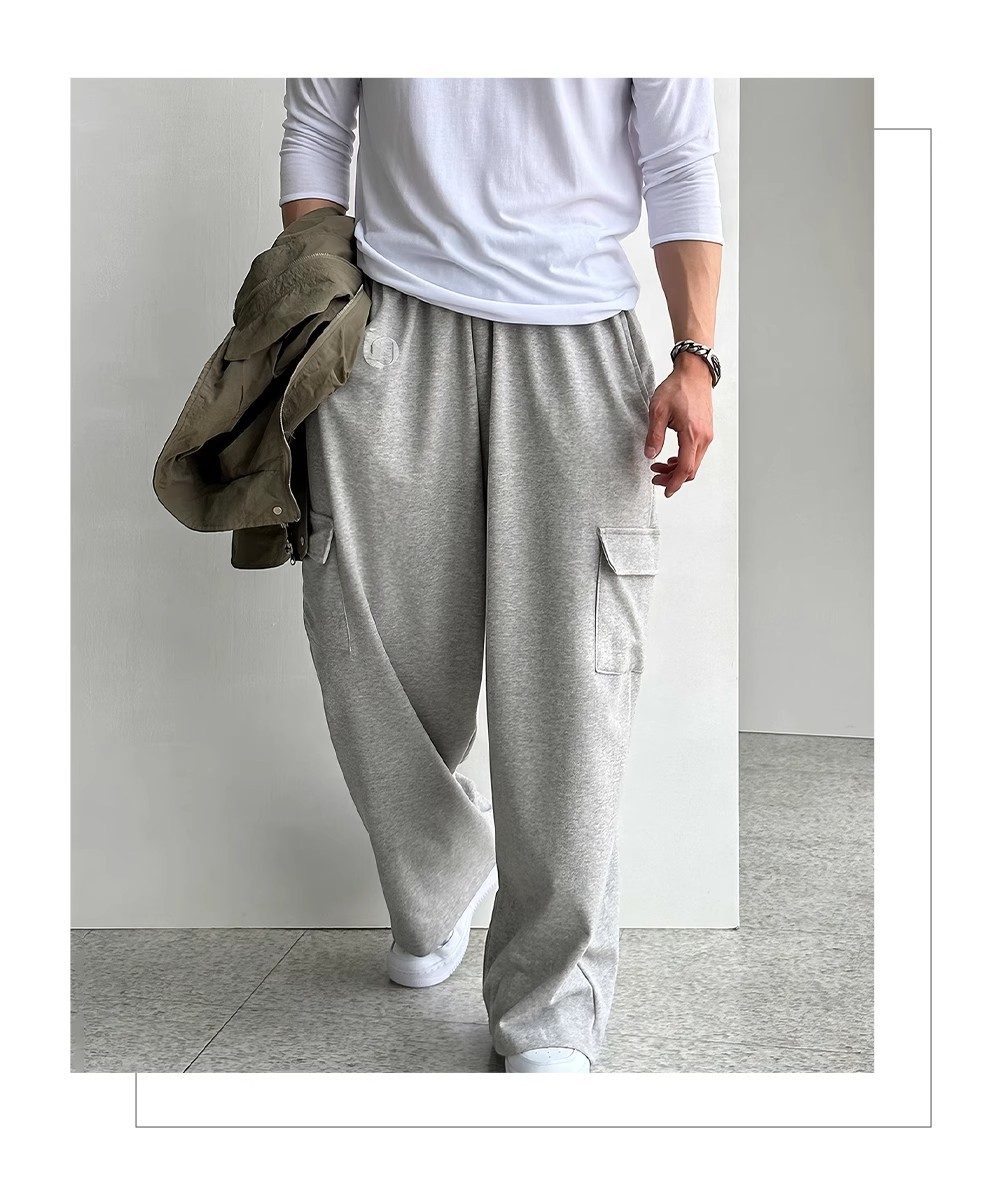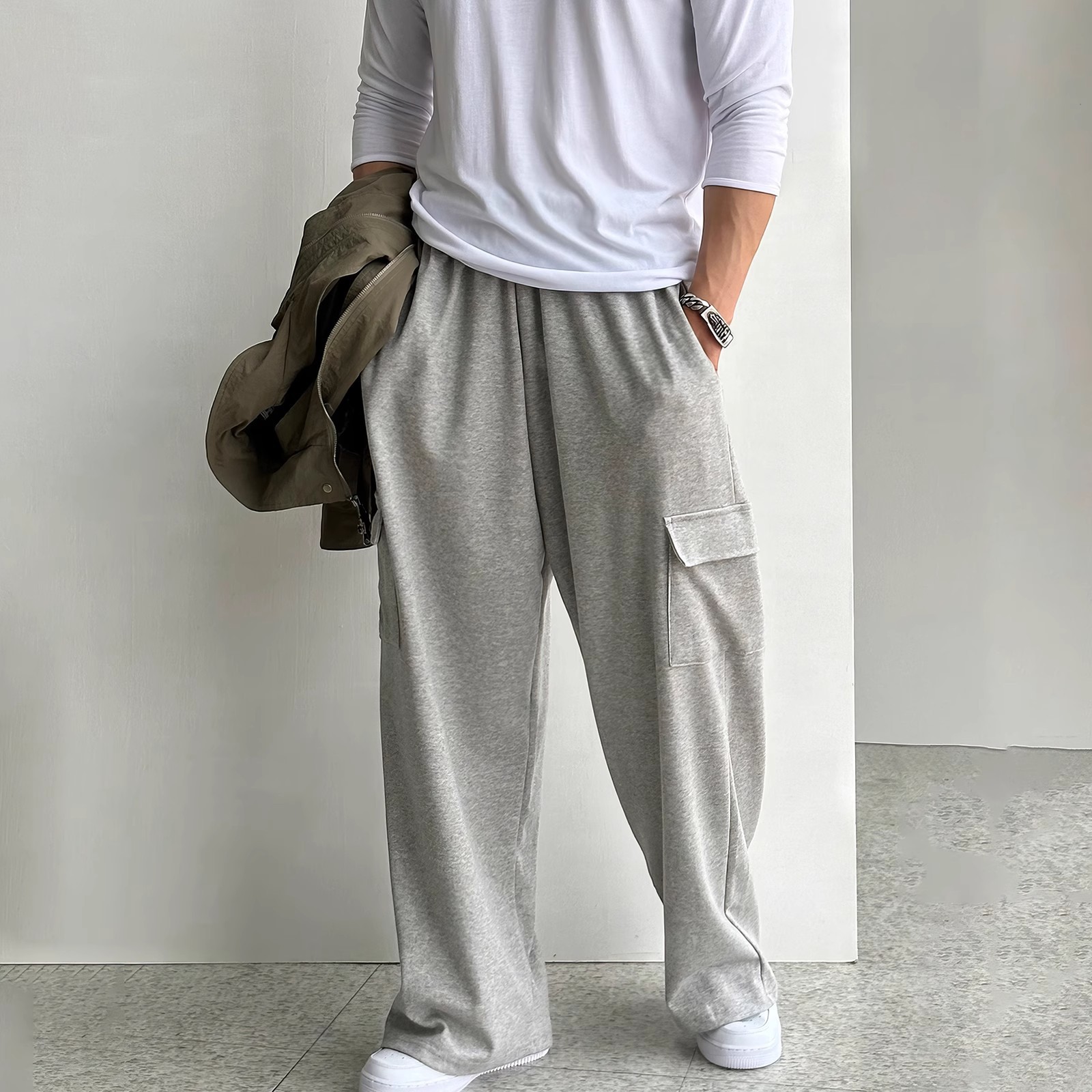 드레이프 그레이 워크웨어 스웨트팬츠 남성용 와이드 레그 롱 팬츠 스트레이트 캐주얼 팬츠 영국 비즈니스 트렌드 대외 무역 국경 간 도매스토어 가기
