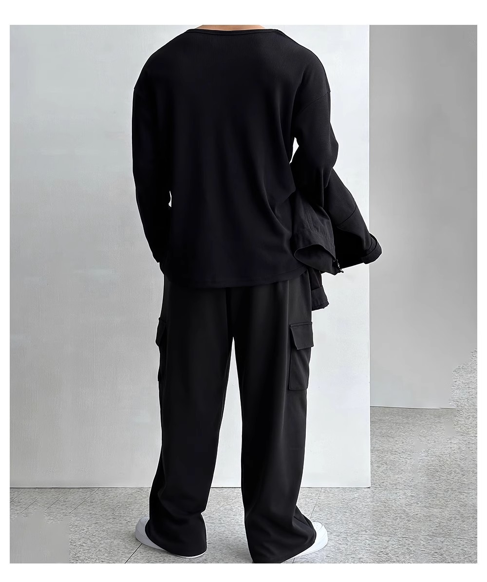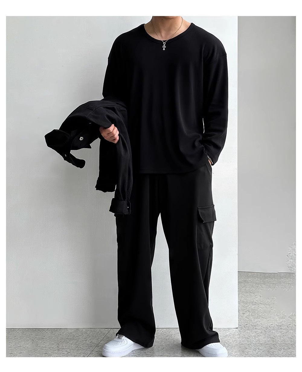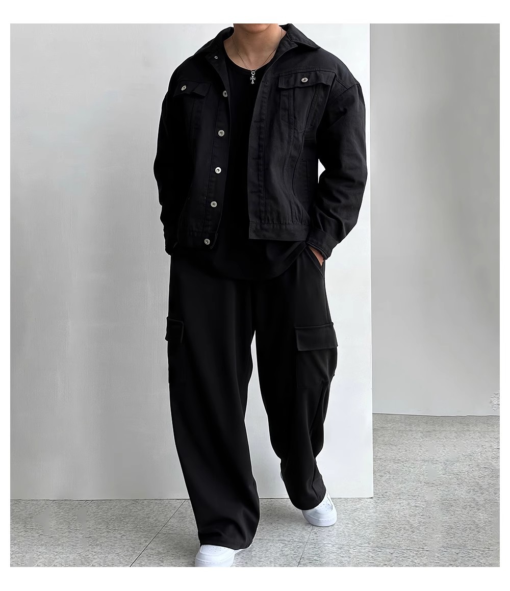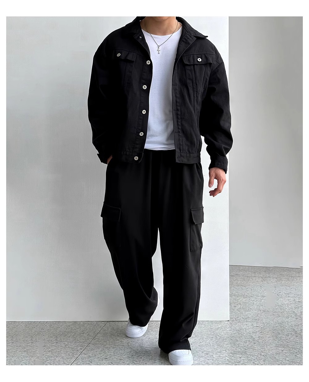 드레이프 그레이 워크웨어 스웨트팬츠 남성용 와이드 레그 롱 팬츠 스트레이트 캐주얼 팬츠 영국 비즈니스 트렌드 대외 무역 국경 간 도매스토어 가기