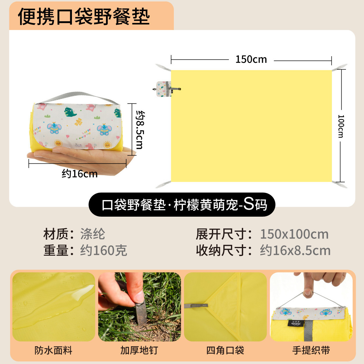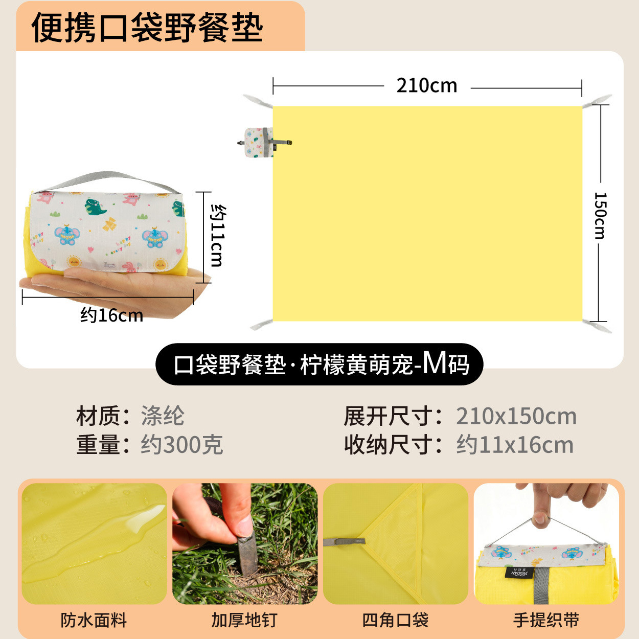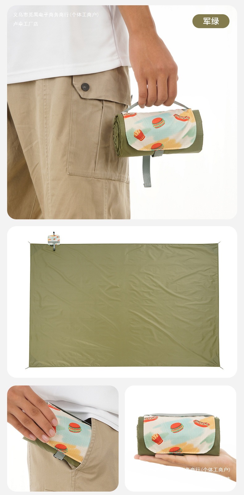 야외 피크닉 매트 휴대용 포켓 미니 해변 방수 및 방습 캠핑 모래 방지 천 귀여운 만화 피크닉 천스토어 가기