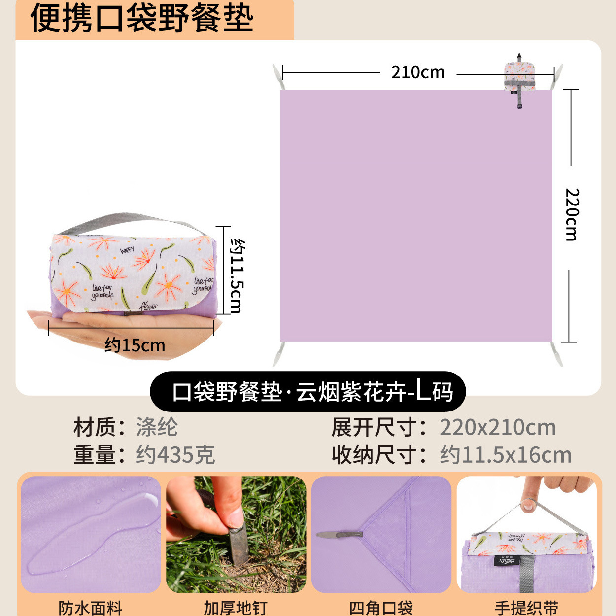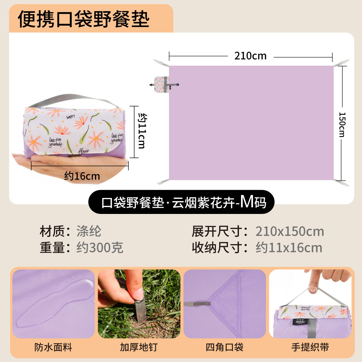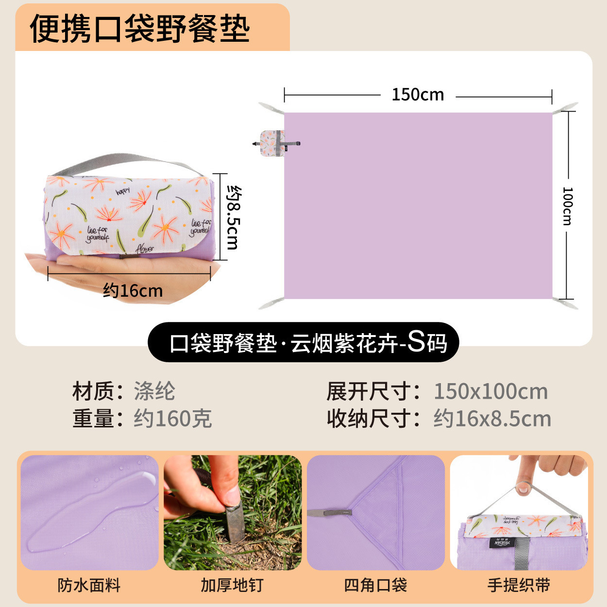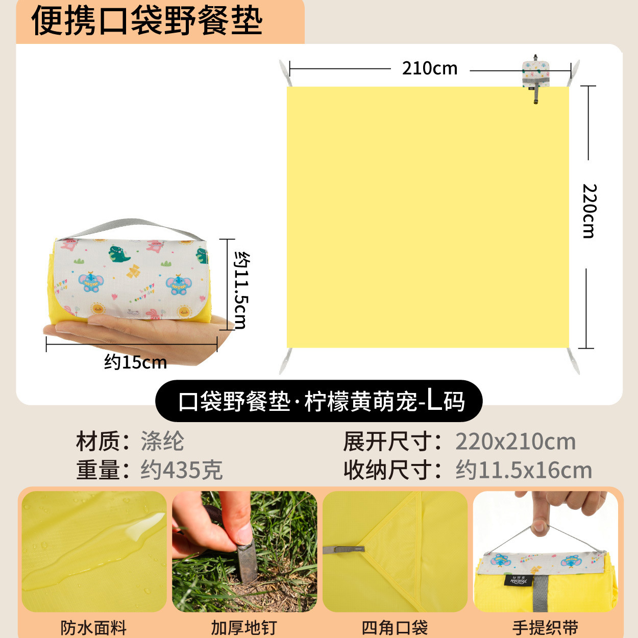야외 피크닉 매트 휴대용 포켓 미니 해변 방수 및 방습 캠핑 모래 방지 천 귀여운 만화 피크닉 천스토어 가기