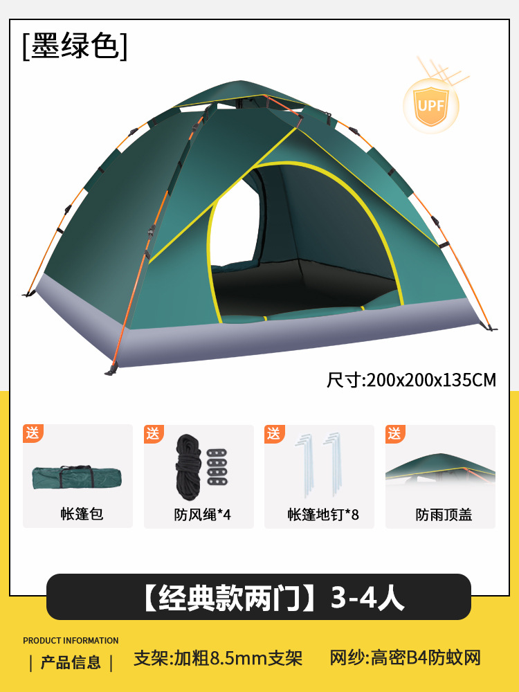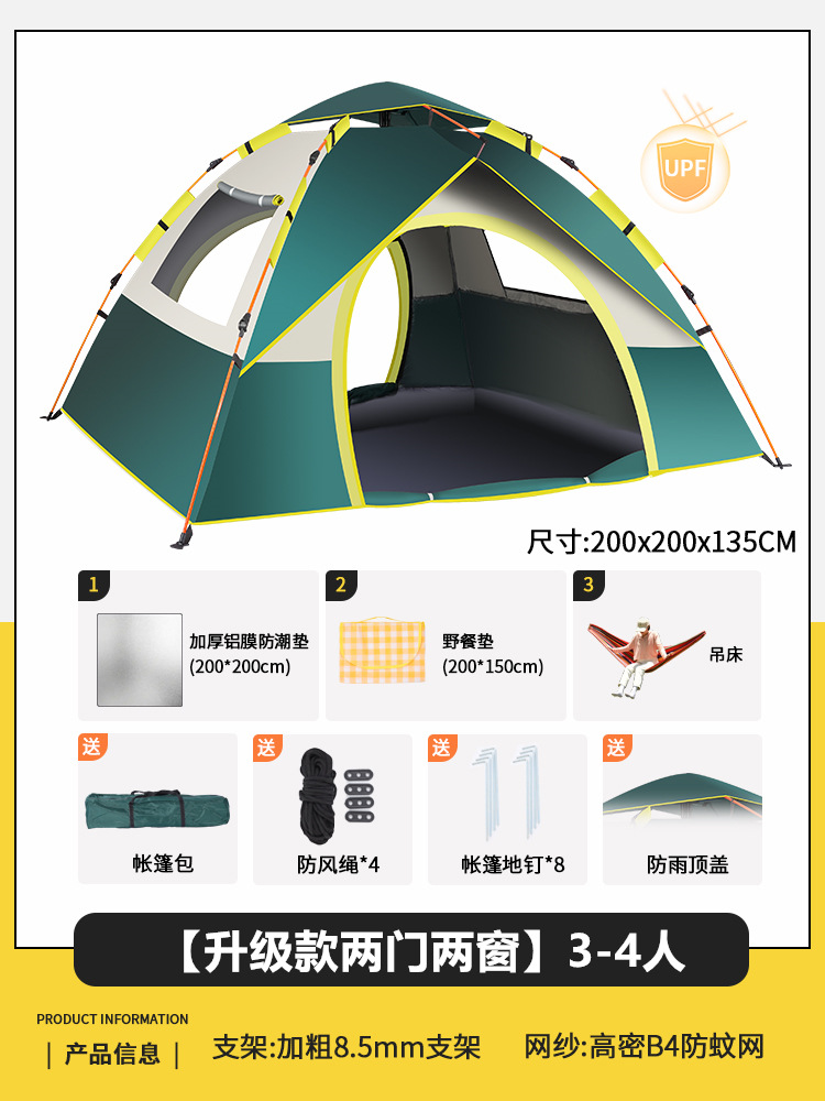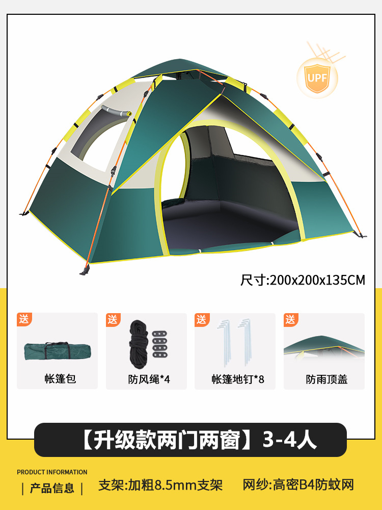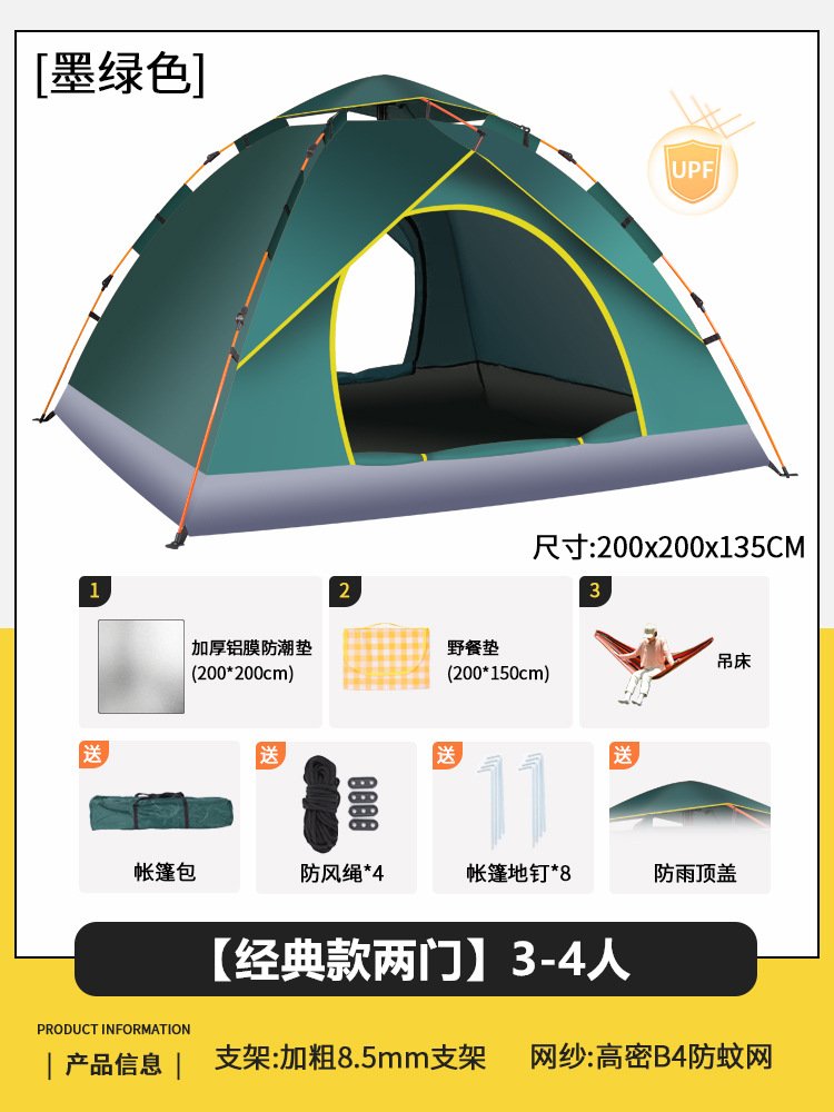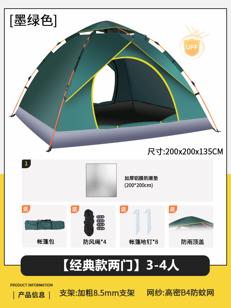 • 자동 3~4인용 녹색 및 흰색 [문 2개, 창문 2개] + 방습 패드(색상 비고)