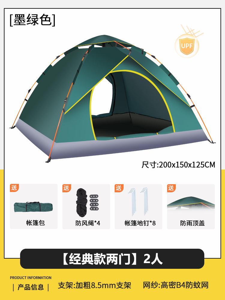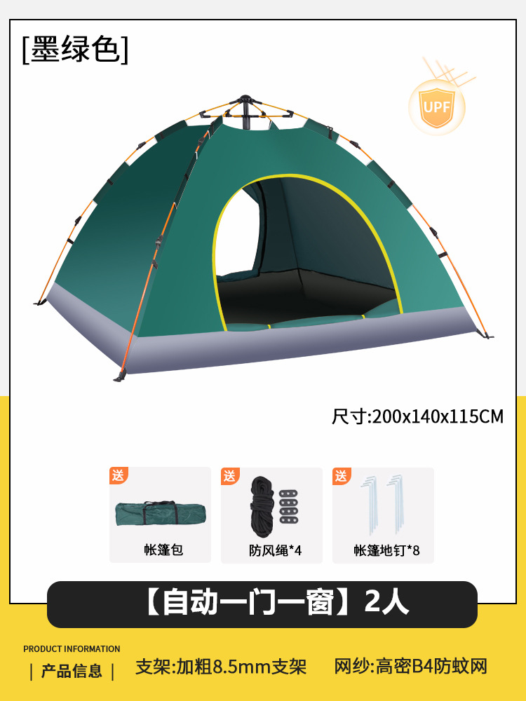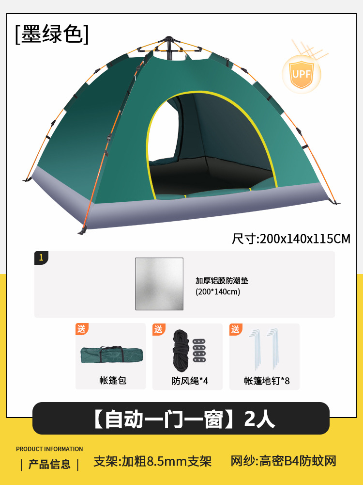 • 자동 2인 다크그린 [문 1개, 창문 1개] + 방습패드(탄성압력텐트)