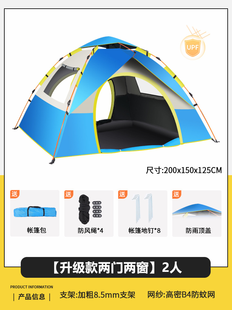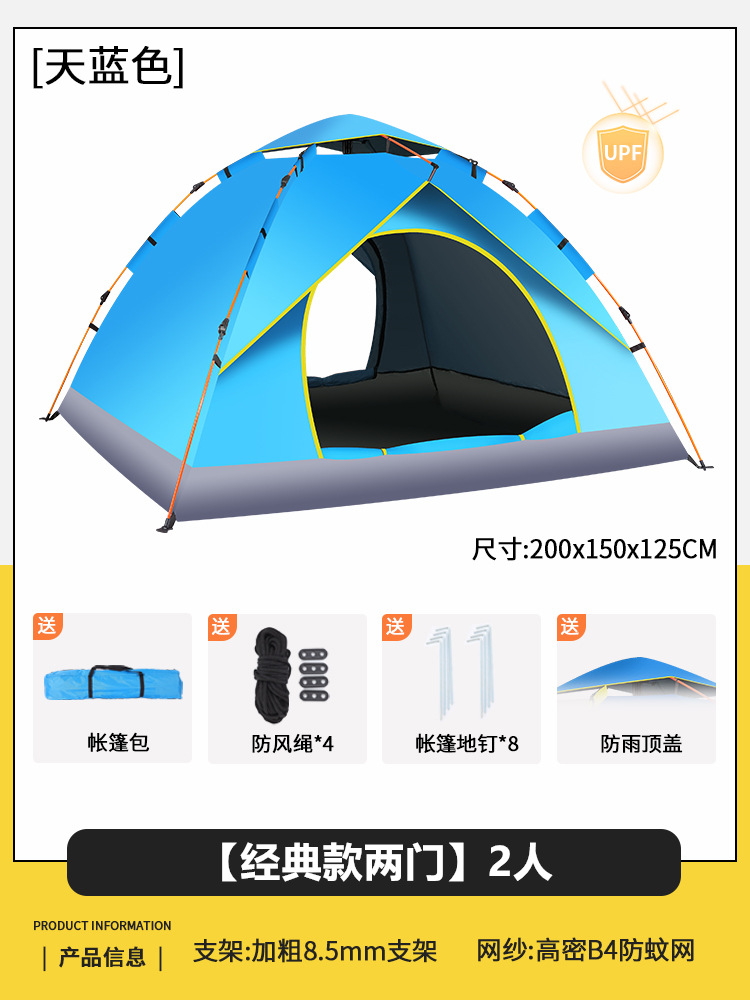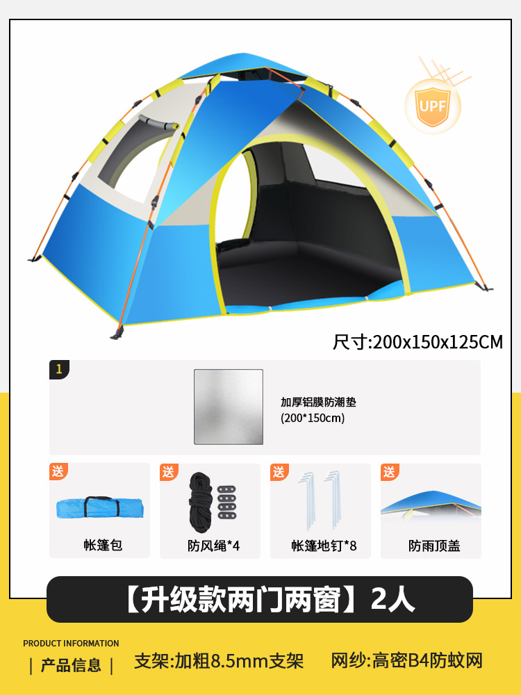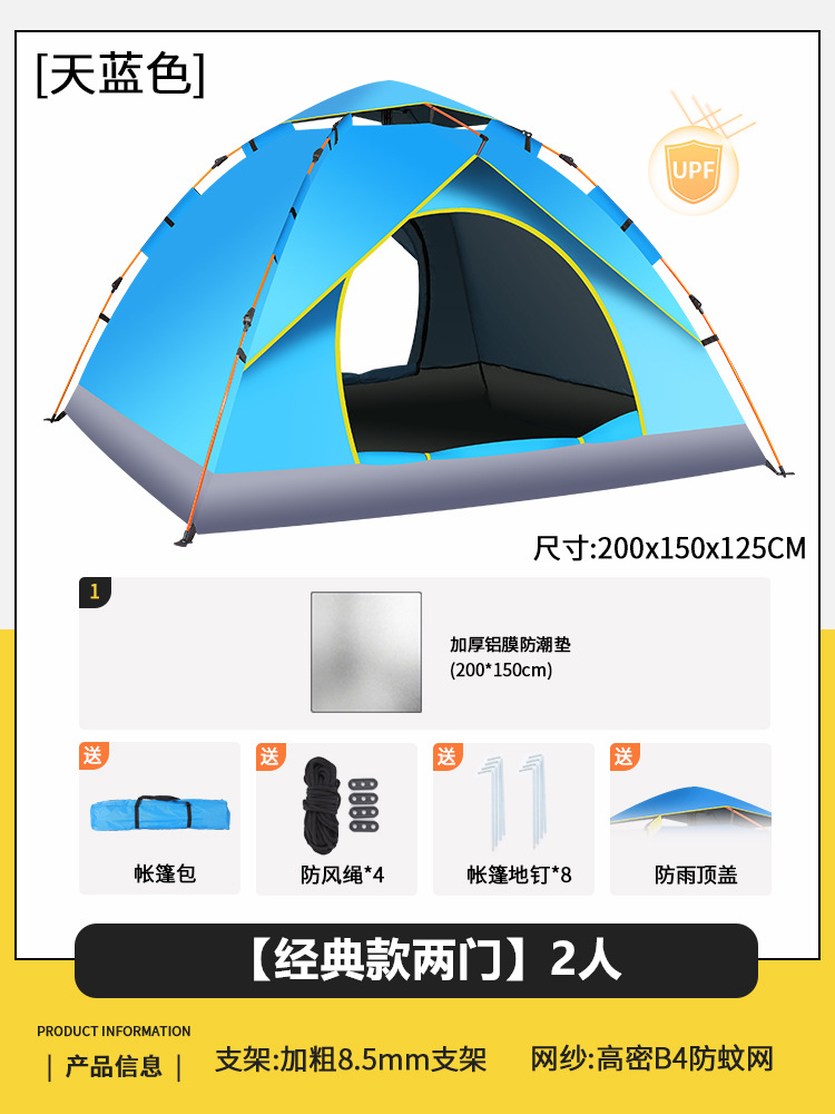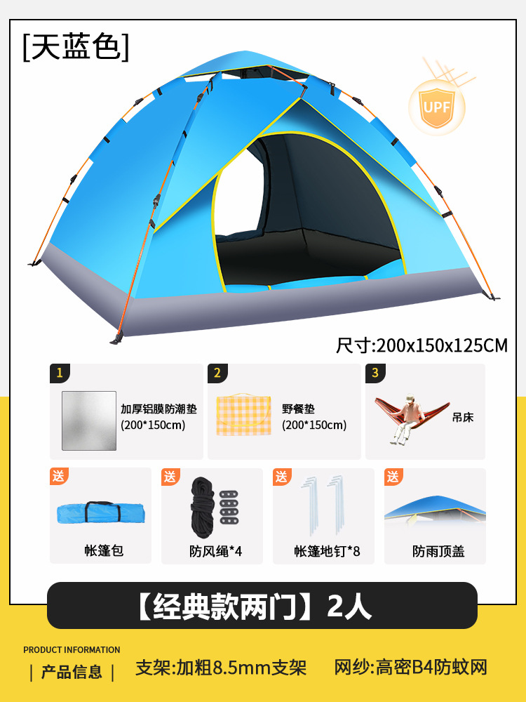 • 자동 2인용 파란색과 흰색 [문 2개, 창문 2개] + 방습매트 + 해먹 + 피크닉매트 (색상비고)
